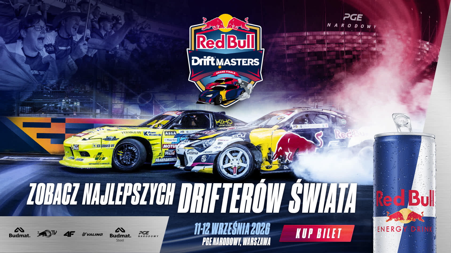 Kalendarz Drift Masters 2026 już tradycyjnie zamyka runda w Polsce. PGE Narodowy po raz czwarty stanie się areną zmagań w ramach największych zawodów driftingowych na świecie. I po raz drugi partnerem wydarzenia będzie Red Bull. Czy znowu w finałowej rundzie będziemy widzieli Polaka w walce o tytuł, który – zdaniem wielu – uchodzi za mistrzostwo świata w drifcie?