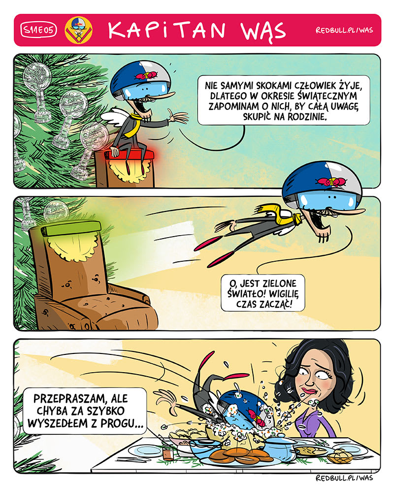 Czas zasiąść do Wigilii. To chwila, gdy nawet Kapitan Wąs na moment przestaje myśleć o skokach narciarskich... Ups, a może jednak nie? Tak czy inaczej - WESOŁYCH ŚWIĄT! 🎄