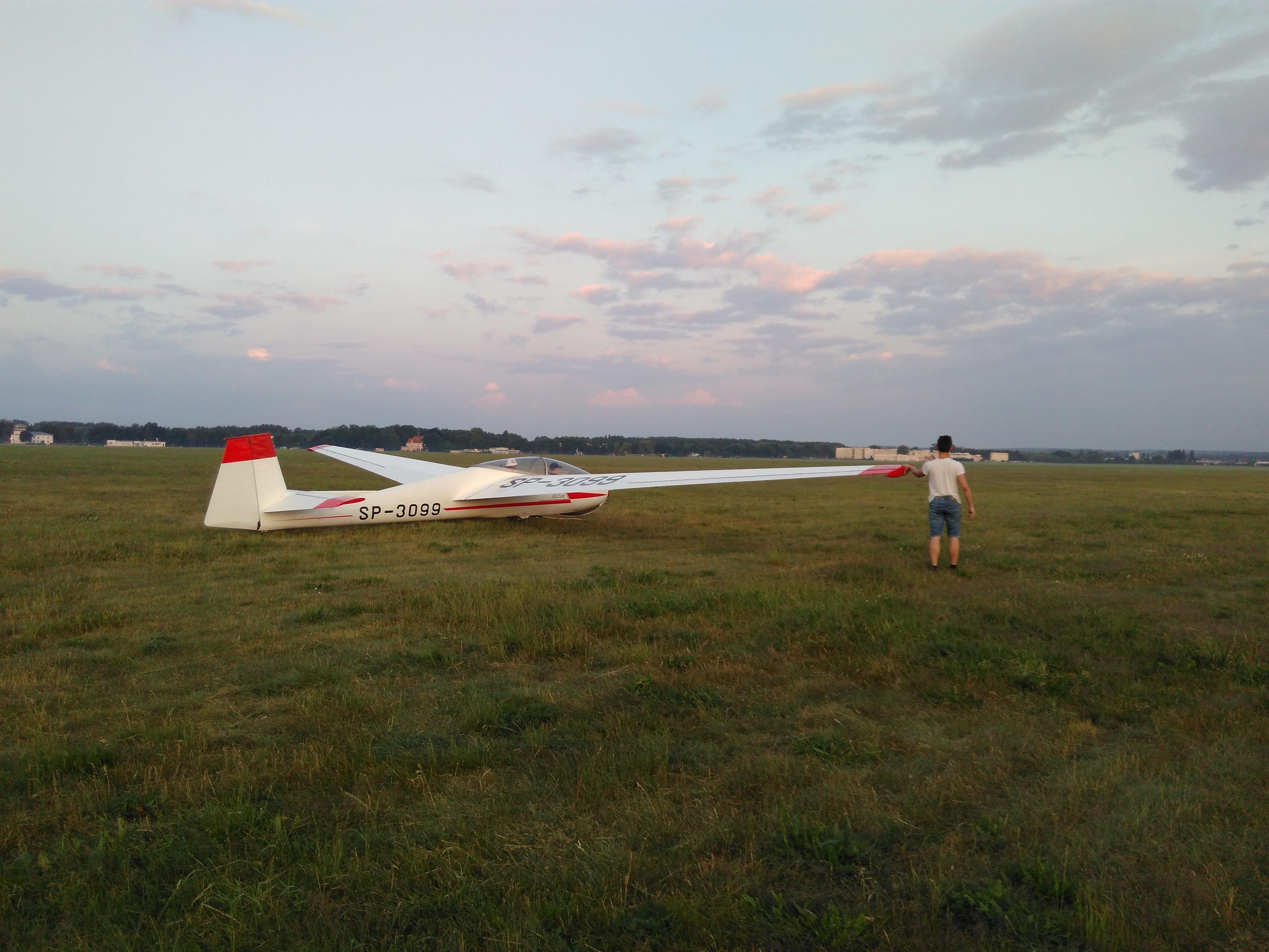 Zanim wyjechałem z Pruszcza Gdańskiego udało mi się jeszcze „wylaszować” Puchacza – czyli przeszkolić się na nowy typ szybowca – oraz zaliczyć jeden lot na termikę i kilka na celność lądowania. To dalszy etap szkolenia. Nie wystarczy ukończyć „podstawówkę”, żeby zostać pilotem. Prawdziwe szybownictwo zaczyna się wtedy, kiedy oddalamy się od lotniska. Celność lądowania ma doskonalić umiejętności i nauczyć nas robić to precyzyjnie w różnych miejscach – jeśli nie przyda nam się na zatłoczonym lotnisku, gdzie będzie lądowało kilka szybowców po sobie, to na pewno wykorzystamy tę umiejętność, kiedy pierwszy raz przyjdzie nam wylądować w polu. Tak! Pole to też nieodłączny element szybownictwa. Podczas kolejnych etapów szkolenia uczymy się szukania i wykorzystywania noszeń termicznych, nawigacji, taktyki latania termicznego i taktyki przelotowej, dowiadujemy się jak wypatrzeć z powietrza bezpieczne pole. Szkolenie do licencji kończymy przelotem nawigacyjnym po zaplanowanej wcześniej trasie, z którego dobrze dla dumy młodego pilota jest wrócić na lotnisko powietrzem zamiast z szybowcem na przyczepie…
