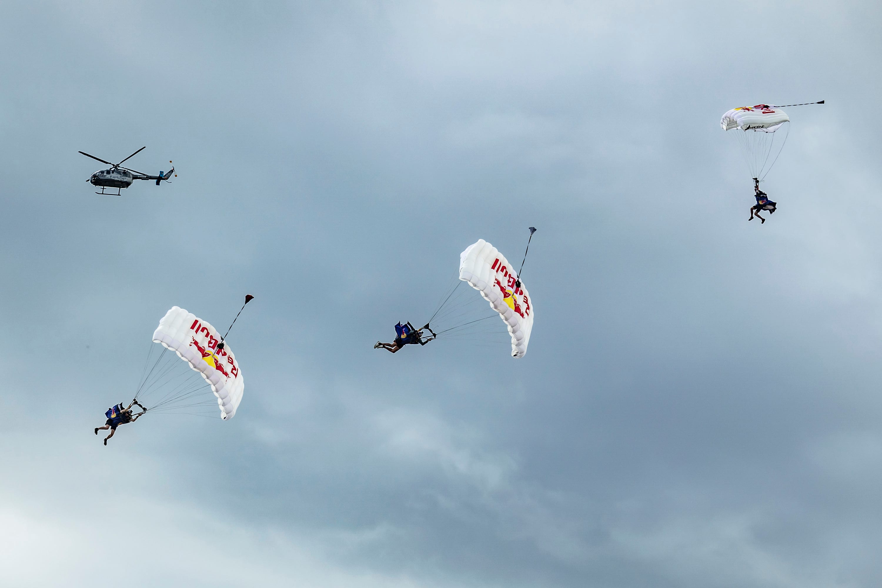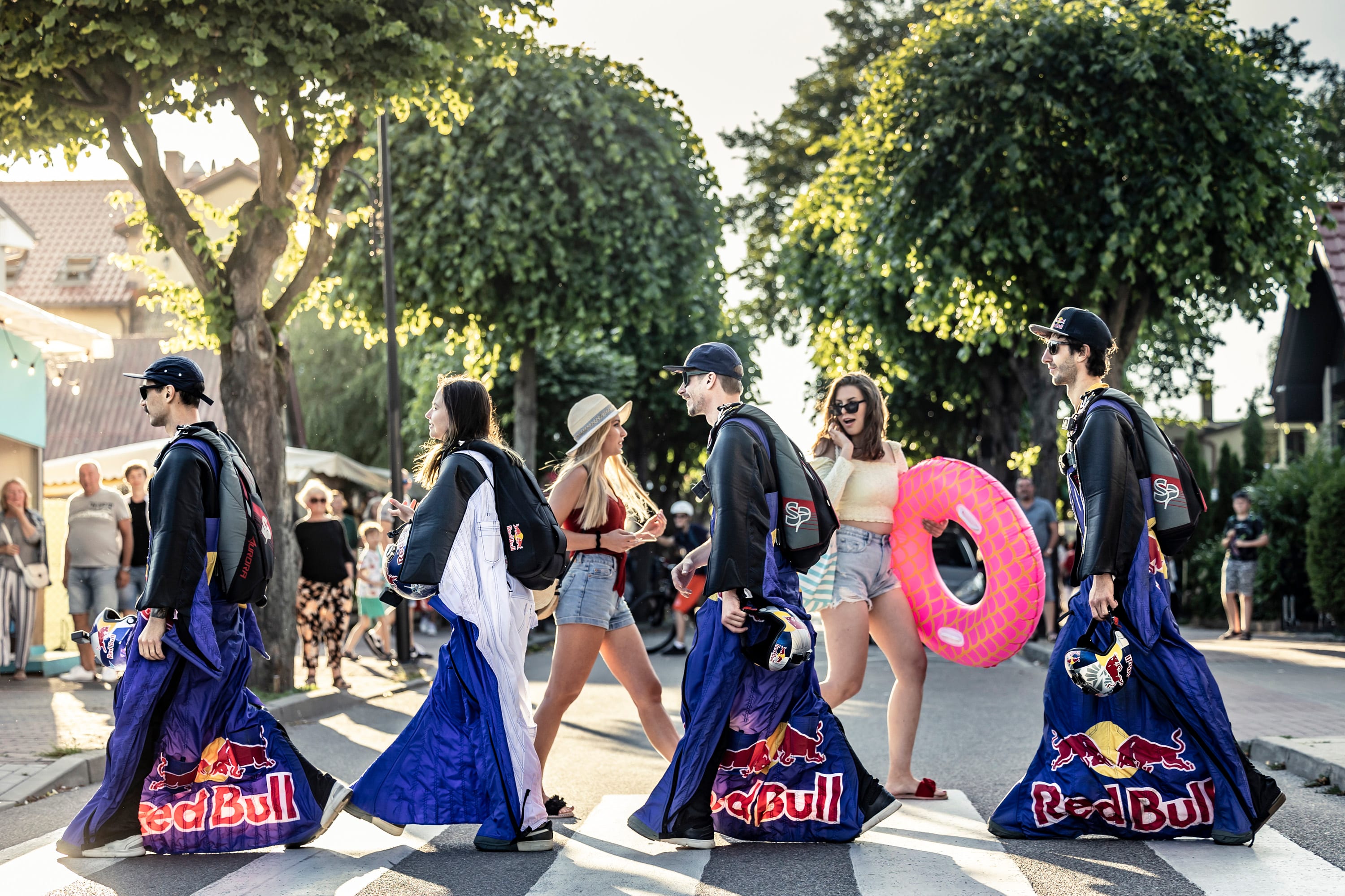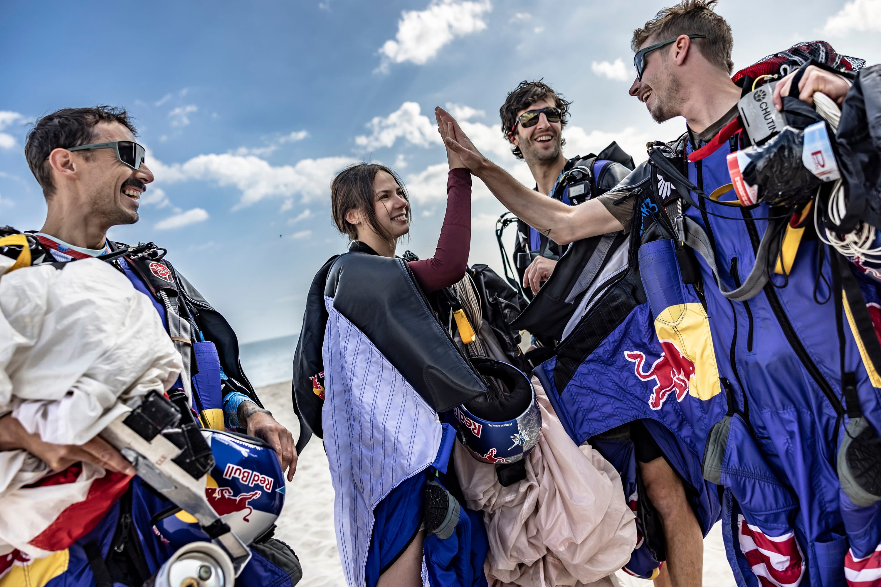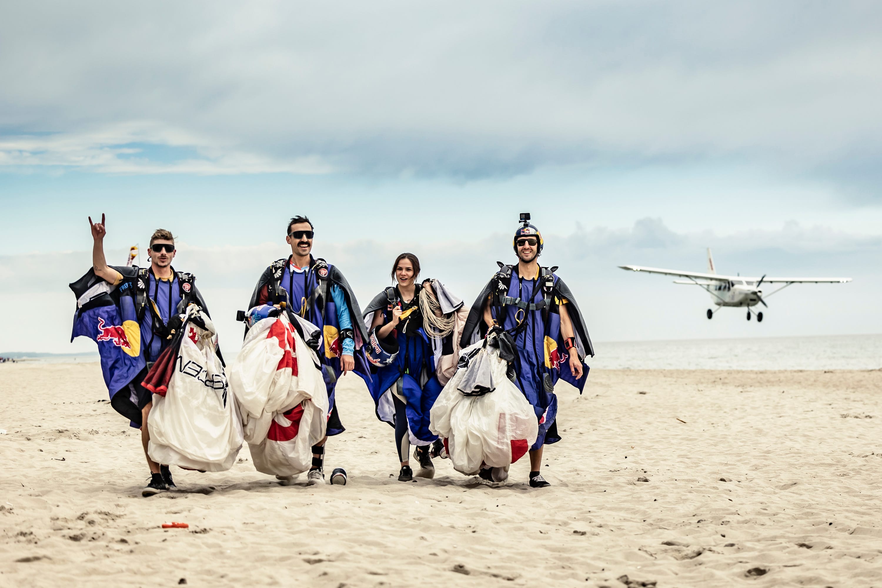 Mai towarzyszyli koledzy z Red Bull Skydive Team. Marco Waltenspiel, Marco Fürst i Max Manow w naszym kraju demonstrowali już swoje umiejętności - w ubiegłym roku, w Warszawie naśladowali spadające Perseidy. Teraz przyszło im razem z polską skydiverką w jak najkrótszym czasie dostać się na imprezę w barze przy nadbałtyckiej plaży. Razem wyskakiwali z samolotu, a ich lot filmowano z dwóch helikopterów.