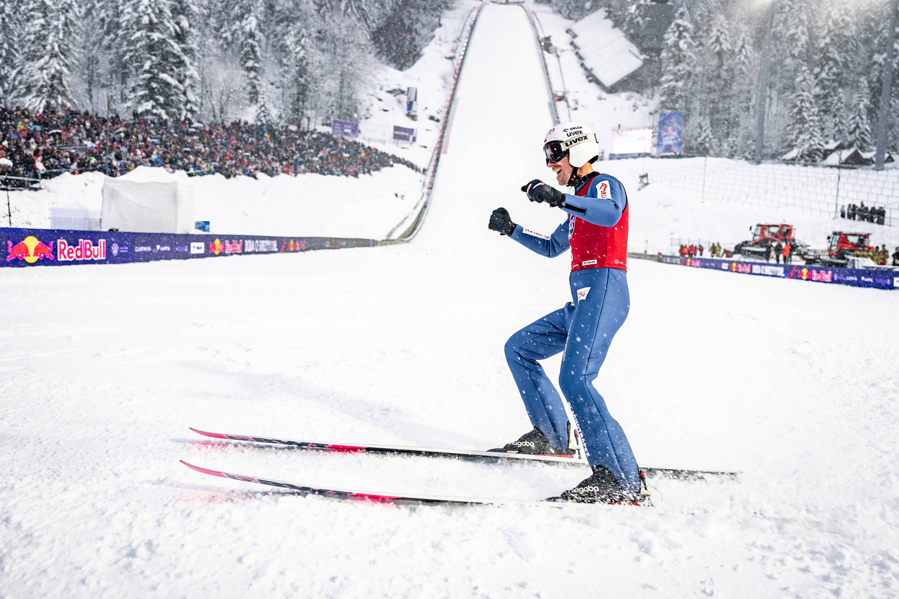 O atmosferze: Świetna sprawa! Co prawda dziś nie lądowałem tak blisko celu jak przed rokiem. Właśnie dlatego poradziłem Martinowi, żeby ktoś inny skakał w ostatniej grupie. Obraliśmy znakomitą strategię, mieliśmy wspaniałą atmosferę wewnątrz drużyny – no i nasze drugie Red Bull Skoki w Punkt, druga wygrana! Zobaczymy, co będzie za rok! Ale chętnie znów bym wygrał, już po raz trzeci z rzędu!