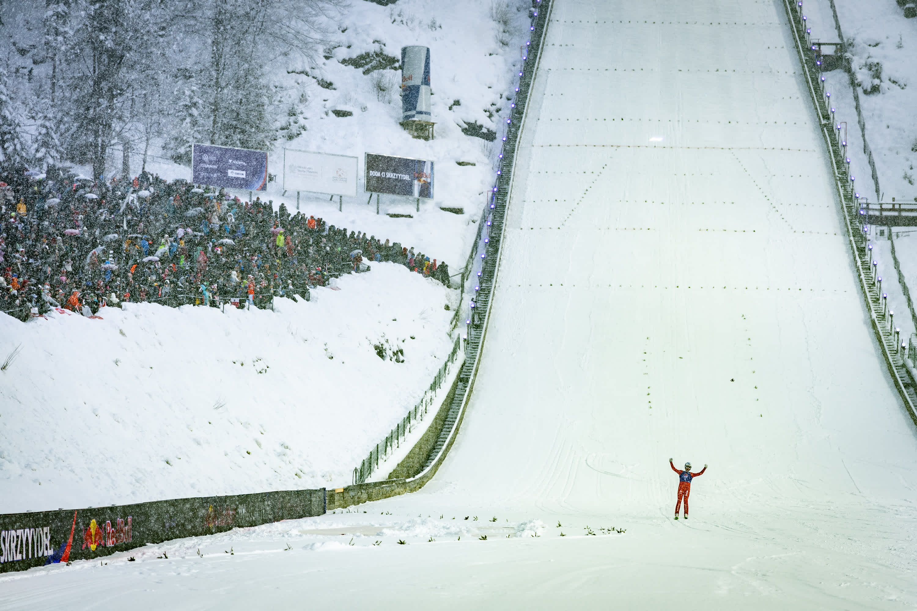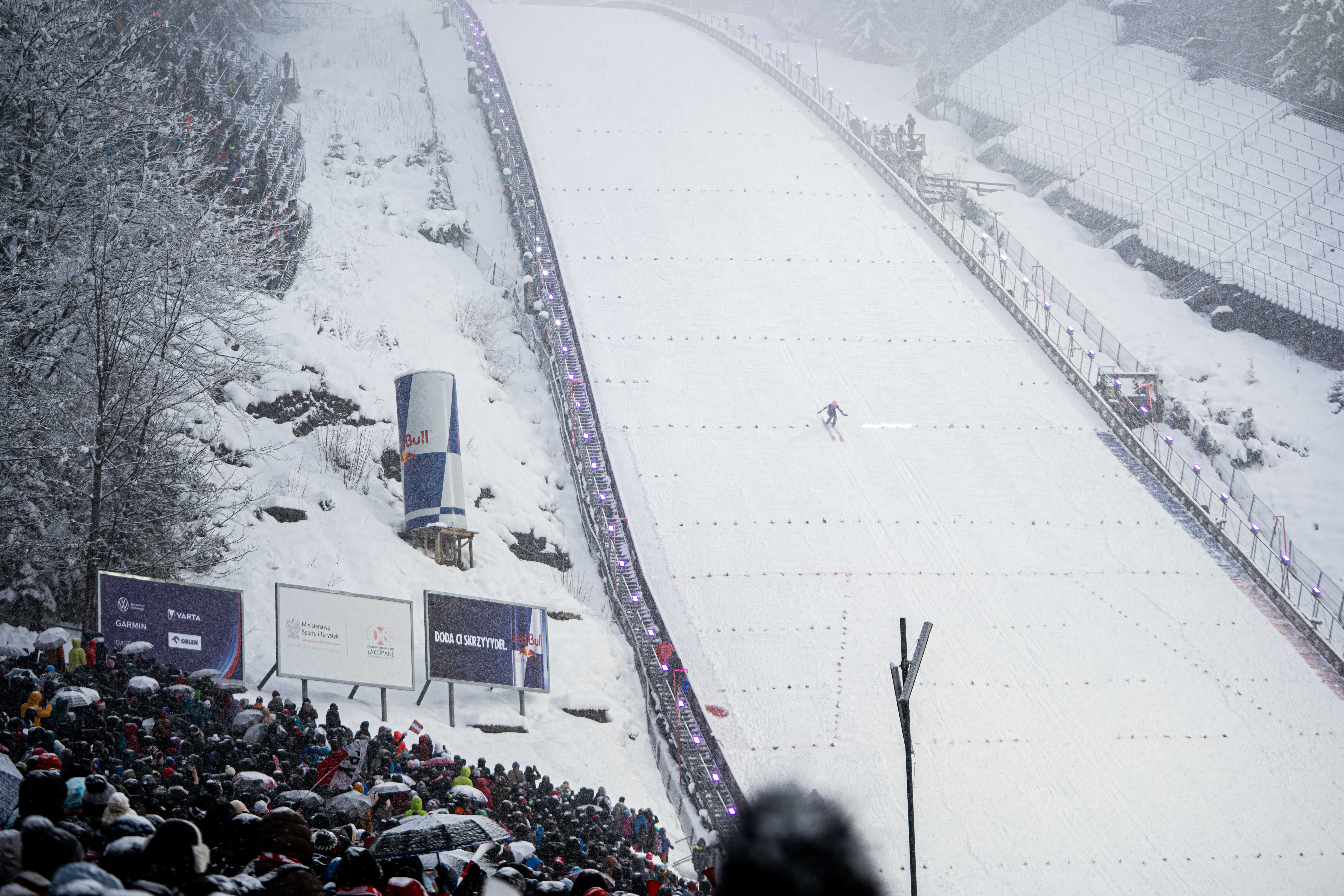 Rok temu Domen Prevc fenomenalnym skokiem na 150,5 m pobił nieoficjalny rekord Wielkiej Krokwi. Tym razem kibice też ostrzyli sobie apetyt na dalekie loty Słoweńca, bo przyjechał do Zakopanego jako najlepszy zawodnik sezonu, mistrz olimpijski, zdobywca Kryształowej Kuli. Ale rekordy uniemożliwiła pogoda – choć kapitan Goldberger pozwolił Domenowi poszaleć i wyznaczył go na początku serii („Potem będziemy najwyżej korygować w dół”), to mocne opady śniegu spowalniały skoczków i sprawiały, że nie chcieli ryzykować bardzo dalekich lotów „Domenator” Prevc wycisnął więc „jedynie” 141,5 metra, co i tak było najdalszym środowym lotem w Zakopanem.