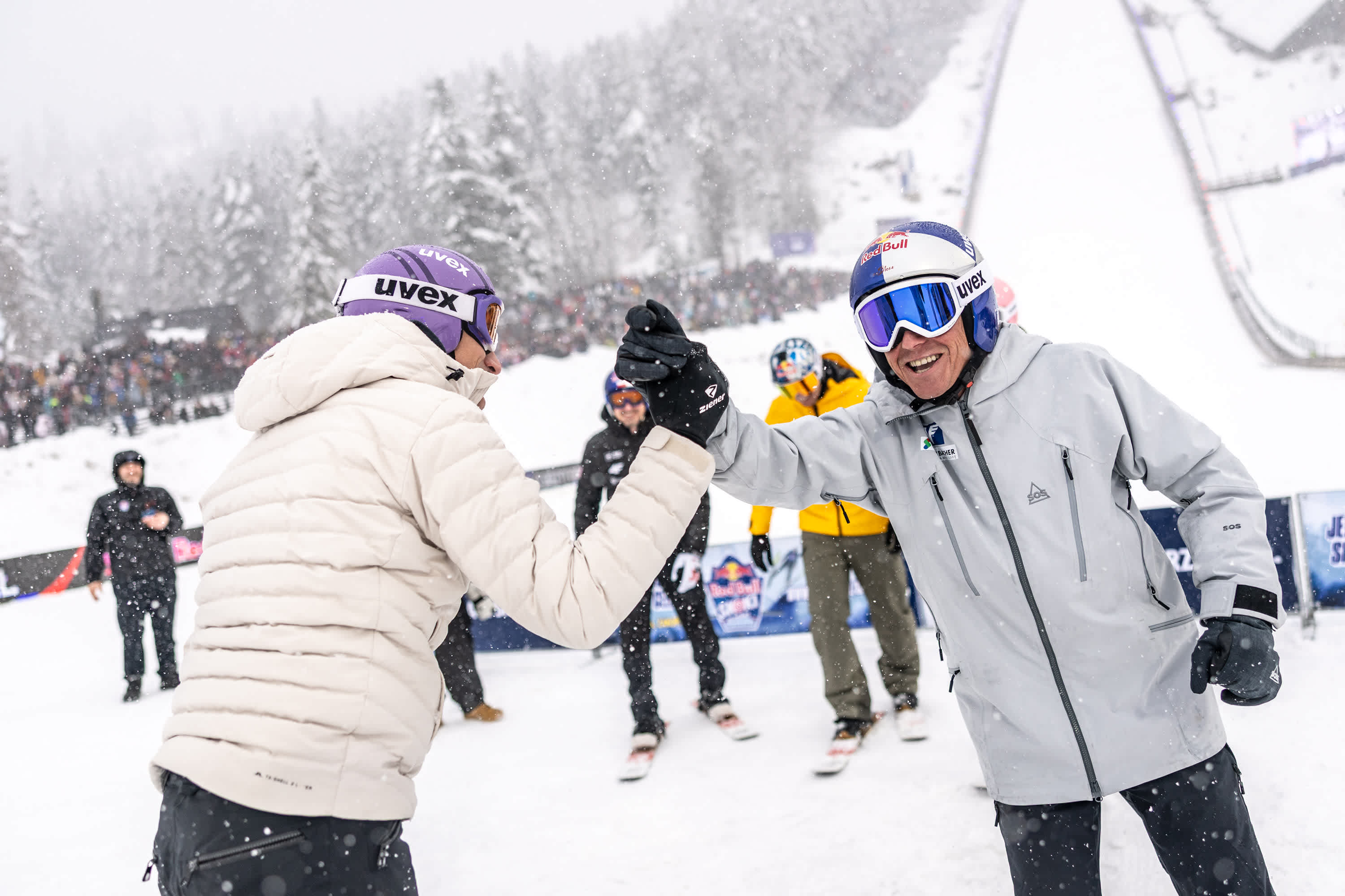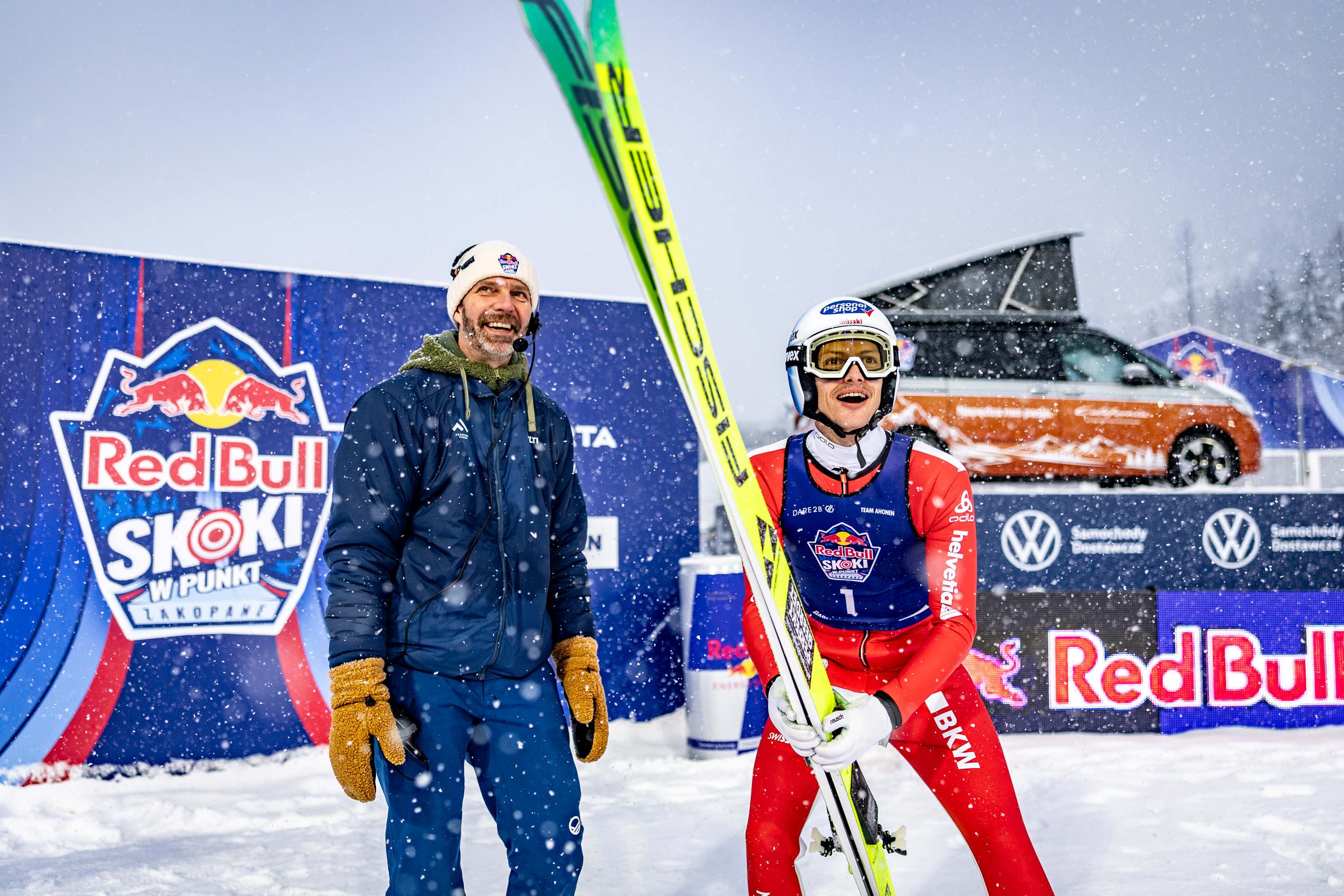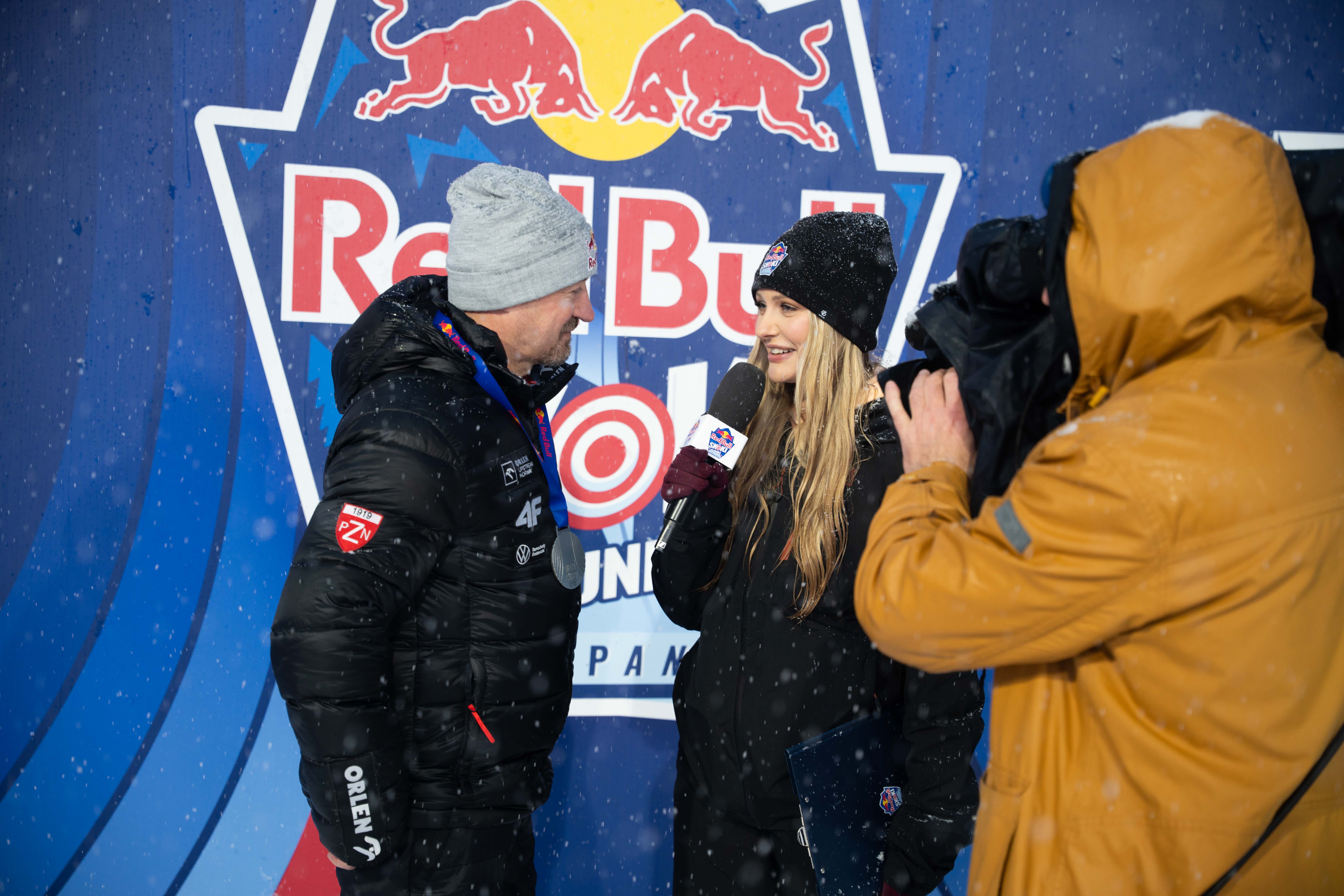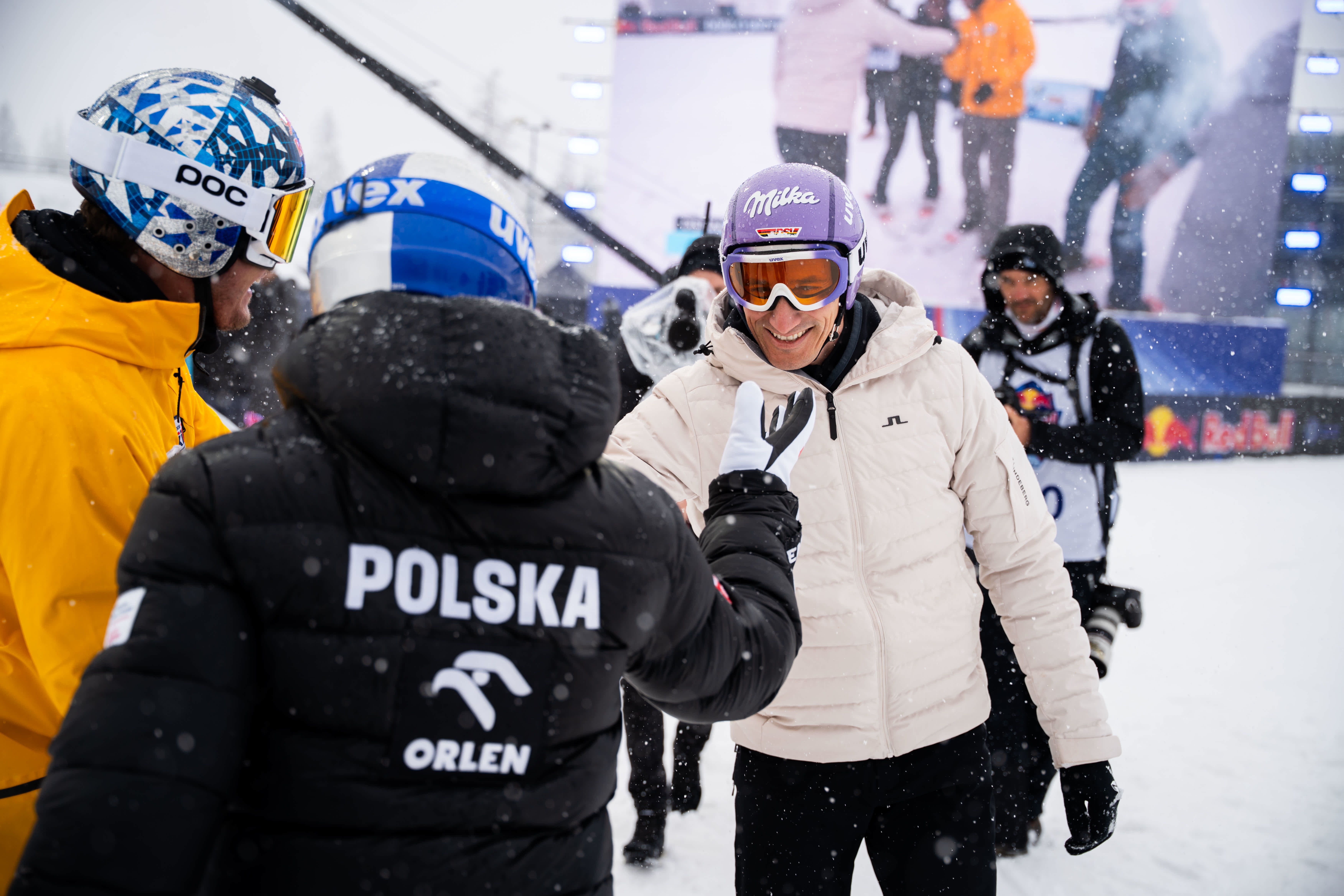 O rywalizacji i formacie: Rywalizacja w Red Bull Skoki w Punkt jest niezwykle zacięta. Rok temu trochę wiało, teraz przeszkadzał śnieg, ale poradziliśmy sobie. Ten format jest całkiem inny niż zawody, które znamy, ale daje mnóstwo frajdy. Zwłaszcza na zakończenie sezonu. Możemy się spotkać w międzynarodowych drużynach i wspólnie cieszyć skokami.