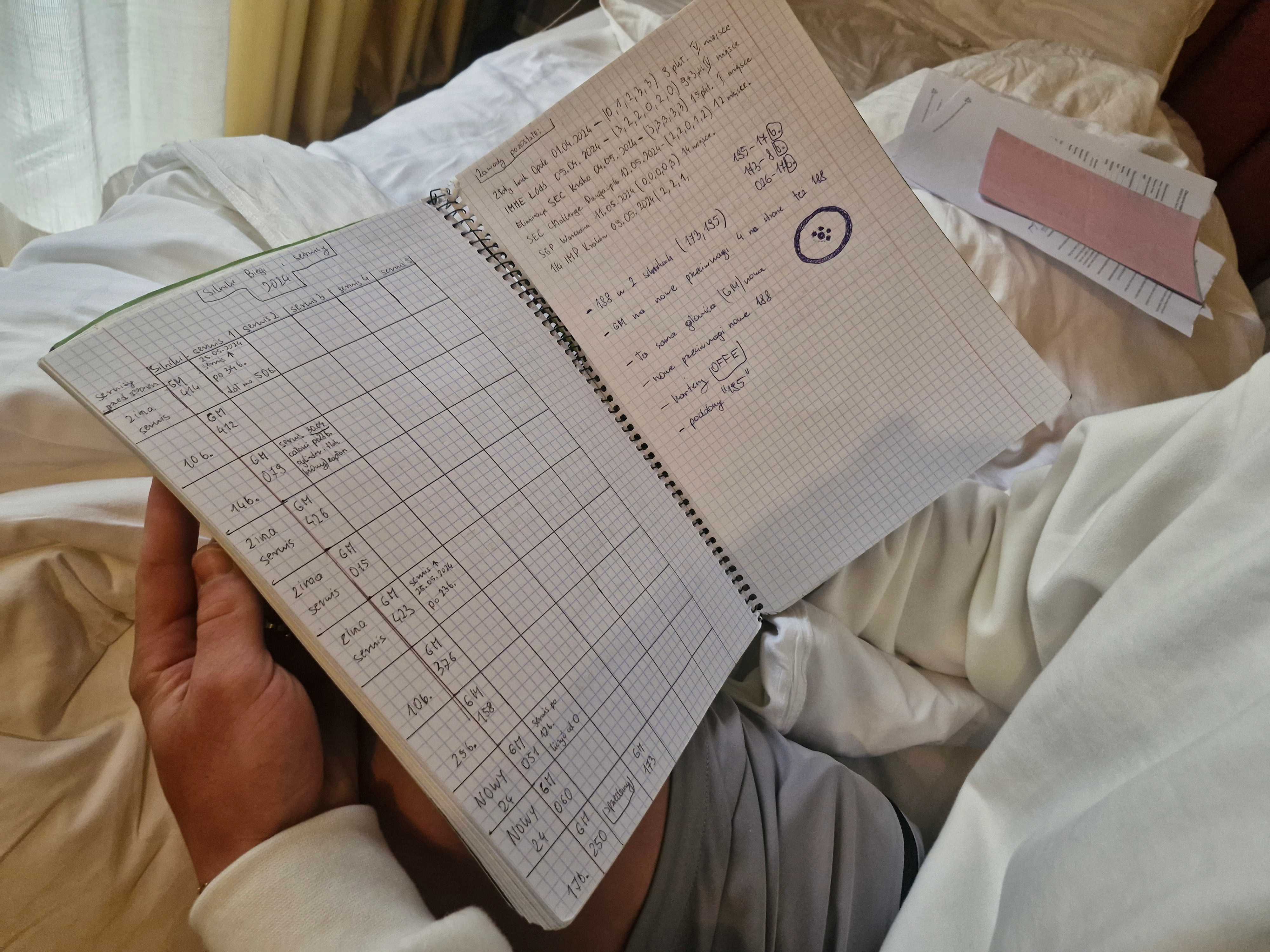 Głównie odpoczywam. Staram się, by każdy trening był tak ostry, żebym po powrocie do hotelu marzył tylko o położeniu się do łóżka. Łapię godziny snu tak często, jak mogę. Chociaż jestem jeszcze stosunkowo młodym zawodnikiem, wiem dobrze, jak ważna jest właściwa regeneracja. Łatwo jest otworzyć po treningu drzwi, siąść na łóżku i wziąć telefon do ręki. Można tak zastygnąć i wsiąknąć na długi czas, ale o wiele lepiej szybko się wykąpać i złapać drzemkę. Albo zanotować coś w zeszycie (śmiech). Przy takiej intensywności życia, podróżowania i trenowania, higiena snu i relaksu jest bardzo ważna.