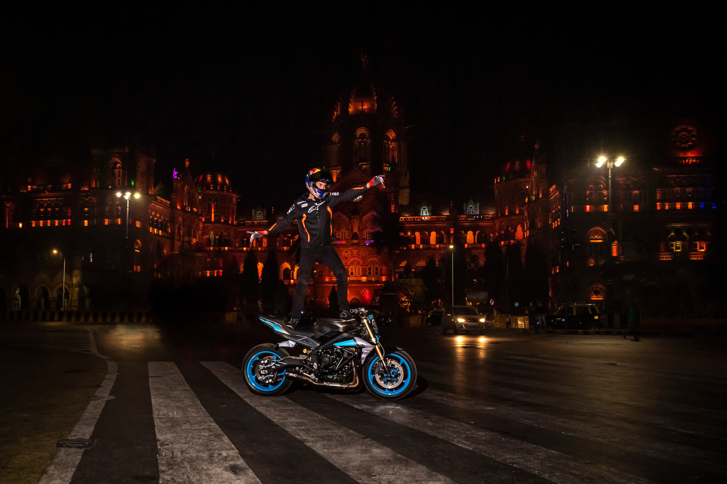 "Szczerze mówiąc, większość motocykli o pojemności 150 cc, które widziałem w Indiach jest w stanie palić gumę bez problemu. Wystarczy tylko przenieść ciężar ciała na przód maszyny", mówi Aaron.