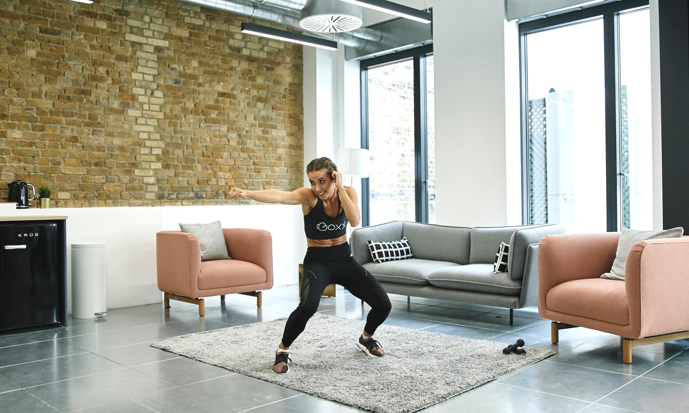 - Teraz pora na coś bardziej energetycznego. Zacznij od podskoków i lekkiego truchtu przez minutę.