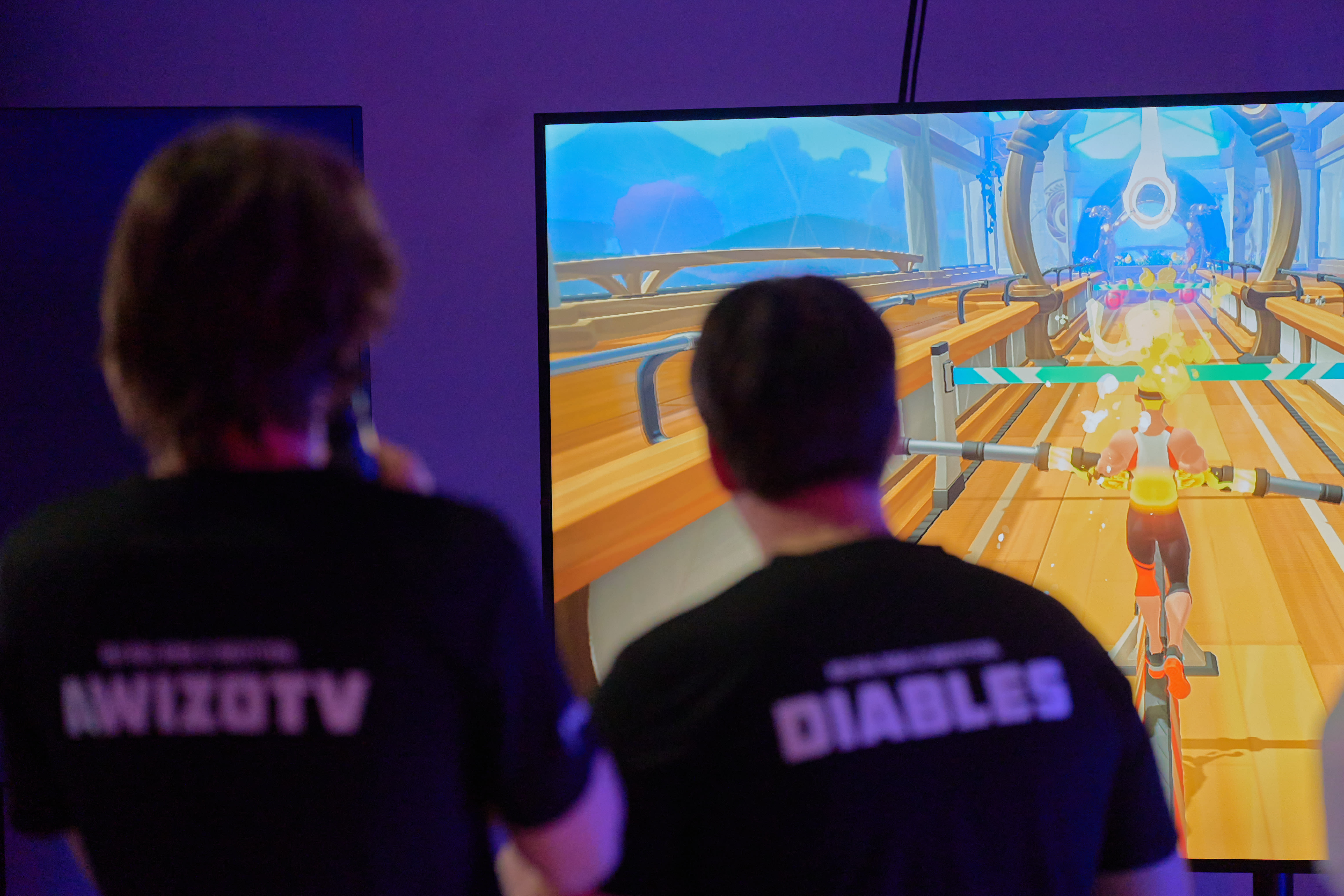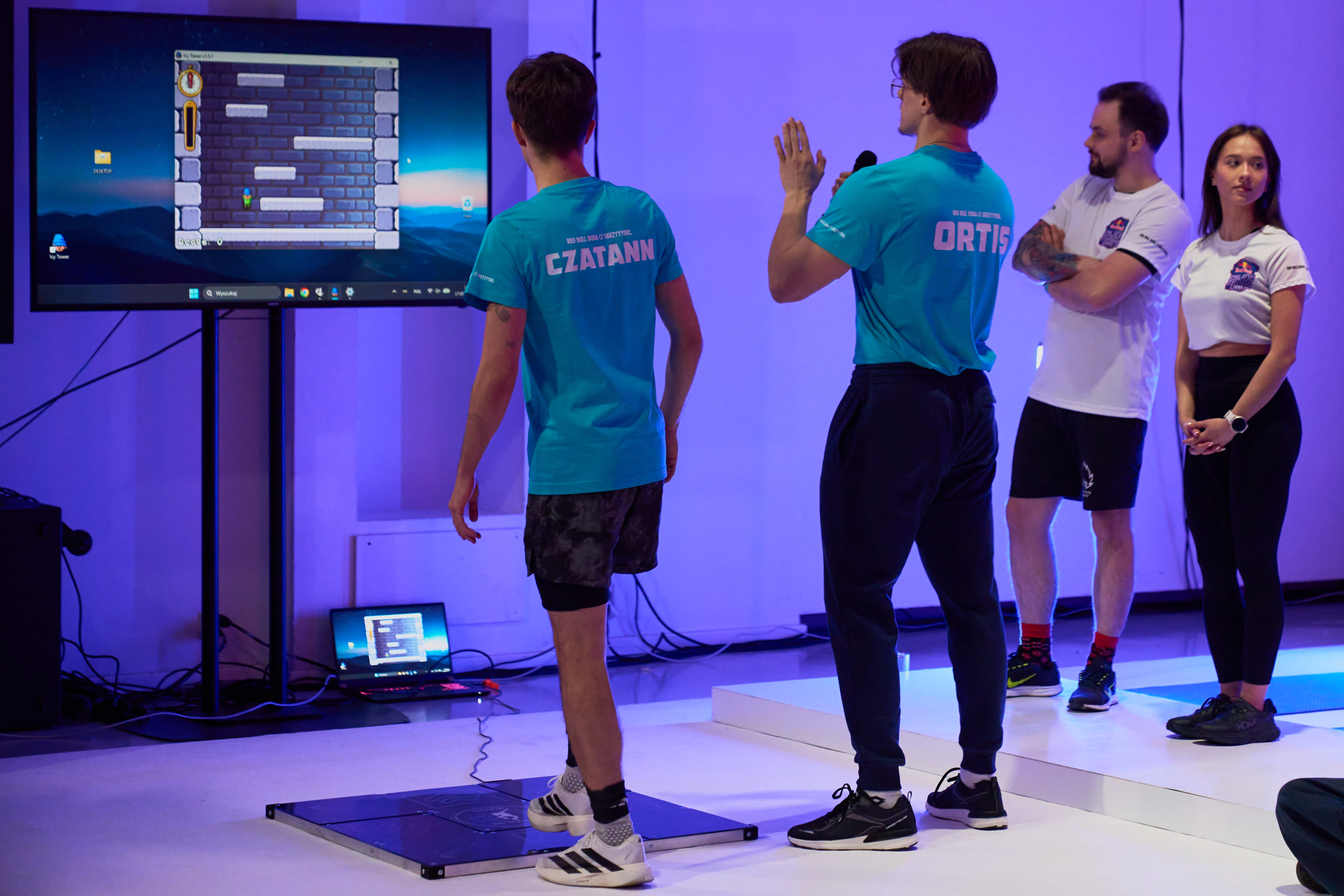 Gdy już ostatecznie każdy był gotów, można było przystąpić do pierwszej konkurencji. Gra była banalnie prosta. Wystarczyło w odpowiednim momencie, przy pomocy pada, przeskoczyć nad przeszkodą. Haczyk? Otóż tylko jedna osoba z pary widziała ekran - i to nie ta z padem - gdyż druga była zajęta chodzeniem na stepperze, który ustawiony był tyłem do gry.
