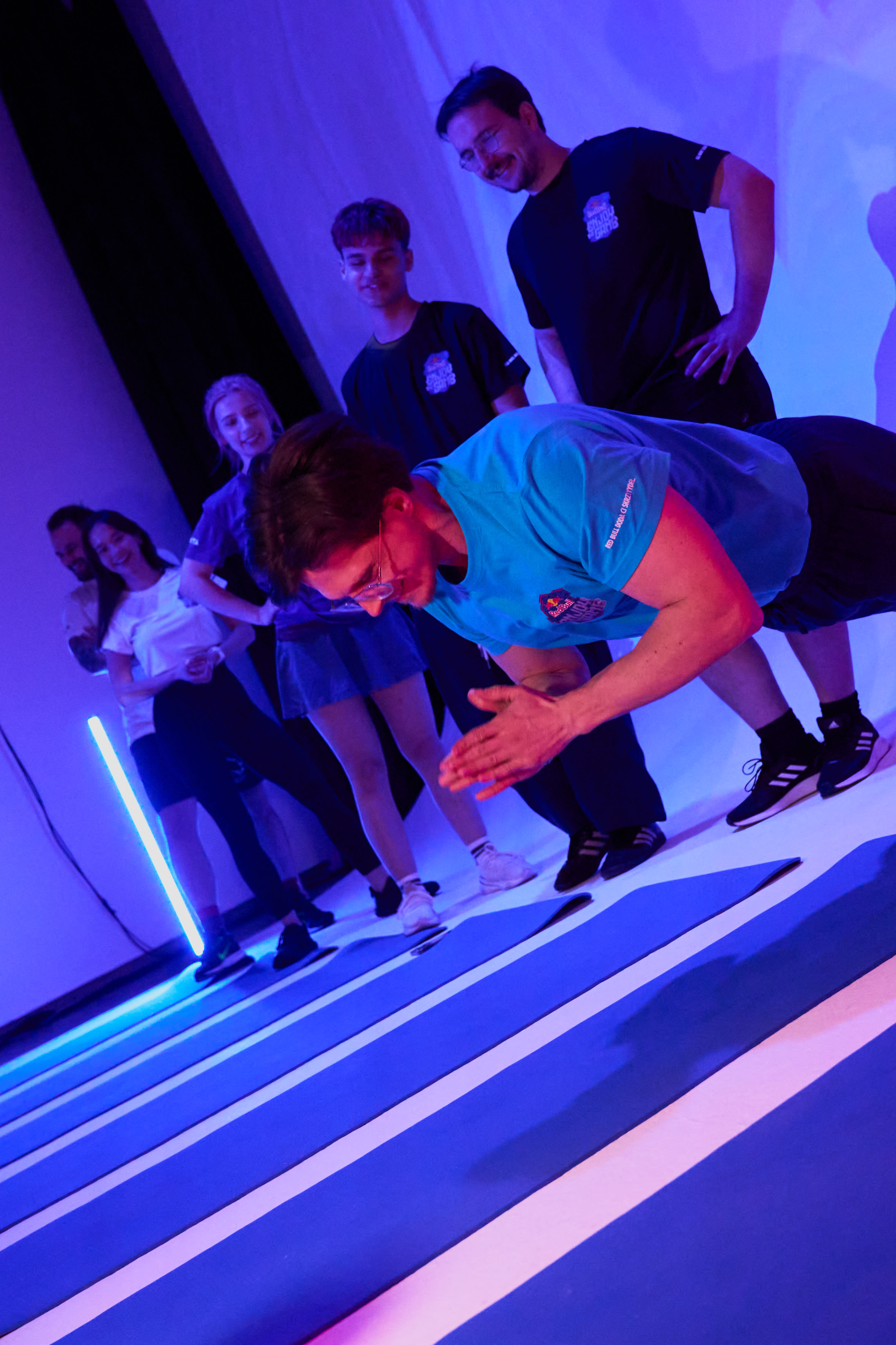 Na czym polegała cała zabawa? Otóż drużyny mierzyły się w trzech konkurencjach. Zanim jednak rywalizacja zaczęła się na dobre, uczestnicy odbyli rozgrzewkę, pod czujnym okiem Zuzdmi. Co ambitniejsi nie bali się także nieco trudniejszych ćwiczeń jak choćby pompki z klaśnięciem (Ortis) czy pompki z Diablesem na plecach (Seto).