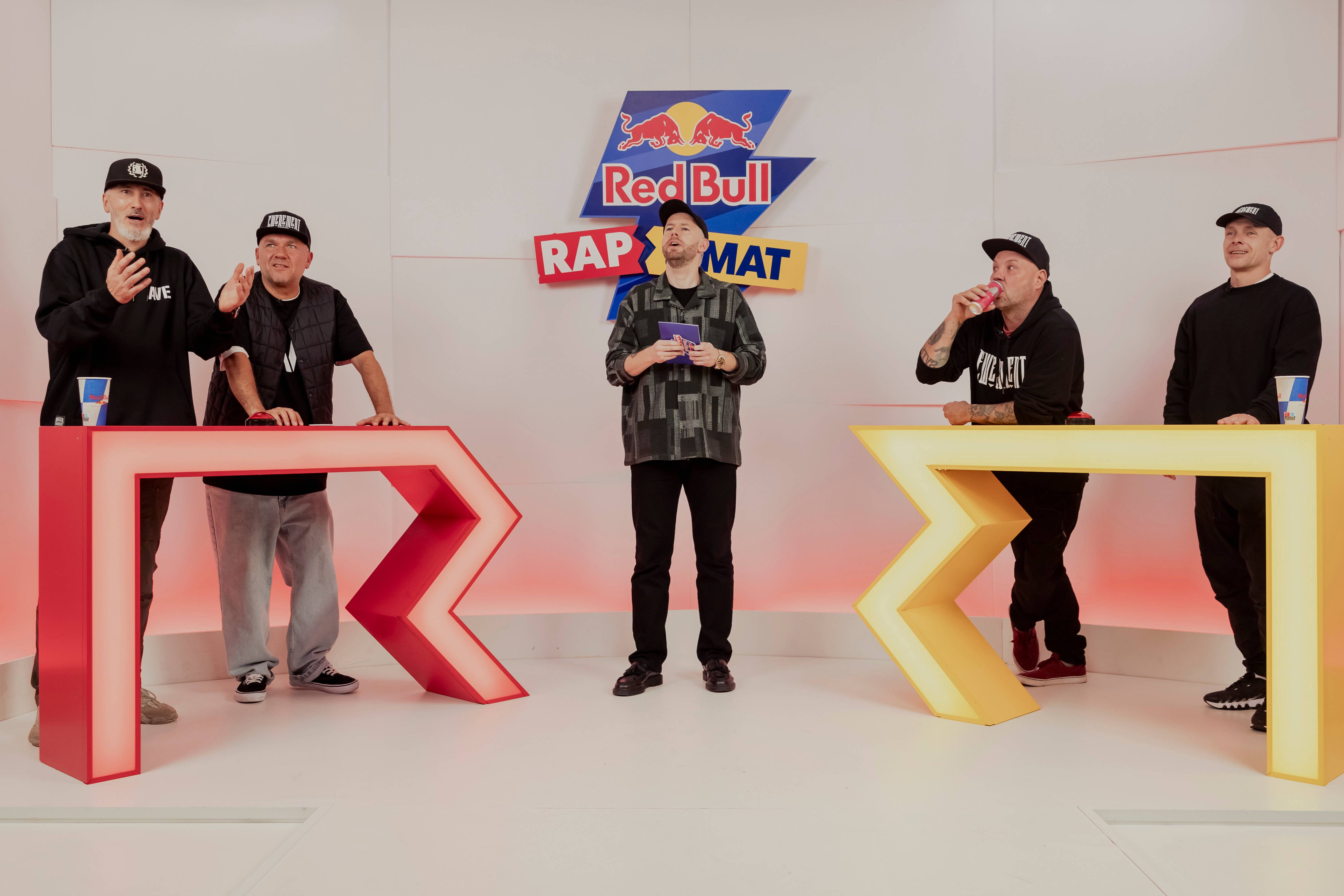 Znacie ich z płyt i koncertów, ale w takim składzie jeszcze ich nie widzieliście w pojedynku na punkty Red Bull Rap & Mat. Dla tych, którzy oglądają nas po raz pierwszy podpowiadamy, że Red Bull Rap & Mat to zabawny quiz z raperami i ludźmi związanymi z rapową sceną, w którym sprawdzamy muzyczną wiedzę uczestników, ale też ich poczucie humoru, refleks, a nawet talenty aktorskie. Ten i inne odcinki cały czas można oglądać na naszym kanale Red Bull Wersy na YouTube.
