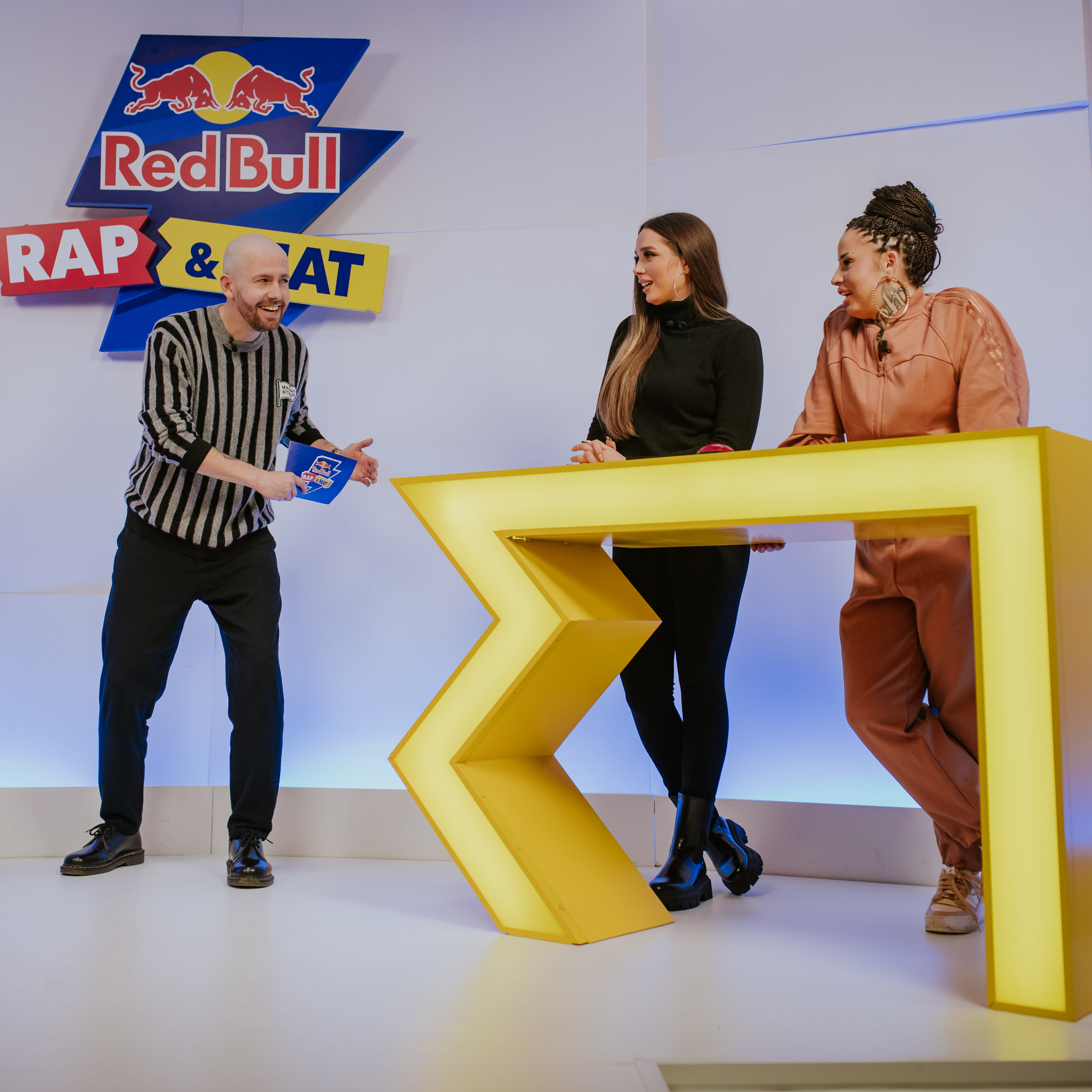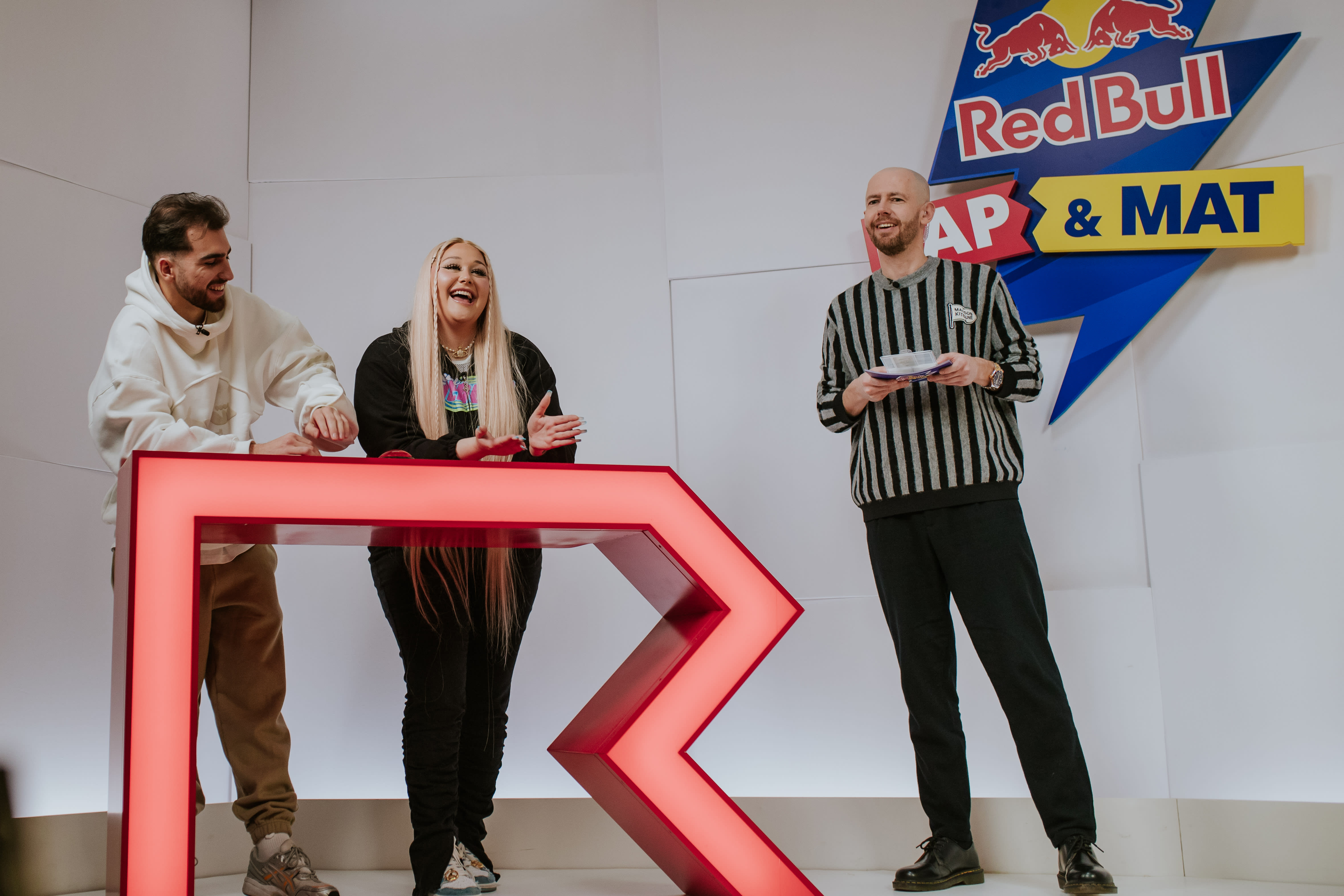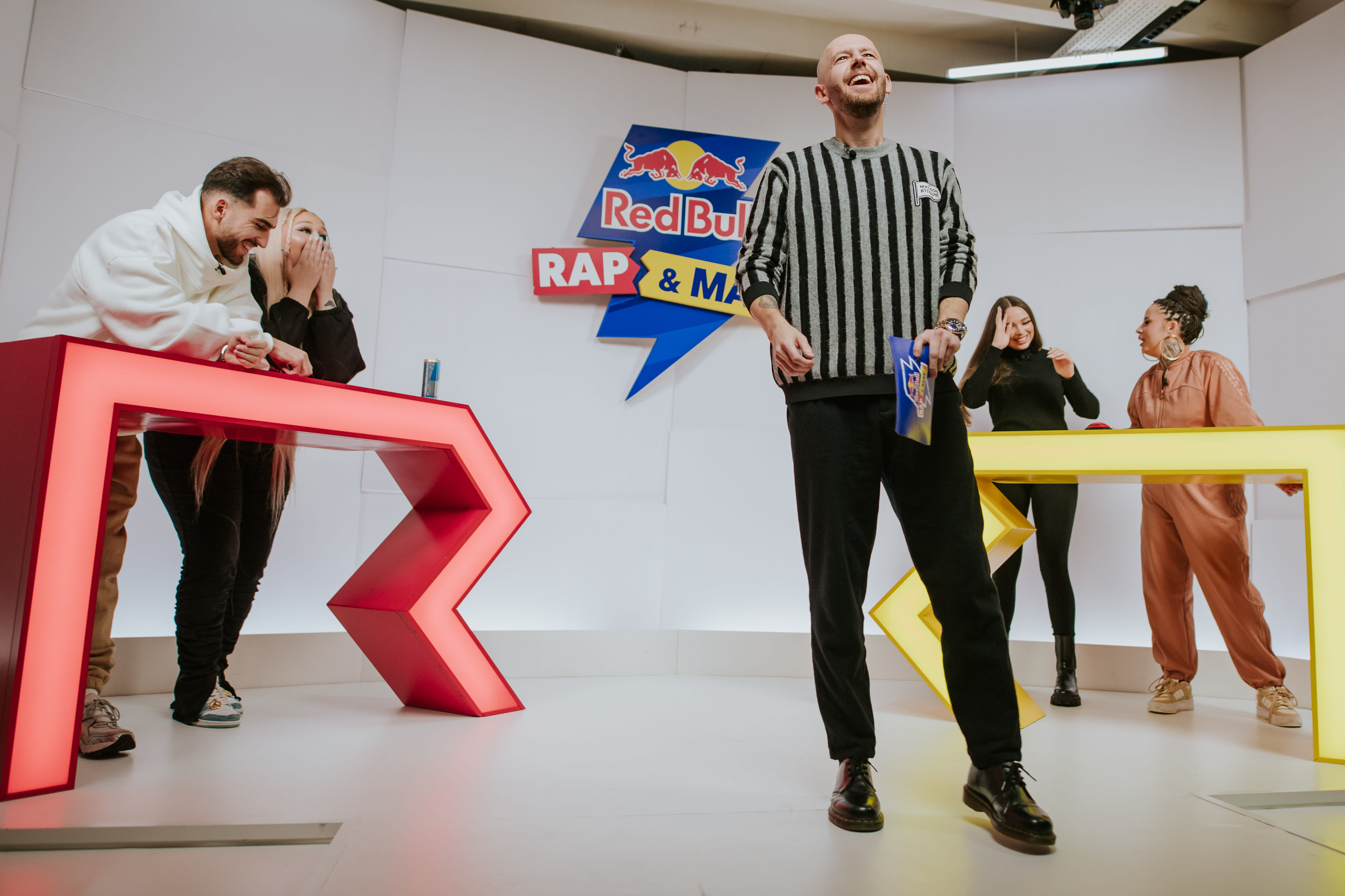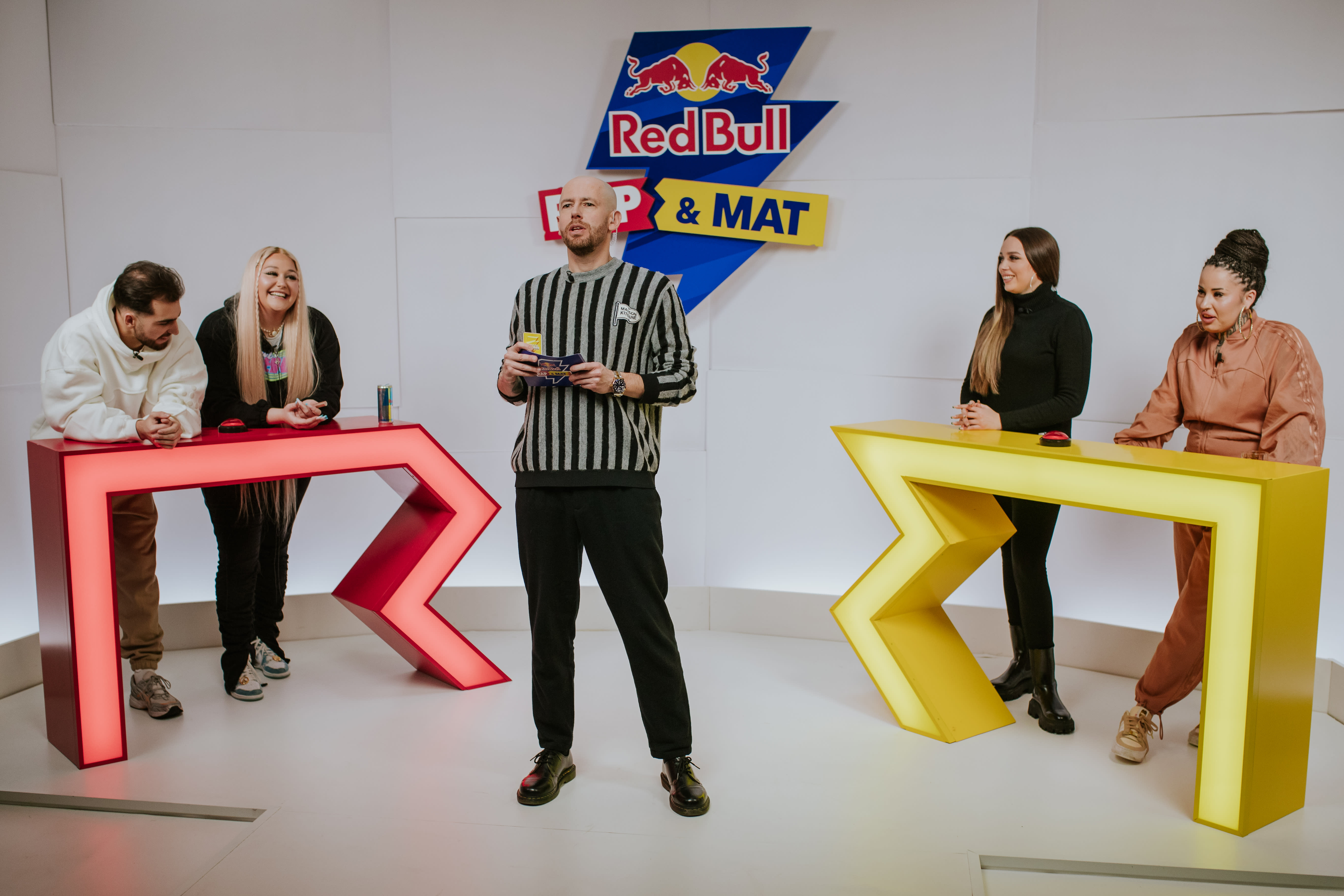 W tym, jak i każdym innym odcinku, drużyny rywalizują ze sobą na punkty, by uniknąć czekającej na końcu odcinka kary. Raz jest to zapowiadanie prognozy pogody z ustami pełnymi wody (jak w odcinku Grubsona z Vito Bambino), raz telefon do fanki, by pożyczyć od niej pieniądze (jak wtedy gdy Borixon walczył z Tede). Oglądaj cały odcinek Red Bull Rap & Mat, żeby niczego nie przegapić!