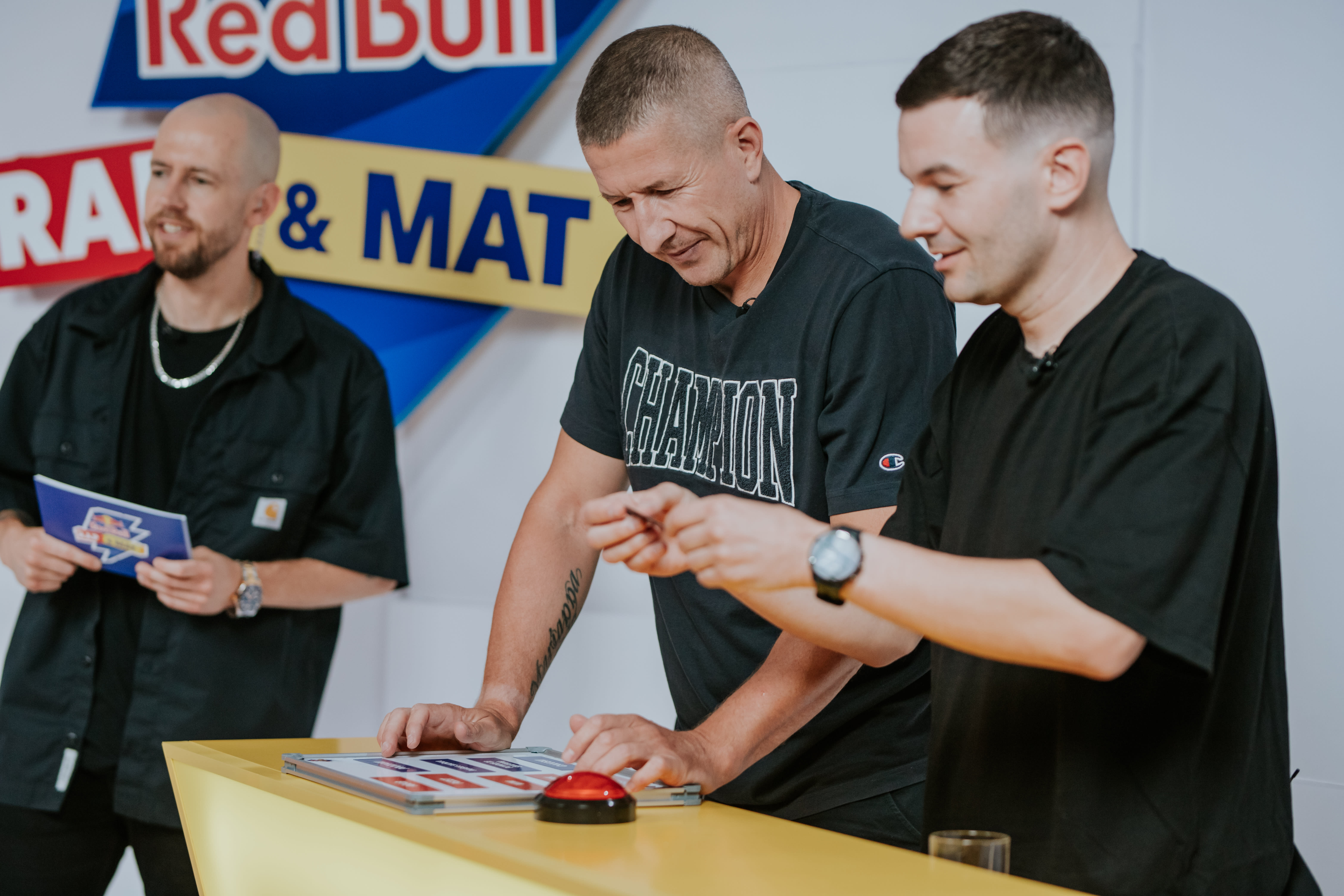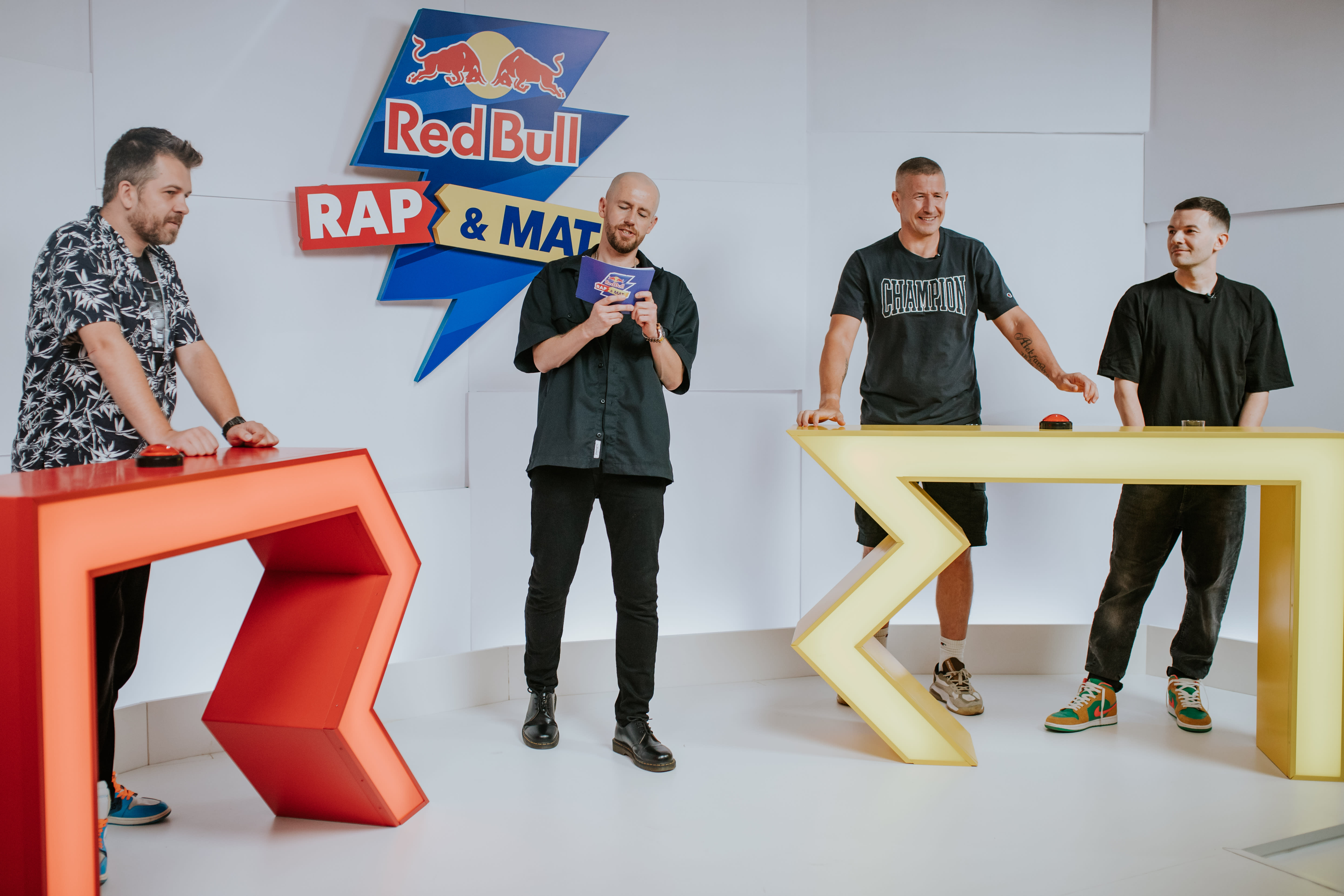 W tym quizie pomagają im jeszcze dobrzy znajomi DJ-e: Timon i Taek, bo gdzie jak gdzie, ale w Red Bull Rap & Mat przyda się każda dodatkowa porcja muzycznej wiedzy. Prowadzący cały program Ras sprawdza bowiem uczestników pod kątem ich znajomości polskiej sceny – czy słuchają rapowych hitów i potrafią odgadnąć, kto wyprodukował dany numer?