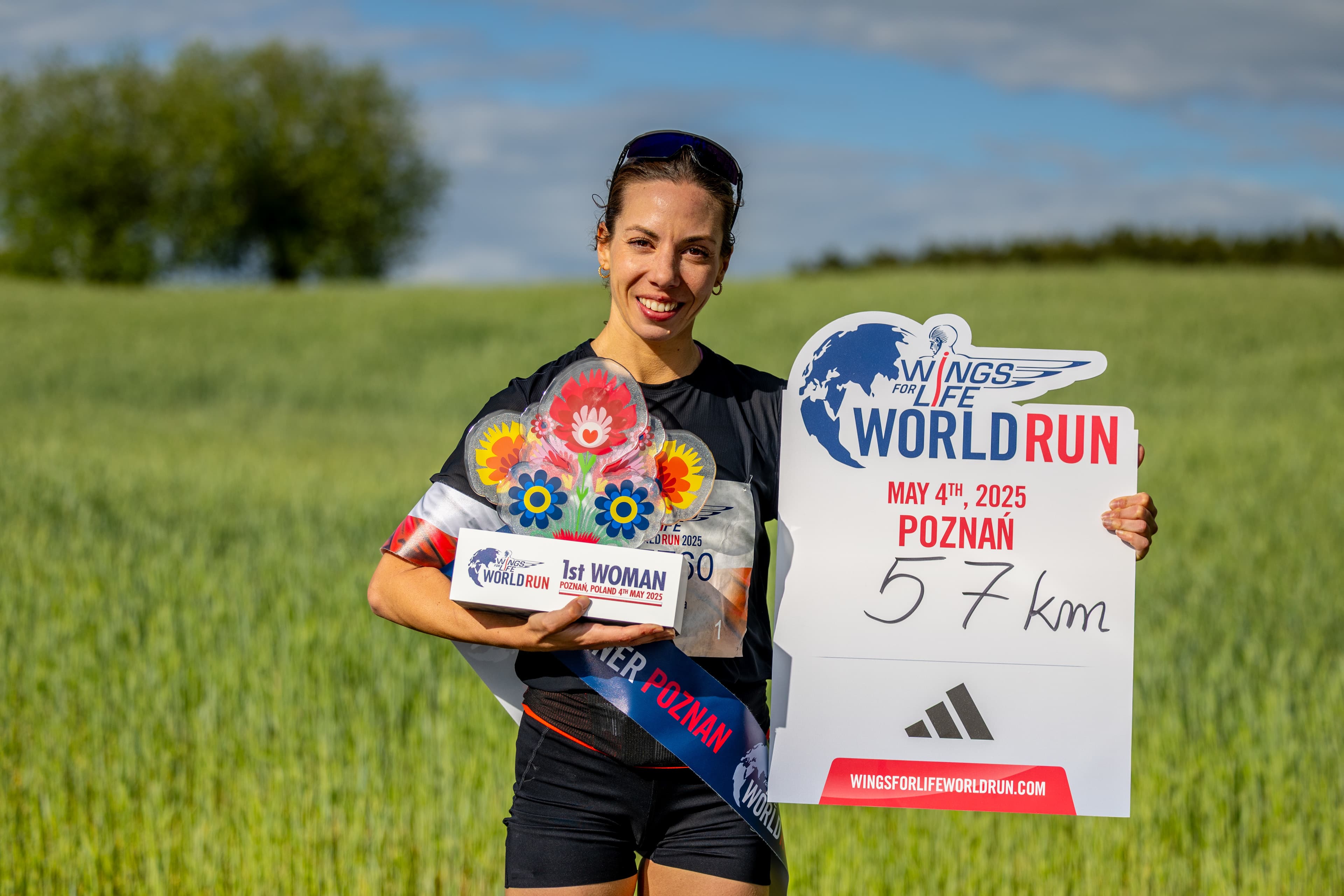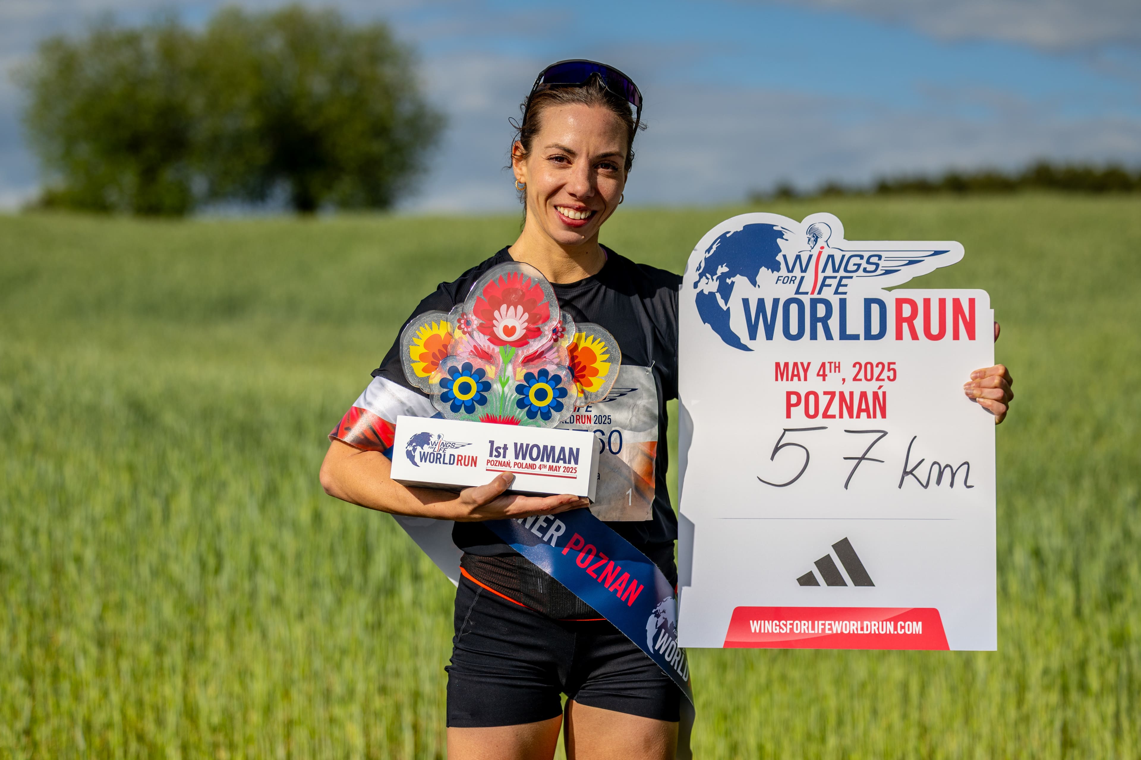 Zobacz ostatnie metry biegu Martyny Młynarczyk, która wygrała Wings for Life World Run 2025 w Poznaniu wśród kobiet.