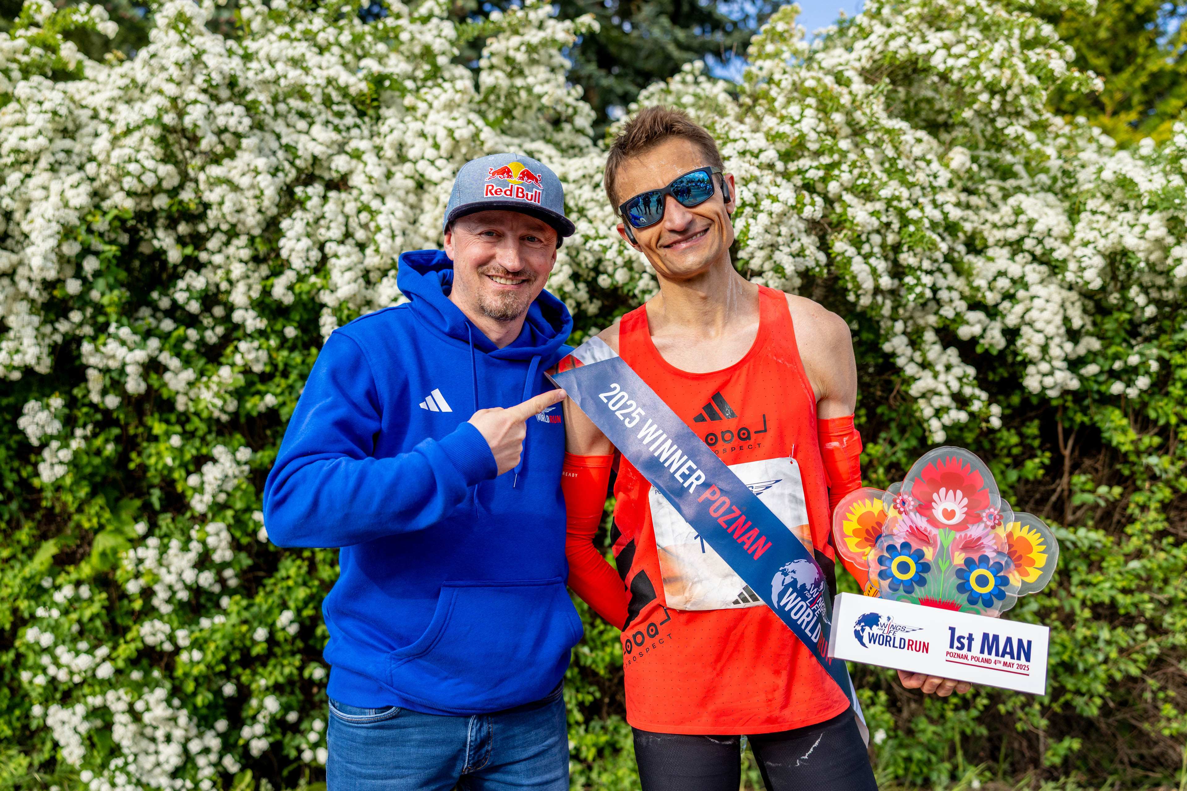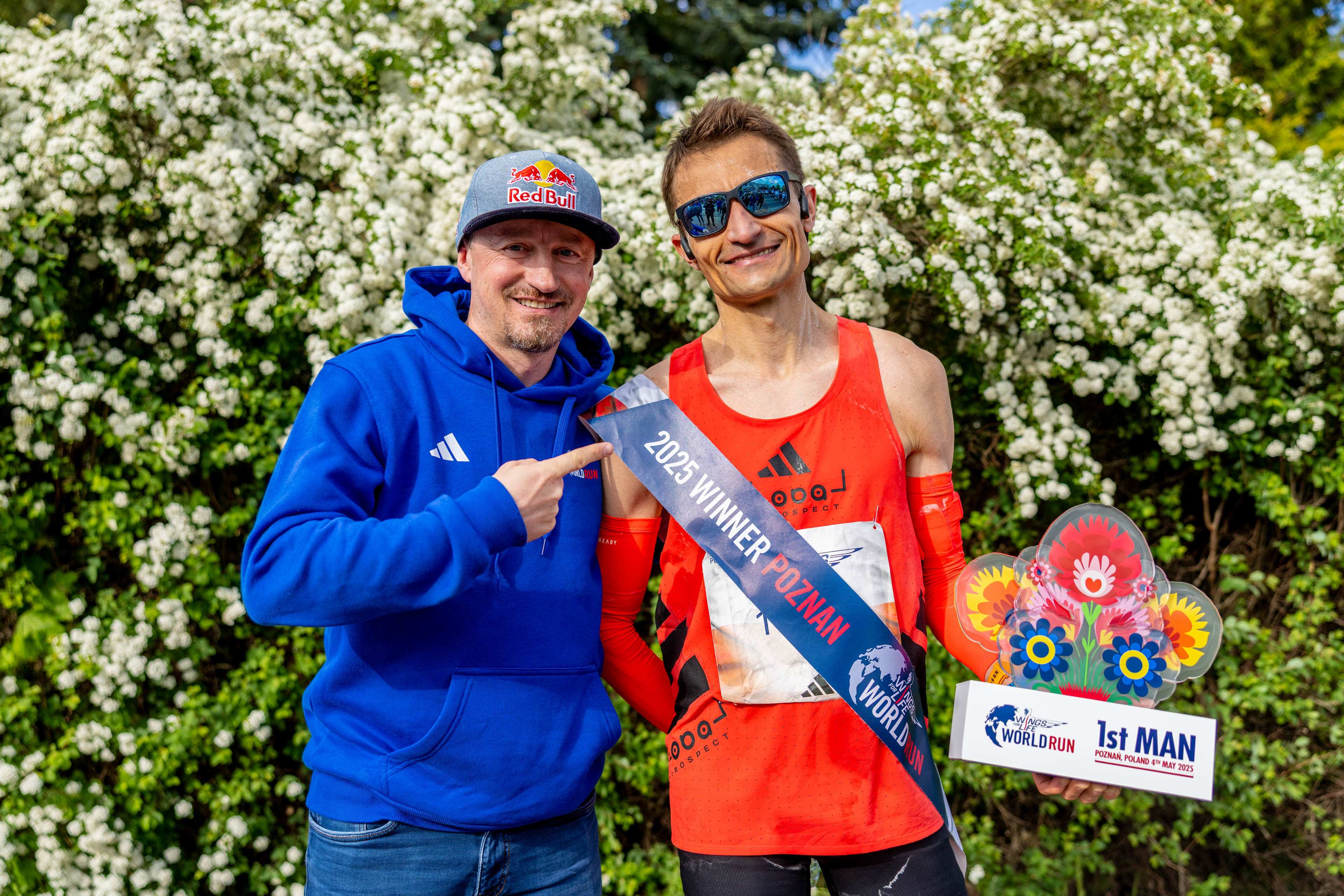 Zobacz ostatnie metry biegu zwycięzcy z Poznania Dariusza Nożyńskiego, którego Adam Małysz złapał w 2025 roku w Poznaniu jako ostatniego.