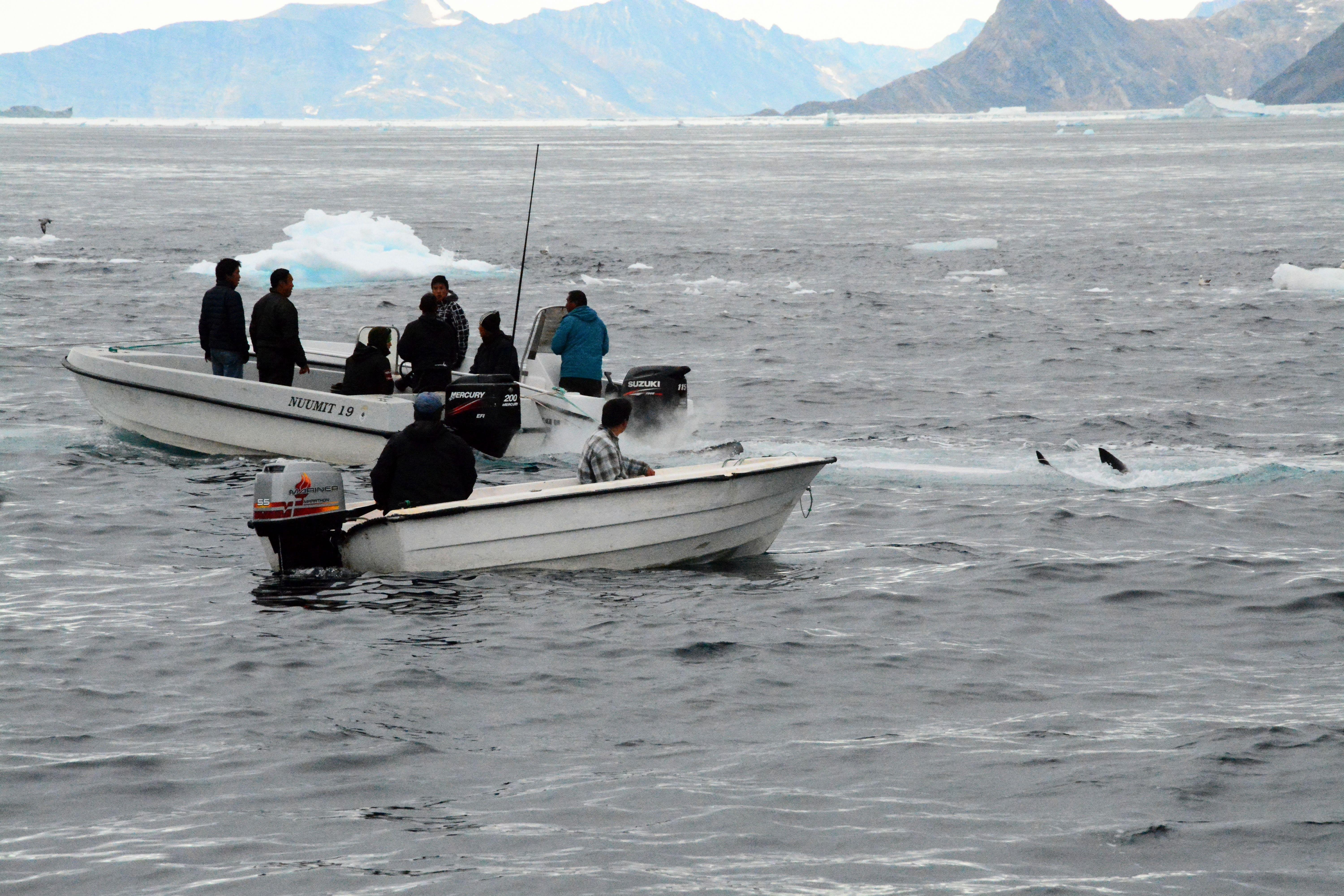 Mieliśmy okazję obserwować polowanie z wody. Nie zabiorą Europejczyka na polowanie, bo my poruszamy się jak słonie – głośno, hałaśliwie, gadamy. Myśliwy musi być cichy i skupiony, żeby podejść zwierzynę – tego biały człowiek nie potrafi. Ale włócząc się po fiordach, któregoś razu trafiliśmy na polowanie na wieloryby. Na wodzie pojawiły się minke whale’e. Widzieliśmy jak małymi motoróweczkami zaganiają takiego wieloryba i jak rzucają w niego harpunem, a potem wiążą i w kilka łódek holują do osady. Obserwowaliśmy to wszystko starając się nie przeszkadzać, z dużej odległości.