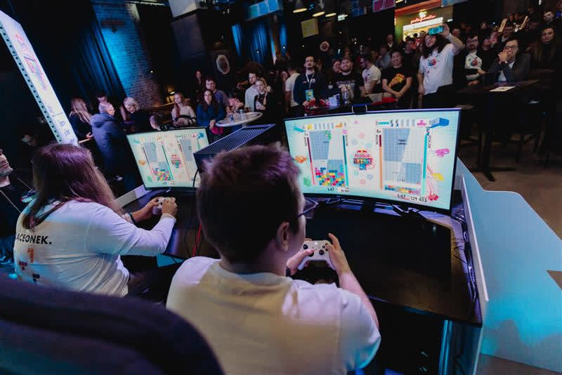 Powiem szczerze, że na początku byłem bardzo sceptyczny, My, gracze Tetrisa, troszeczkę nie lubimy takich urozmaiceń, ale im więcej zaczęliśmy grać, w szczególności tutaj z kolegą z Niemiec czy z innymi, tym bardziej zaczęliśmy zauważać „Kurde, to jest wciągające!”. Ludziom się to podoba, więc w tym momencie jestem w stanie powiedzieć bardzo szczerze, że jest to bardzo ekscytująca wersja i mam nadzieję, że organizatorzy będą faktycznie próbować dodać tę grę, bo jest bardzo dobrym urozmaiceniem i wymaga nowych strategii.