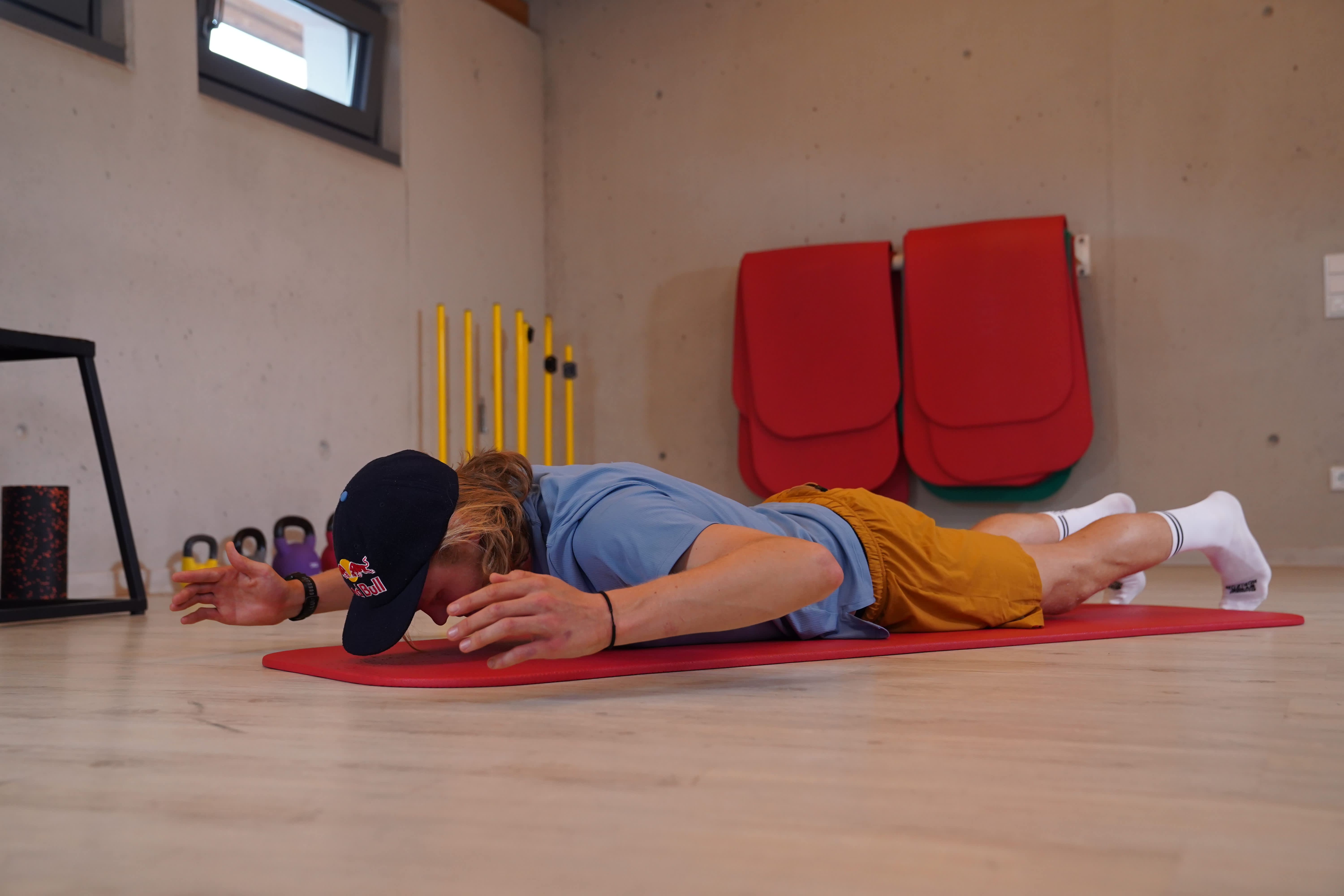 Agora estás pronto para começar! Existem várias formas de organizar o treino de costas em casa. Para poupar tempo e treinar resistência e força muscular, o Mika realiza os cinco exercícios consecutivamente, com uma pausa máxima de 60 segundos entre cada um. A isto chama-se treino em circuito.