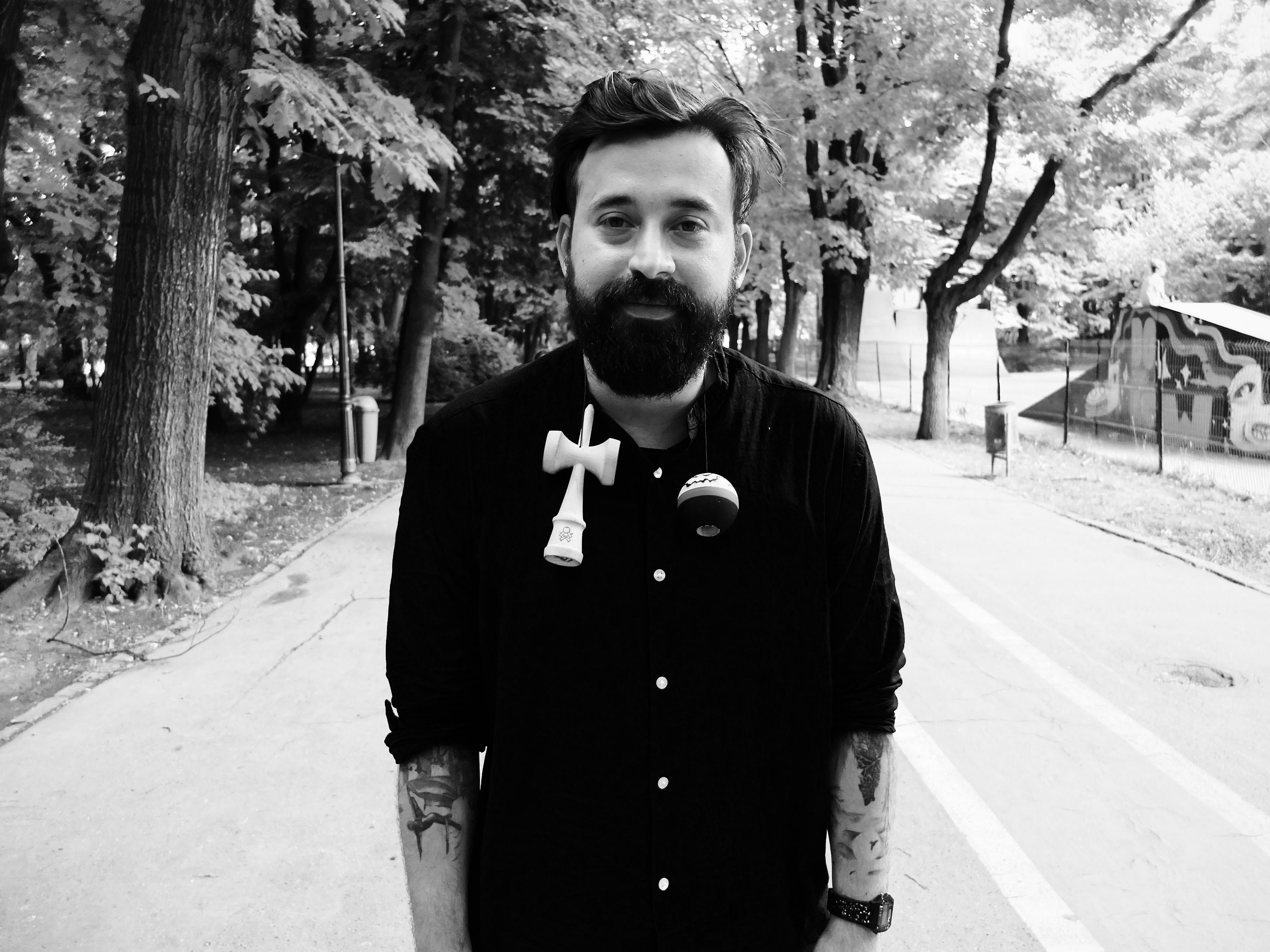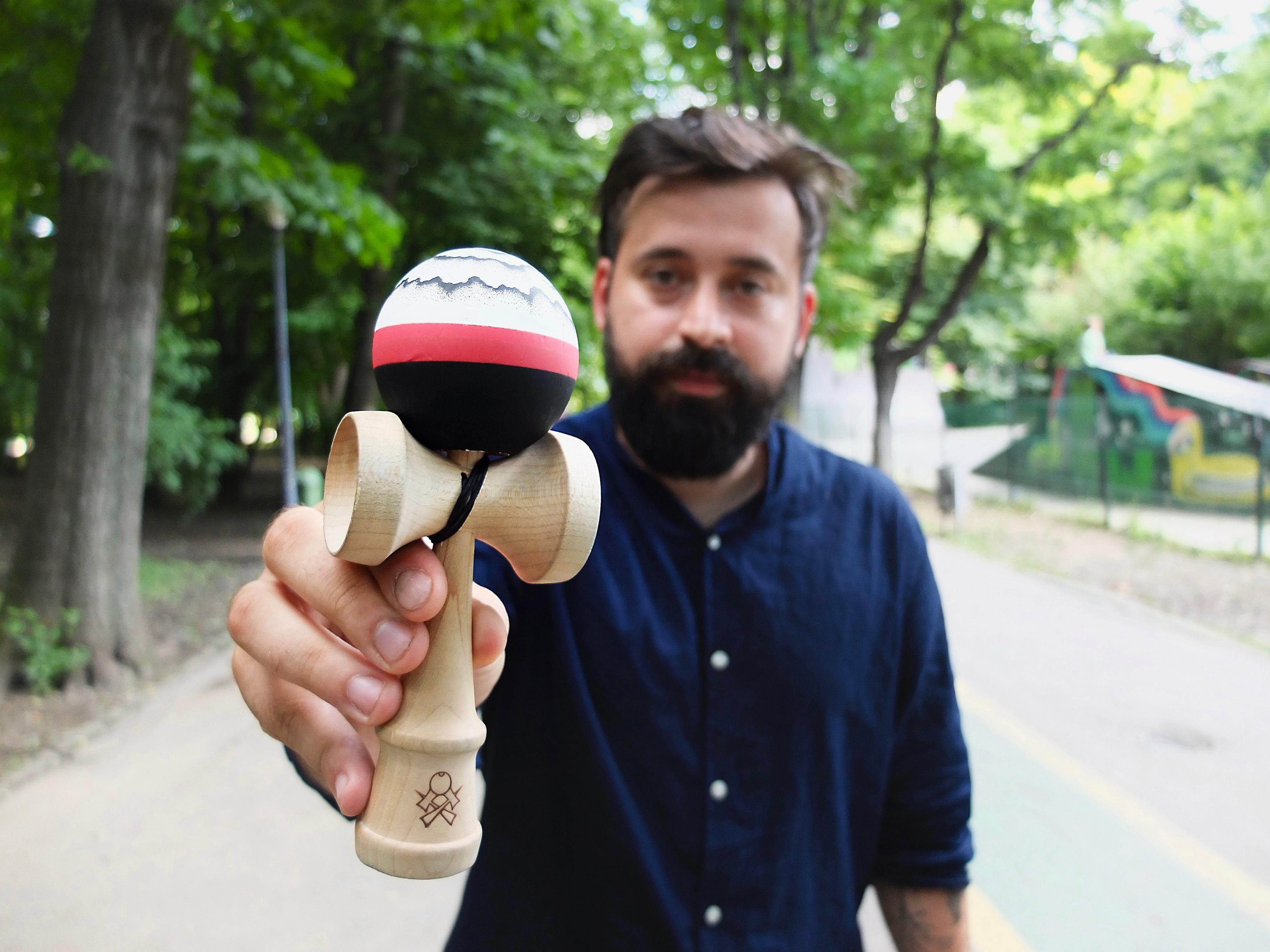 Cum ai dat tu de kendama?Cu ani în urmă, aveam niște prieteni rolleri și unul a venit cu o kendama. Am pus mâna pe ea și mi-a lăsat-o mie acasă și acasă a rămas vreo două luni de zile de izbeliște, nu m-am atins de ea. Apoi m-am dus într-un magazin specific japonez, nu mai știu în ce țară eram, și am văzut niște kendame care nu aveau forma actuală, erau ieftine, tip suvenir. De asta aveam și eu acasă. Și la magazin am văzut un tip care se tot juca cu ea și mi-a arătat cum se face. Și am zis: wow, am și eu acasă, o să încerc și eu. Și am încercat și eu și în secunda doi m-am trezit că nu mai pot s-o las din mână. Vreo doi ani de zile nu i-am mai dat drumul. Apoi mi s-a stricat, deci mă întrebam: cum fac acum să iau alta, de unde iau, că nu se găseau ca acum. Și m-am zbătut, am găsit eu nu știu ce site-uri și am comandat trei. Și de acolo a început nebunia mea. Si de la trei am ajuns la 650 de kendame azi.