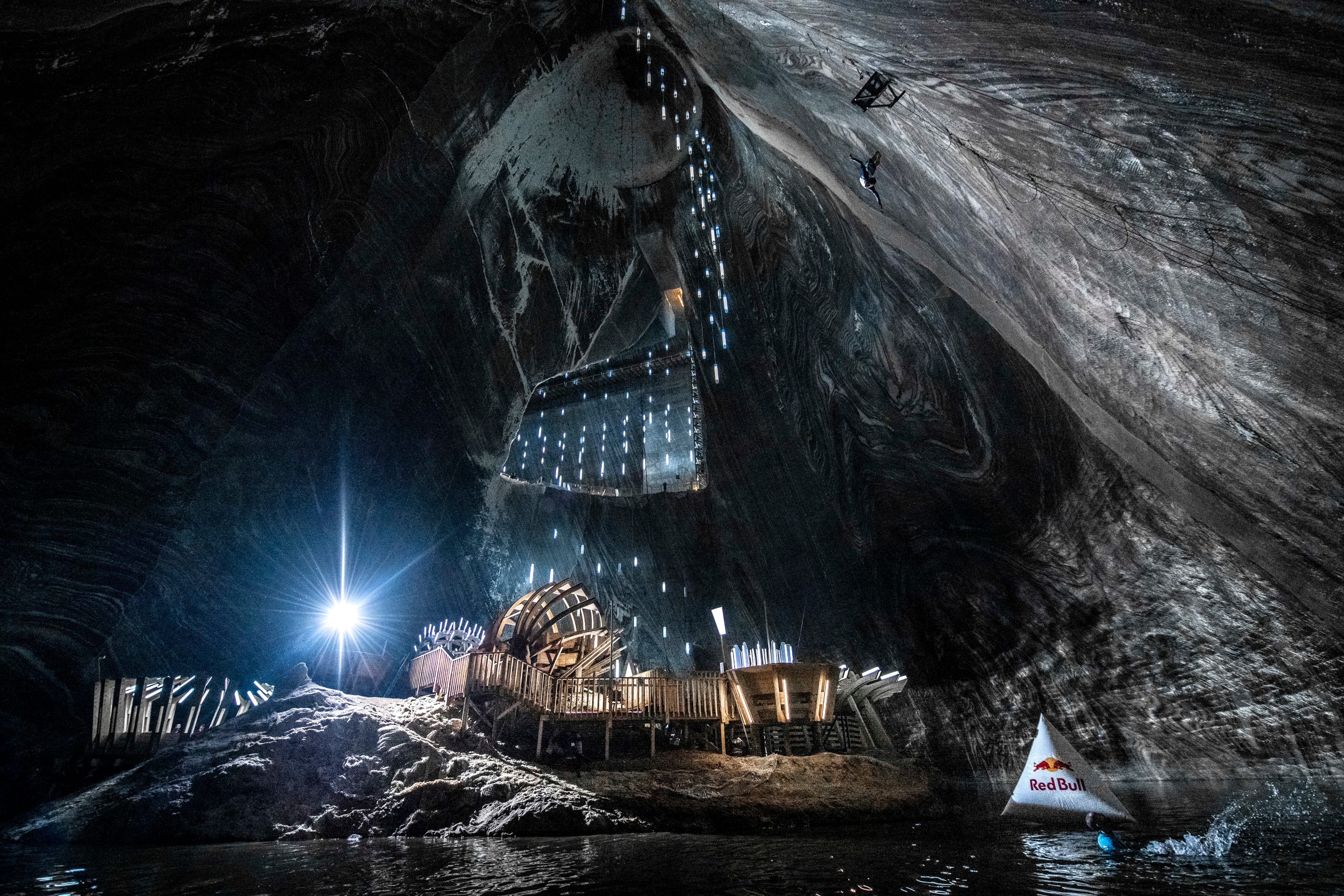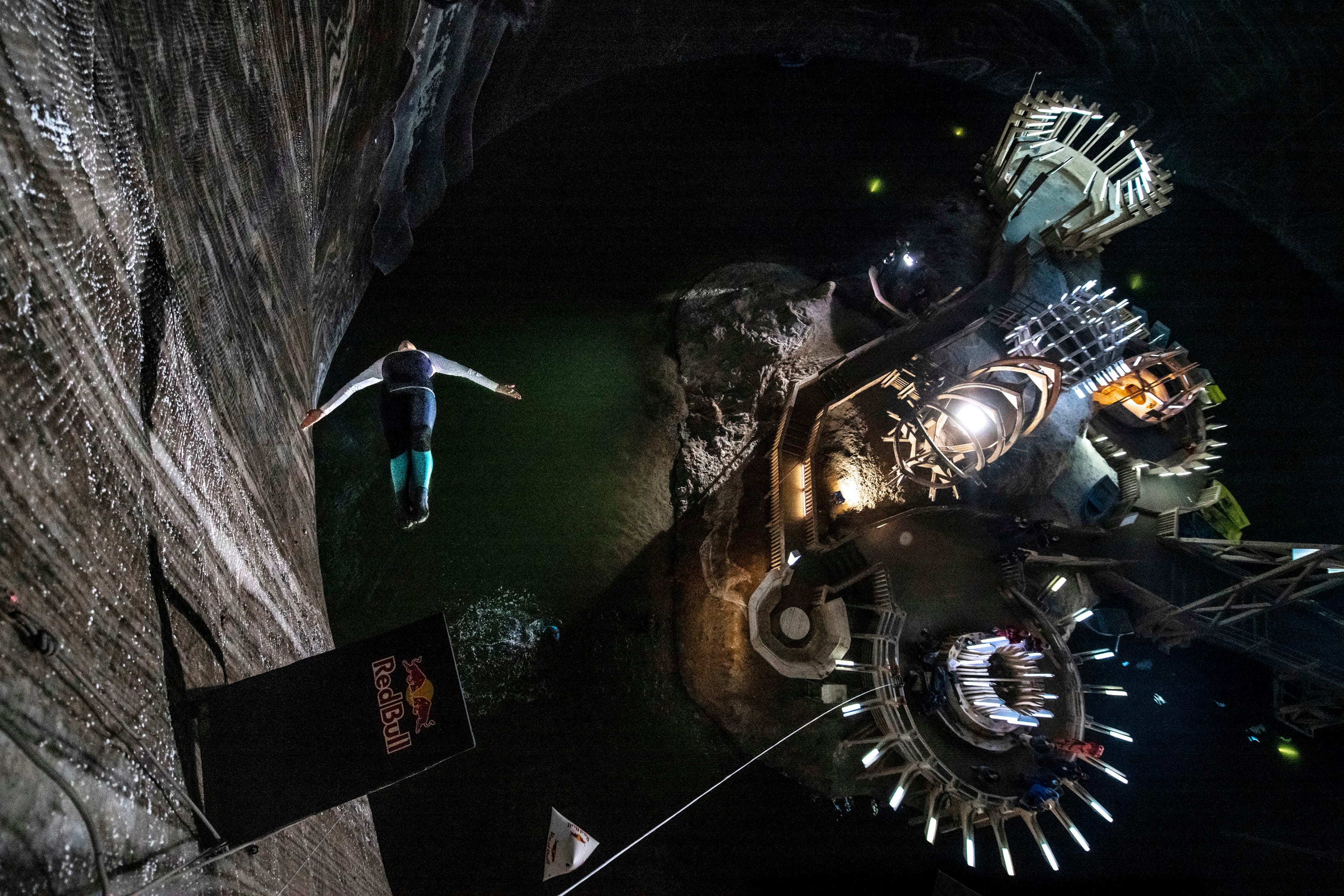 De patru ori campioană în seria mondială Red Bull Cliff Diving, australianca Rhiannan Iffland și starul în ascensiune al României, Constantin Popovici, au plonjat la 120m sub pământ, în lacul subteran din Salina Turda, una din cele mai vechi mine de sare din lume.