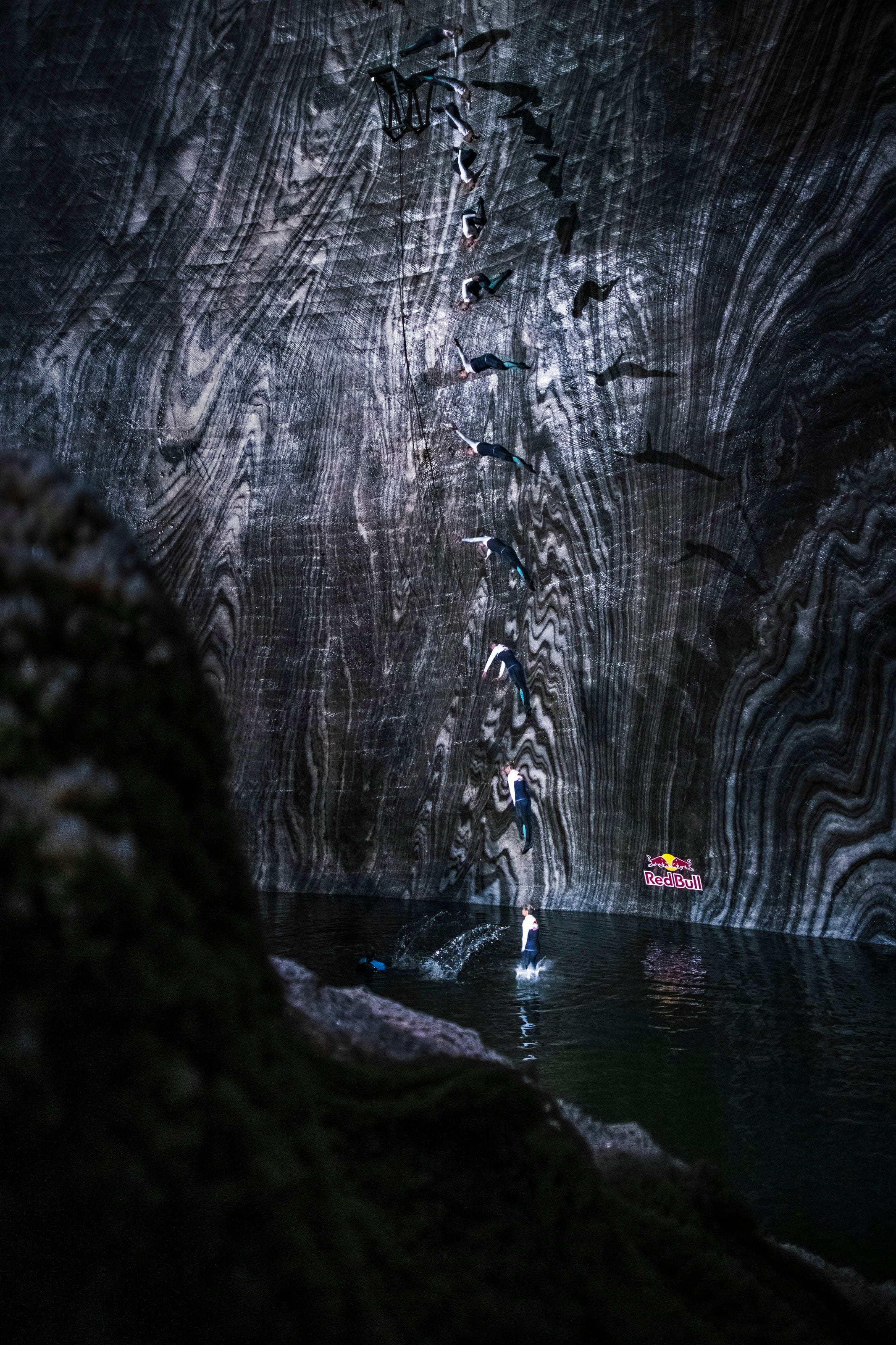 La doar 12°C, temperatura apei și a aerului părea cea mai ușoară provocare. În realitate, adevărata încercare a venit din salinitatea ridicată a lacului subteran, care a schimbat complet senzațiile și dinamica săriturii. Apa densă a exercitat o forță de flotabilitate mult mai mare, oprind corpul aproape instantaneu după impact. Cu o salinitate de opt ori mai mare decât cea a Mării Adriatice, sportivii s-au oprit complet la doar doi metri și jumătate sub suprafață, în locul celor cinci metri obișnuiți la o săritură de la 27 de metri înălțime. Iar dacă aceste condiții extreme nu erau suficiente, întunericul absolut al adâncurilor le-a adăugat o nouă dimensiune provocării.