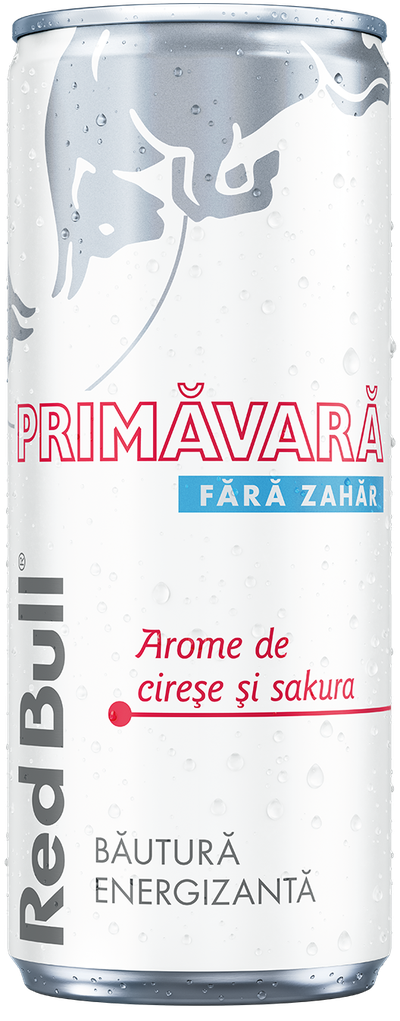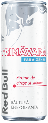 Red Bull Primăvară fără zahăr cu arome de cireșe și note florale de flori de cireș.