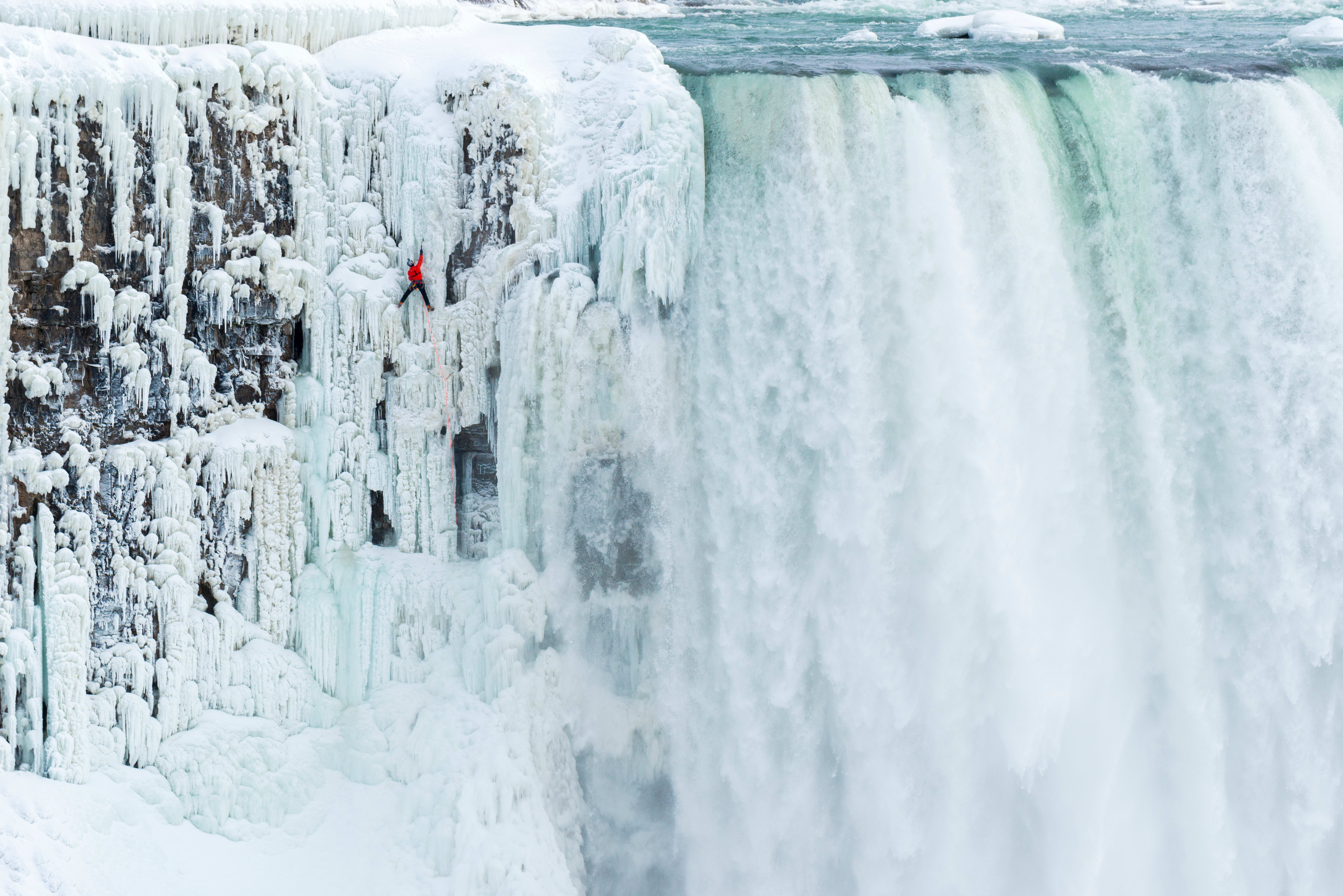 Will Gadd ”înghețat” în timp pentru câteva secunde pe cascada Niagara