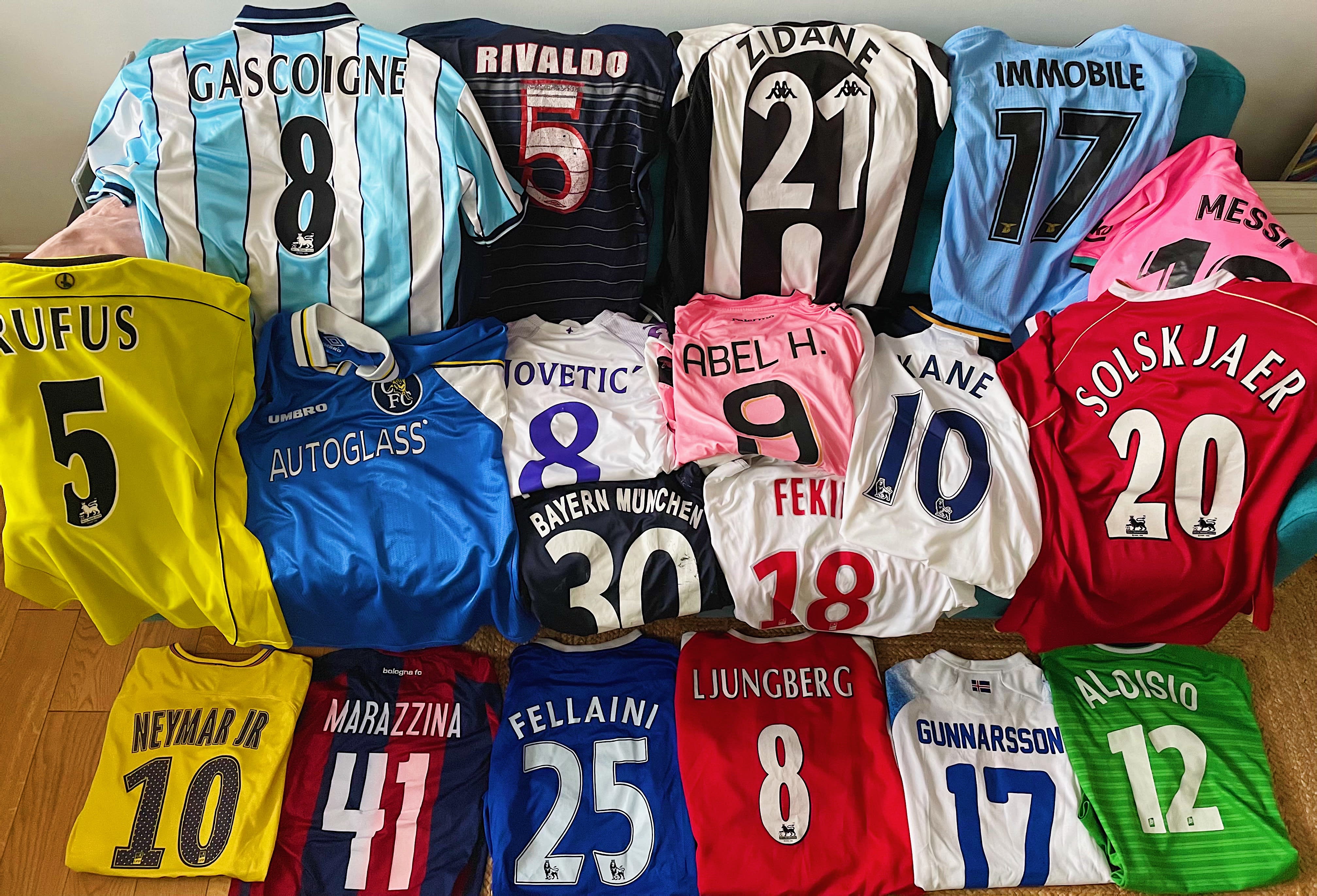 Apoi tricouri de la fotbaliști de legendă care au jucat la Chelsea, Milan, Inter, Juventus, Barcelona, Bayern Munchen, Dortmund. Tricoul lui Paul Gascoigne de la Middlesbrough, Solskjær de la United, Beckham, Ronaldinho, Zidane. Sunt foarte multe. Toate tricourile echipelor românești din prima ligă, tricourile celor mai tari echipe din Franța, Spania, Olanda, Germania. Am ceva și pe America Latină. Boca, River, Atletico National Medellin. Tricouri ale echipelor naționale. Sunt multe site-uri din afară care comercializează astfel de tricouri. Apoi grupuri de Facebook cu colecționari. Comunitatea începe să fie din ce în ce mai mare.