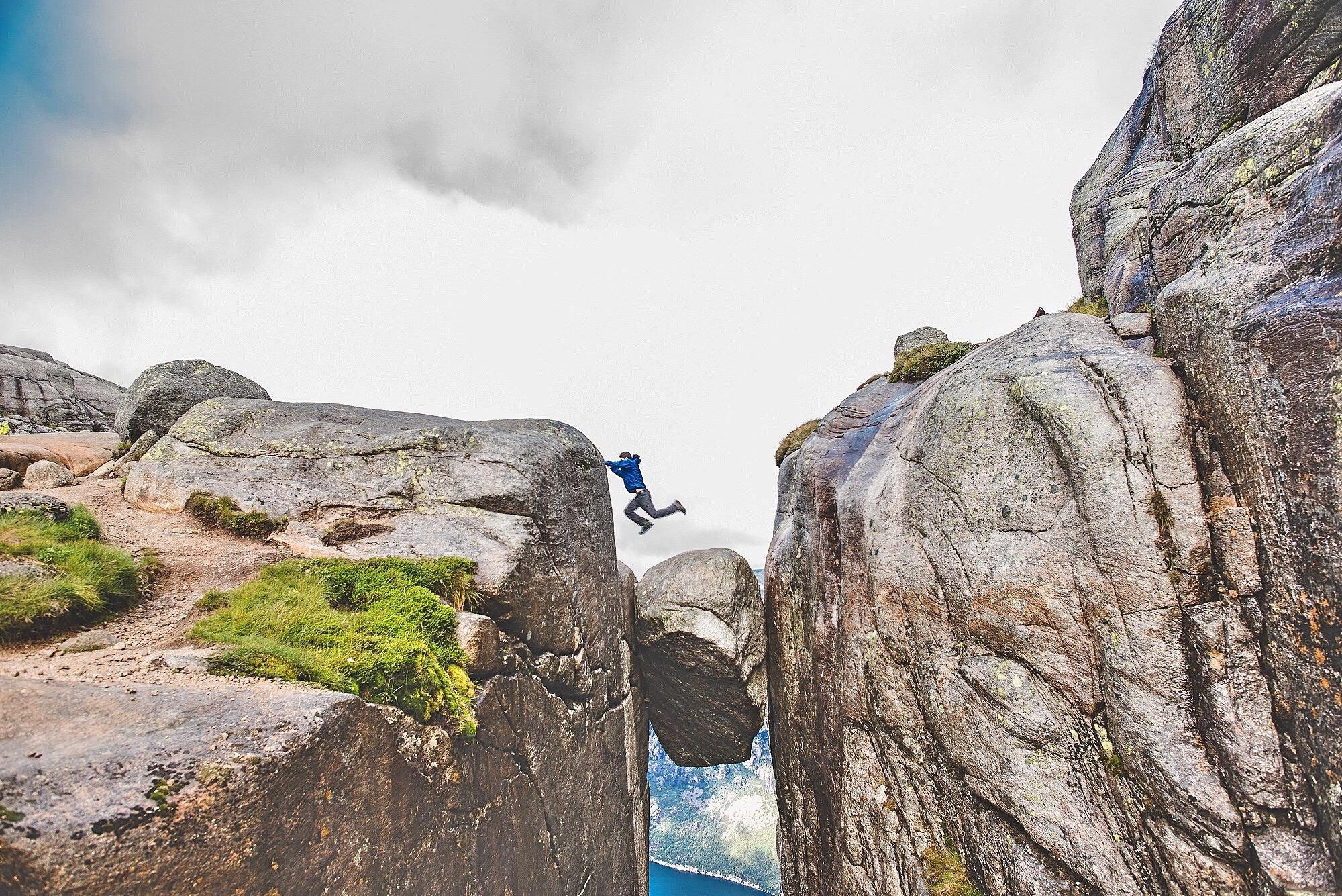 Если ты еще сомневаешься, отправляться ли тебе в Норвегию, вот решающий аргумент: в конце этого маршрута ты сможешь постоять на гигантской круглой глыбе, зажатой в огромной трещине между скалами на высоте 1000 м.