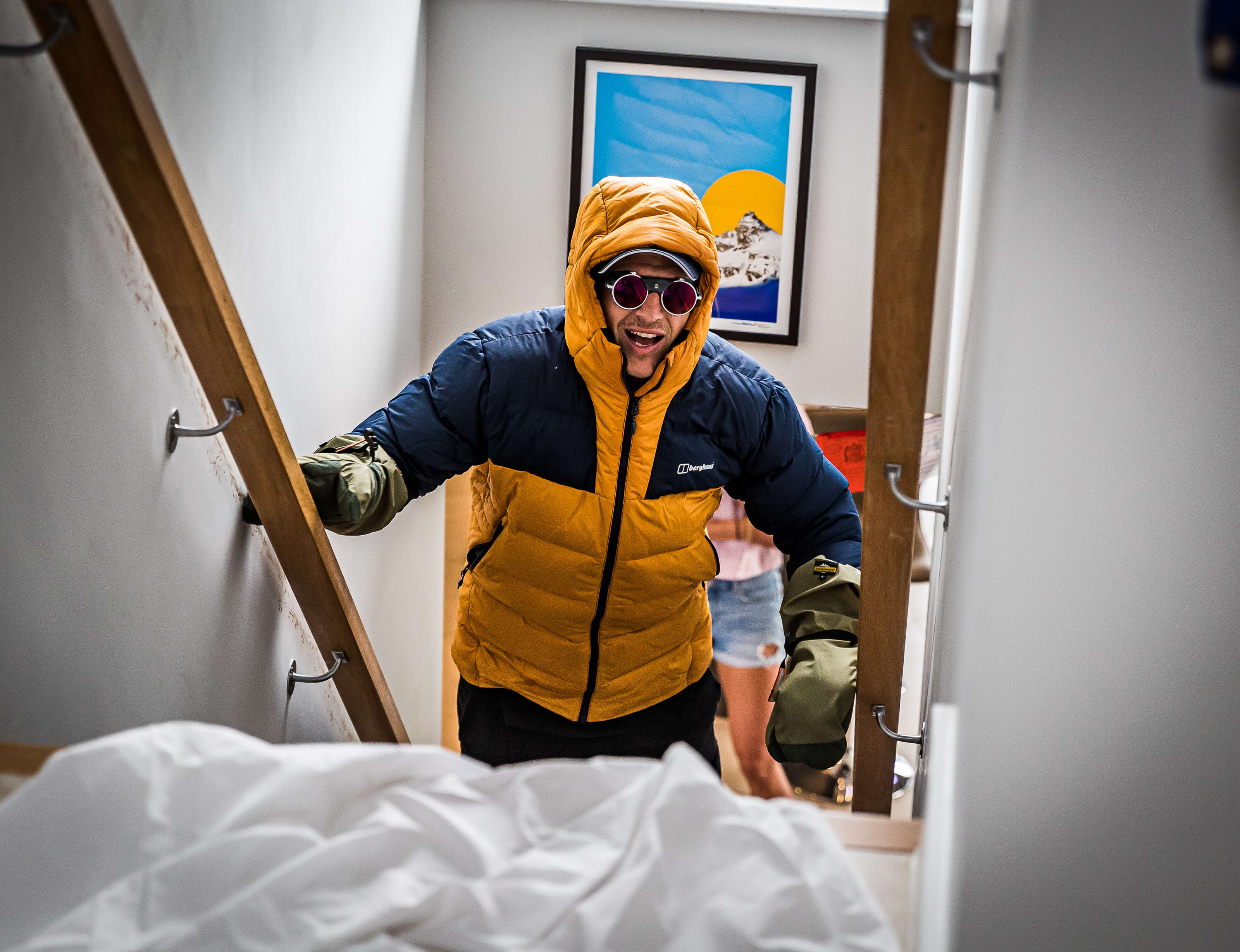 Восхождение не прошло без обычных для альпиниста сложностей, начиная от многочисленных мозолей на пальцах, заканчивая несколькими лавинами из пенопласта, организованных женой Эда и его мачехой.