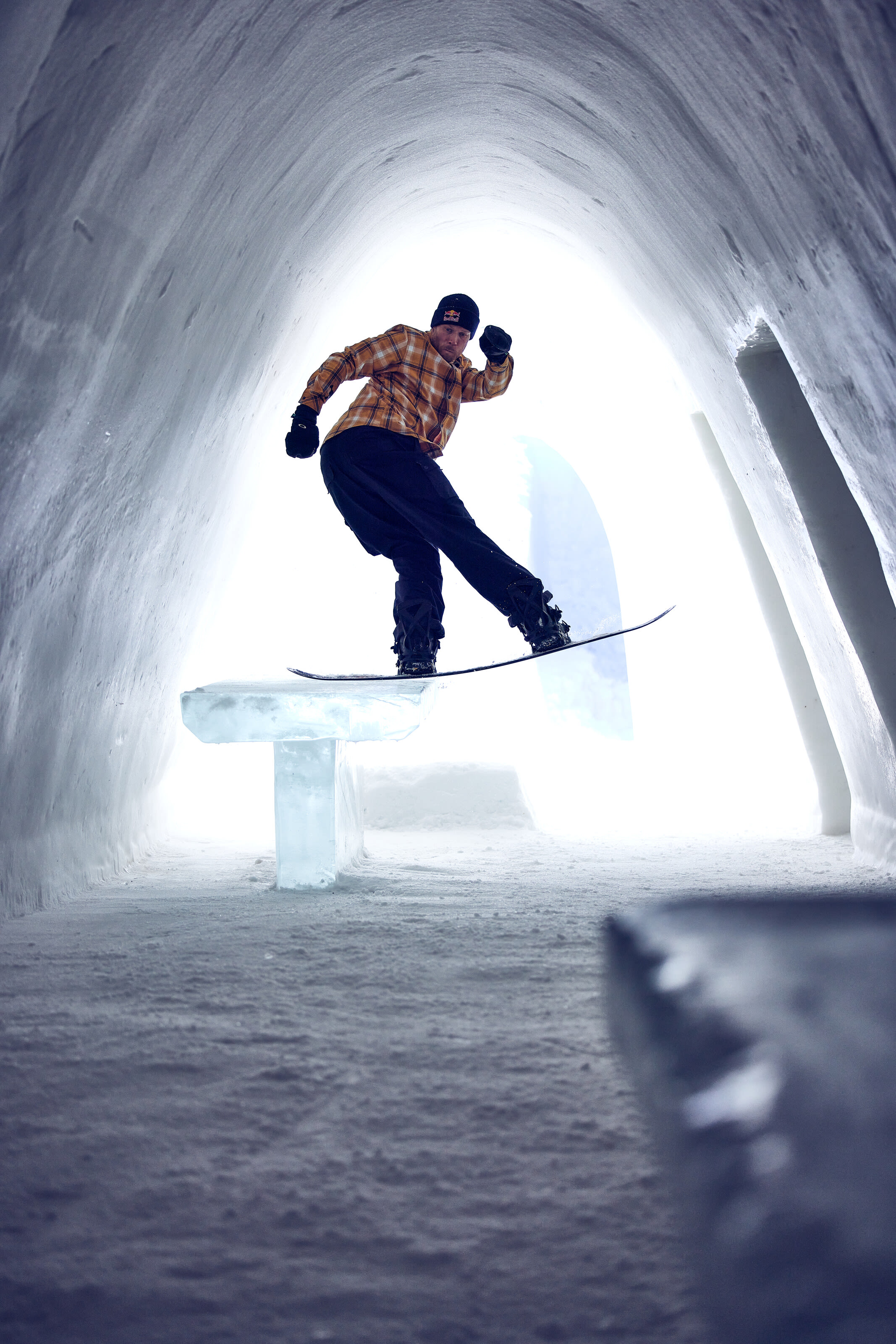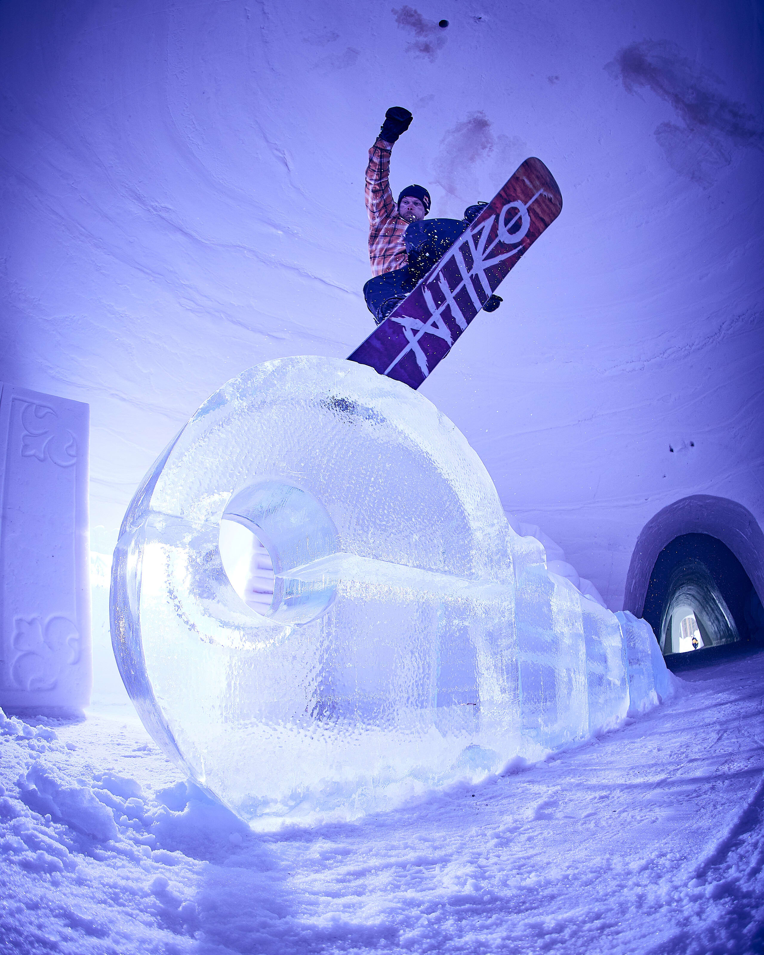 Для большинства снежный замок становится незабываемой туристической достопримечательностью, а опытный сноубордист Ээро Эттала помимо красоты видит в ледовых конструкциях любопытный спот для катания.