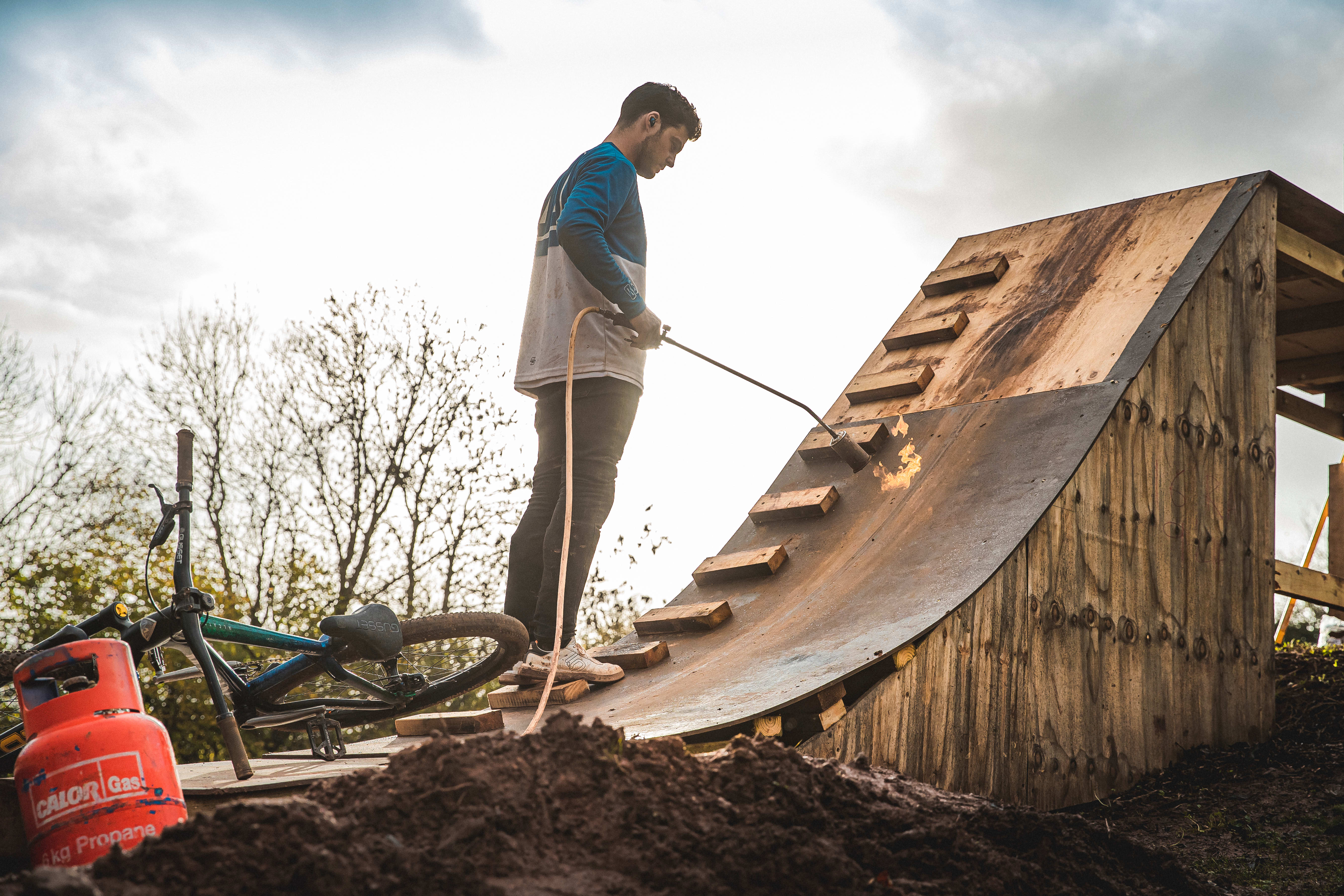 Я очень много тренировался на своем споте, чтобы выполнить гейнер. Многие кадры не вошли в сериал. Весь август я не снимал видео на YouTube и занимался каждый день: менял высоту стола, возился с подушкой безопасности, пытался понять, как выполнить трюк. Вплоть до поездки в Девон у меня ни разу не получилось выполнить гейнер. Сначала я попробовал сделать гейнер над воздушной подушкой, а на следующий день убрал ее. У меня получилось только один раз, и, вероятно, больше я никогда не буду повторять это.