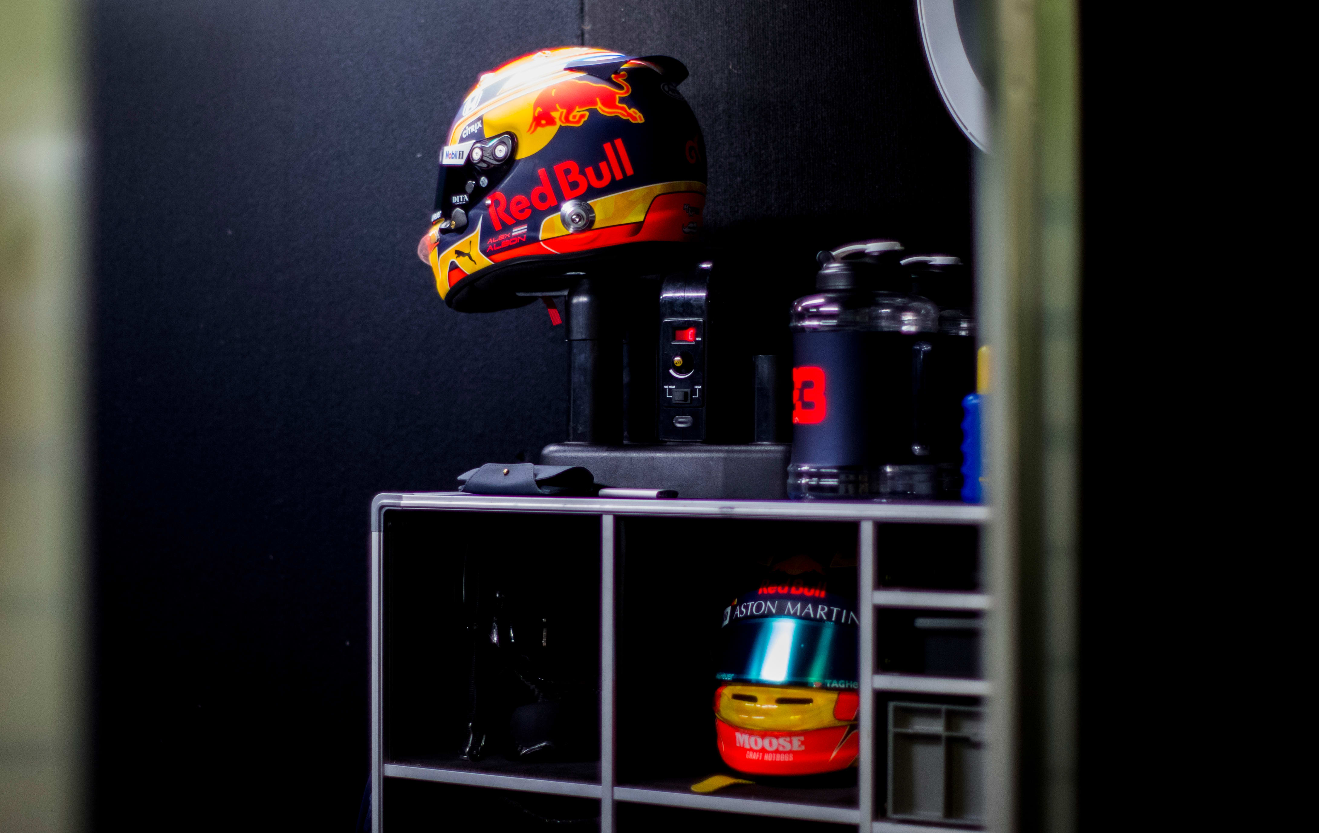 "Я готовлю два шлема для теста, а потом начинаю красить те, которые пилот будет использовать течение сезона. Мы работаем с компанией MDM Designs, поэтому базовый дизайн довольно широк, а затем мы с Алексом решаем, какие мелкие детали стоит добавить. Первый этап заключается в том, чтобы разобрать шлем, почистить его, а затем нанести основные цвета, такие как красный, синий и желтый. Второй этап заключается в том, чтобы нанести все необходимые логотипы, а последний этап - это собрать шлем, прикрутить визор и спойлер, и отправить его обратно в Red Bull.”
