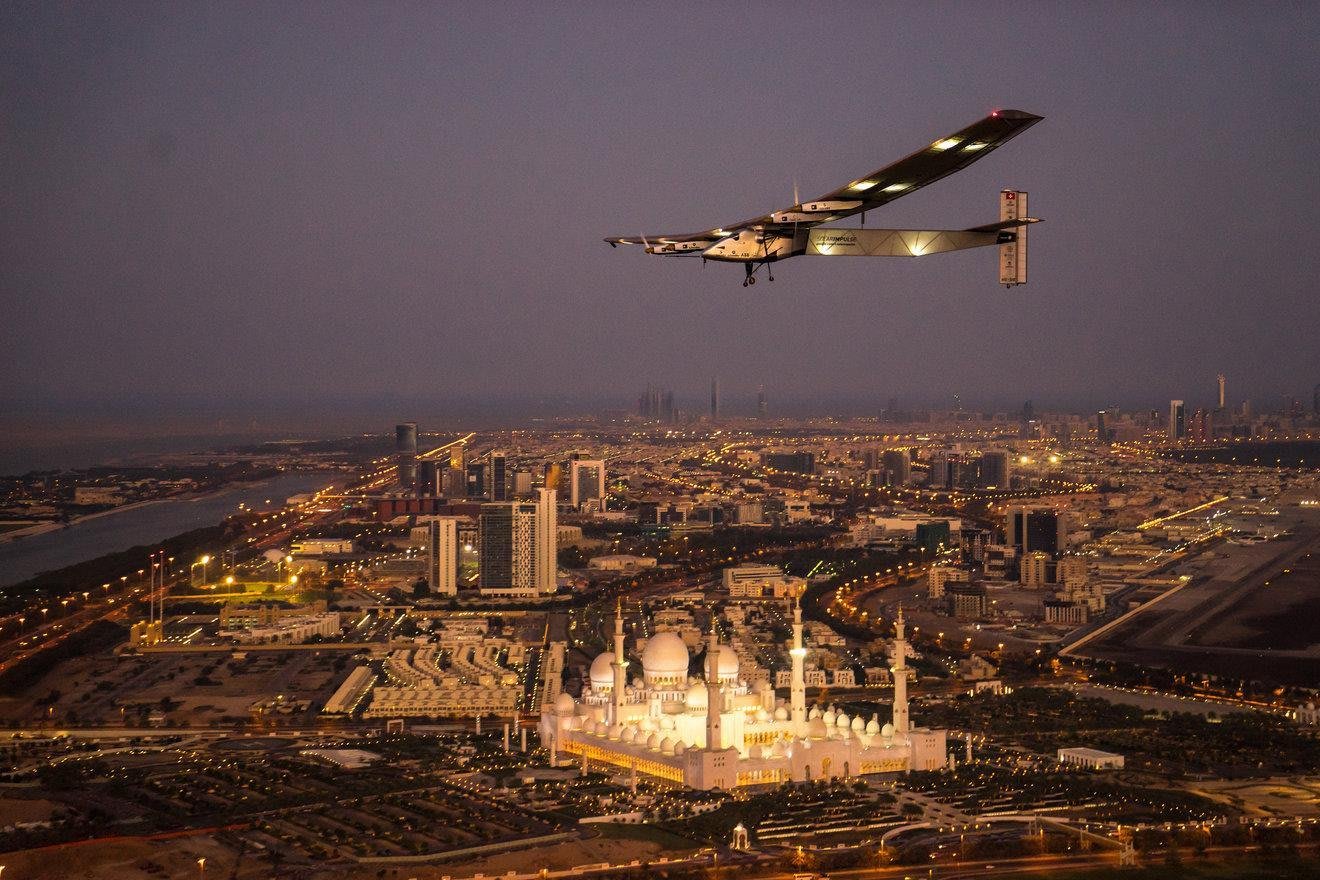 Бертран Пикар еле втискивается в узкую кабину, где тесно, словно в тюремном каземате. Места настолько мало, что он едва может пошевелиться. Техник вынужден подняться к кабине, чтобы подключить шлем пилота к бортовому компьютеру. Чтобы защититься от холода, 57-летний Пикар натягивает спасательный жилет поверх летного комбинезона. За спиной у него закреплен ранец парашюта. На крыльях его самолета 10 748 ячеек солнечных батарей, которые в буквальном смысле впитывают лучи заходящего солнца. Размах крыльев этого воздушного судна с бортовым номером HB-SIA составляет 63,5 метра, как у Airbus А340. При этом пилот втиснут в кабину, которая в два раза меньше обычной телефонной будки.
