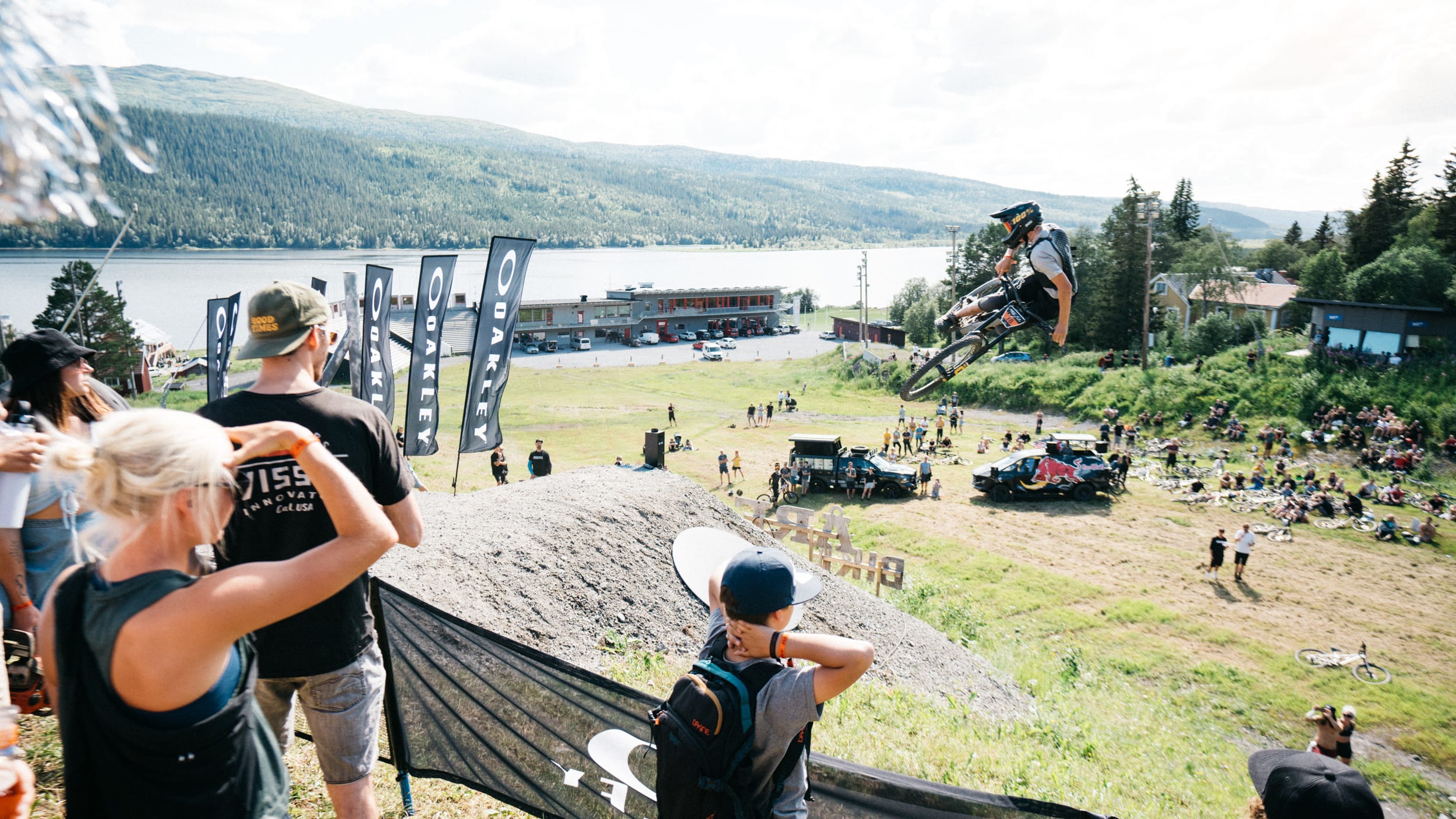 A bunch of riders - from experienced Downhill racers to freeriders and even kids as young as 9-years old - were sending it sideways. Loose canon Tobbe Jangmoo played it up for the crowds throwing down both front and off-axis flips.