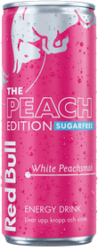 The Red Bull Peach Edition Sugarfree offers the taste of white peach with a touch of citrus peel and floral notes.