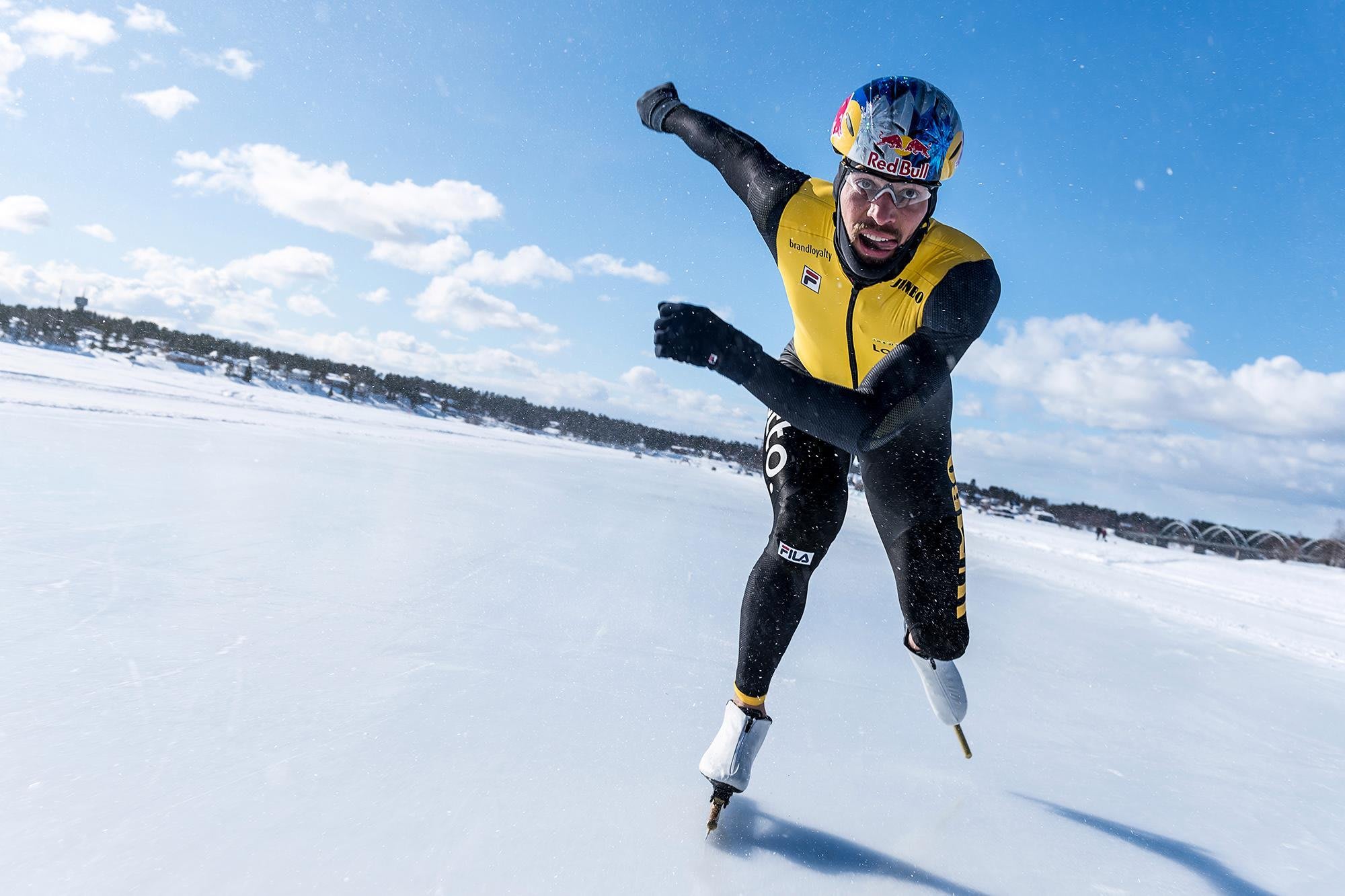 “When I went next to the aeroshield, I really got punched back by the wind. It felt like hanging my head out of the window on the highway. That exact feeling, but on skates with irons of 1.1 millimetres!”