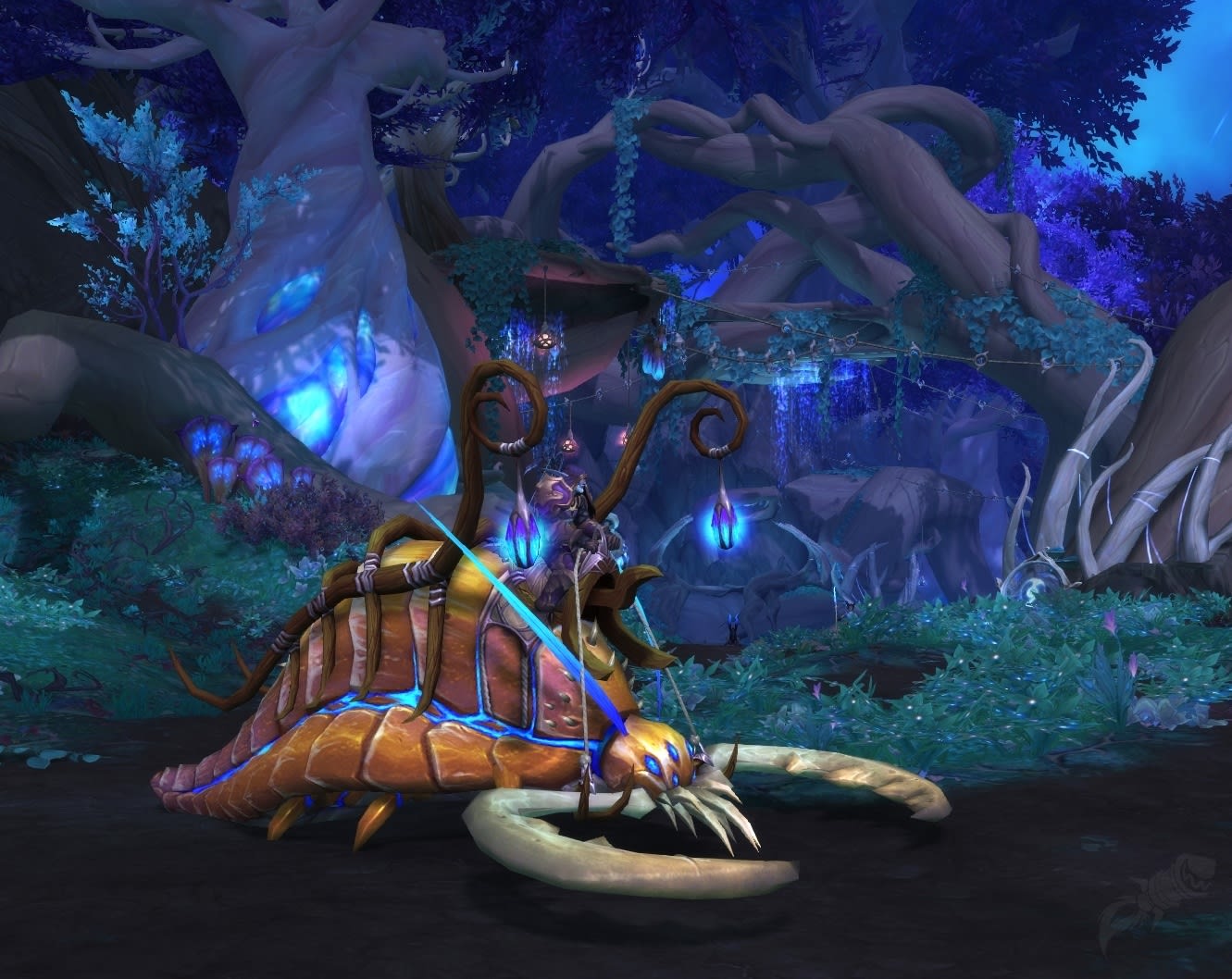 The dream of every bug lover. This larvae-looking mount is a joy to explore the Shadowlands with. One again, you need to get into the Mistveil Tangle, but this time you just need to kill a few mobs to get the reins. The Gladechewer drops from Gormtamer Tizo. To summon him you need to kill the elite mobs Bristlecone Terror until Chompy spawns (an elite). After you kill Chompy, Gormtamer Tizo will come to fight you. Defeat him and loot the mount. As ever with elite mobs: bring a couple of friends.