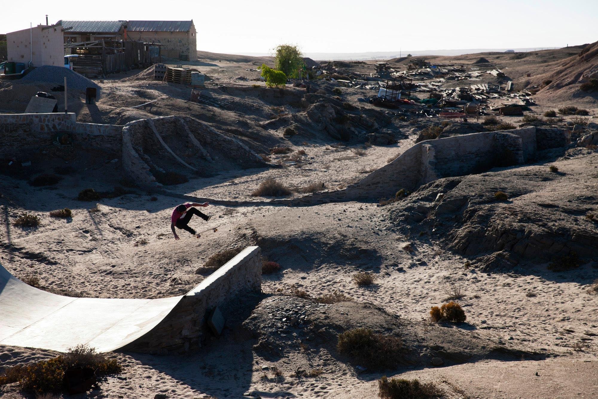 One of the main reasons we went to Namibia was to find the fabled mini ramp in the desert in Swakopmond. Armed with nothing but a name and the name of a coffee shop, we headed three hours into the desert, where miraculously we were able to track the ramp down and have an ace skate on some concrete transitions in the middle of nowhere!