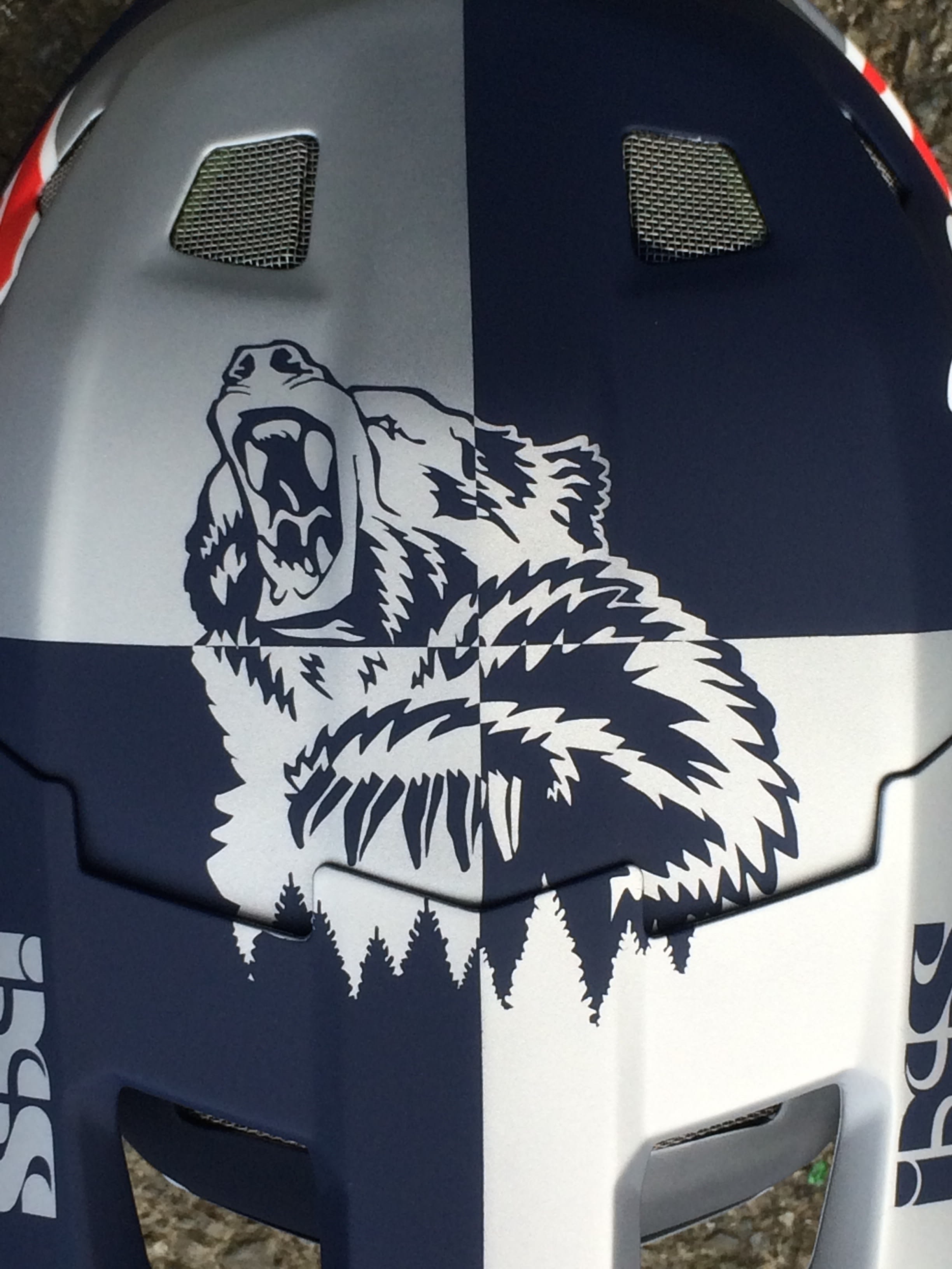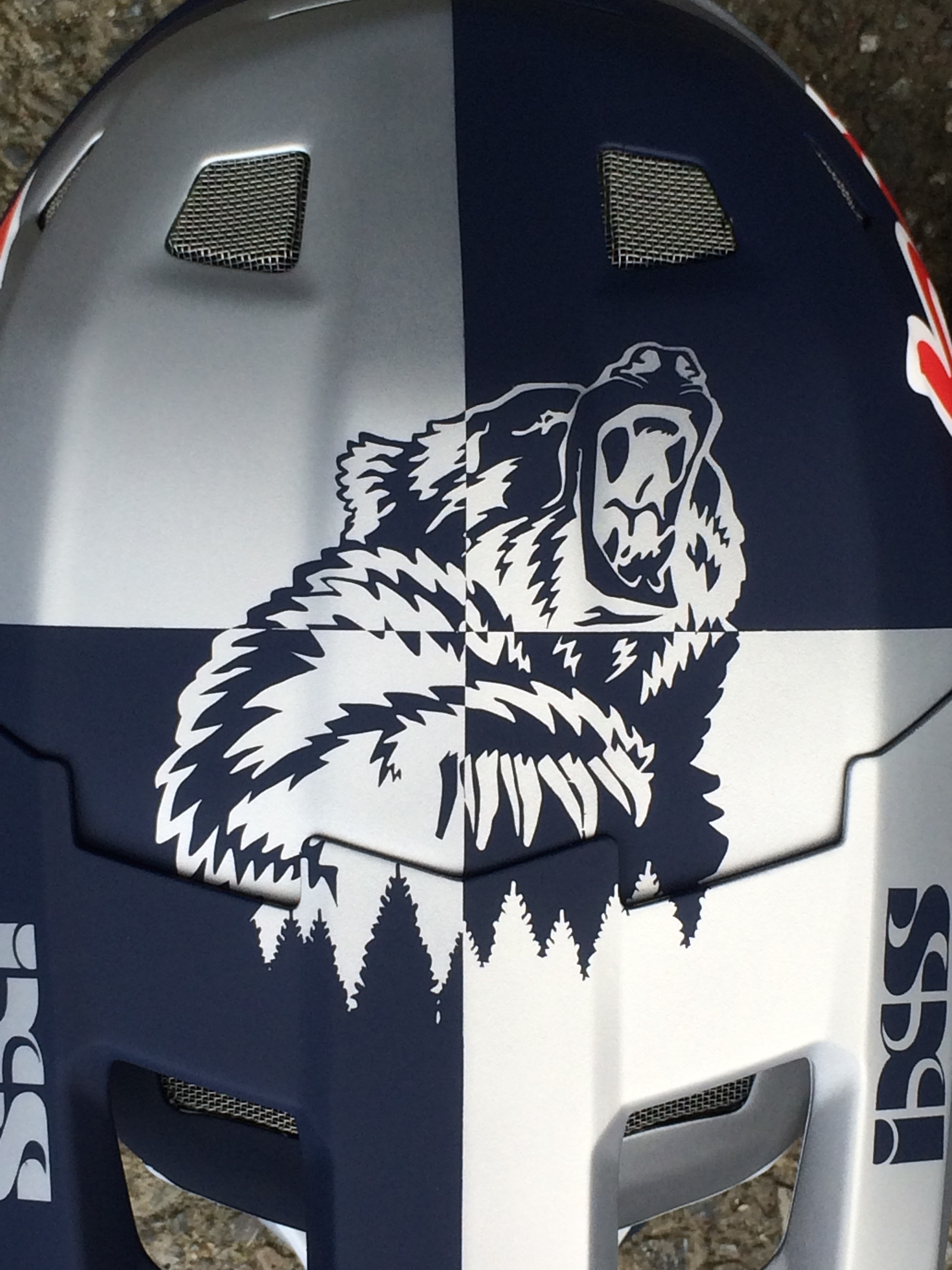 “They represent travelling, earth, all the different sports that he does," says Glaser. "There’s the bear that's on top that has been his signature graphic since well before I started painting his helmets. And then he usually has a tree element on either side. I've incorporated the claw slash mark in the last series of helmets for him too.”