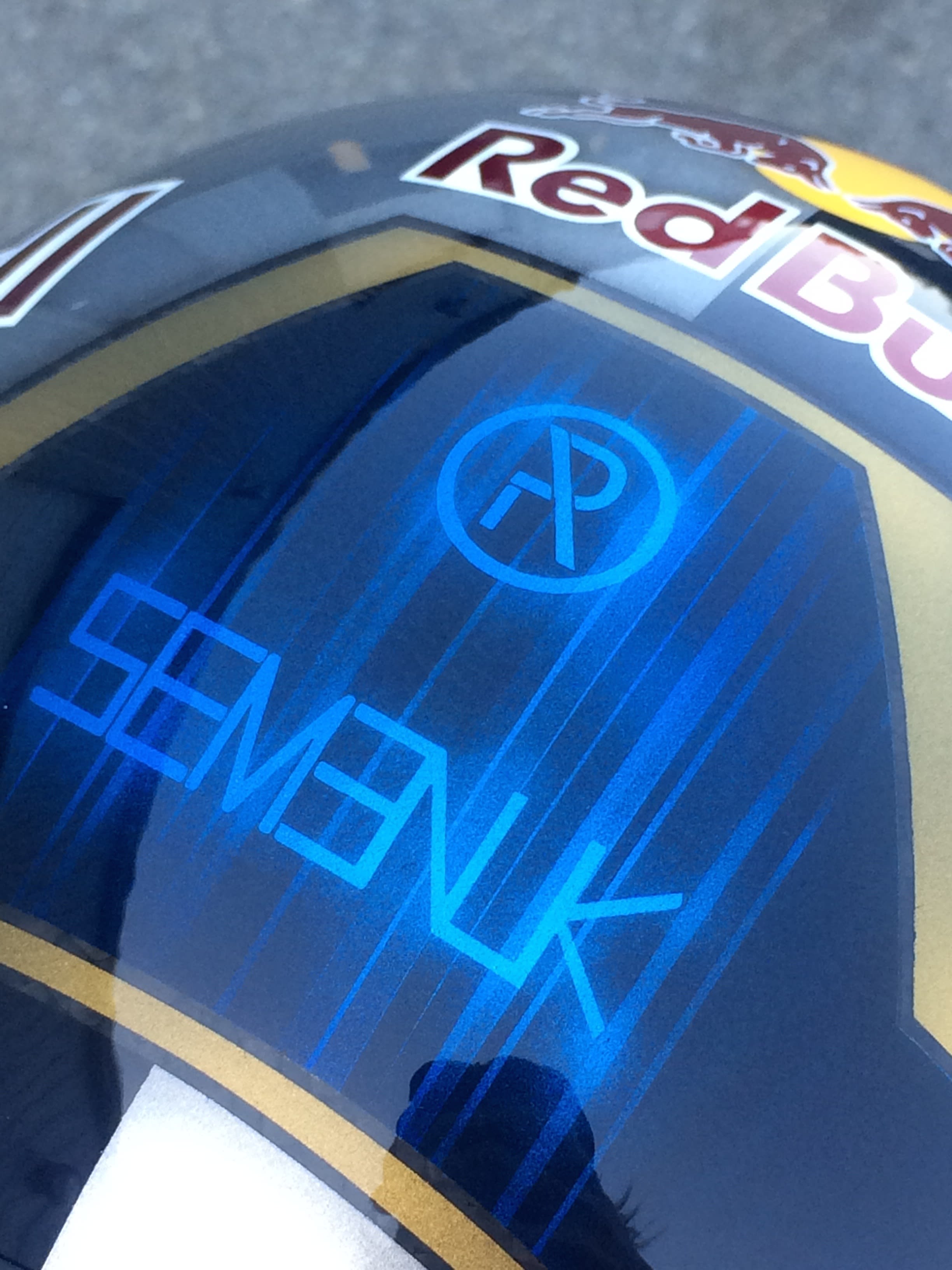 Seeing his helmets on the big screen or from a distance at a live event, it’s nearly impossible to know the level of detail he has worked into the classic Red Bull design. The challenge becomes getting enough meaningful design on the helmets before they get too complex.