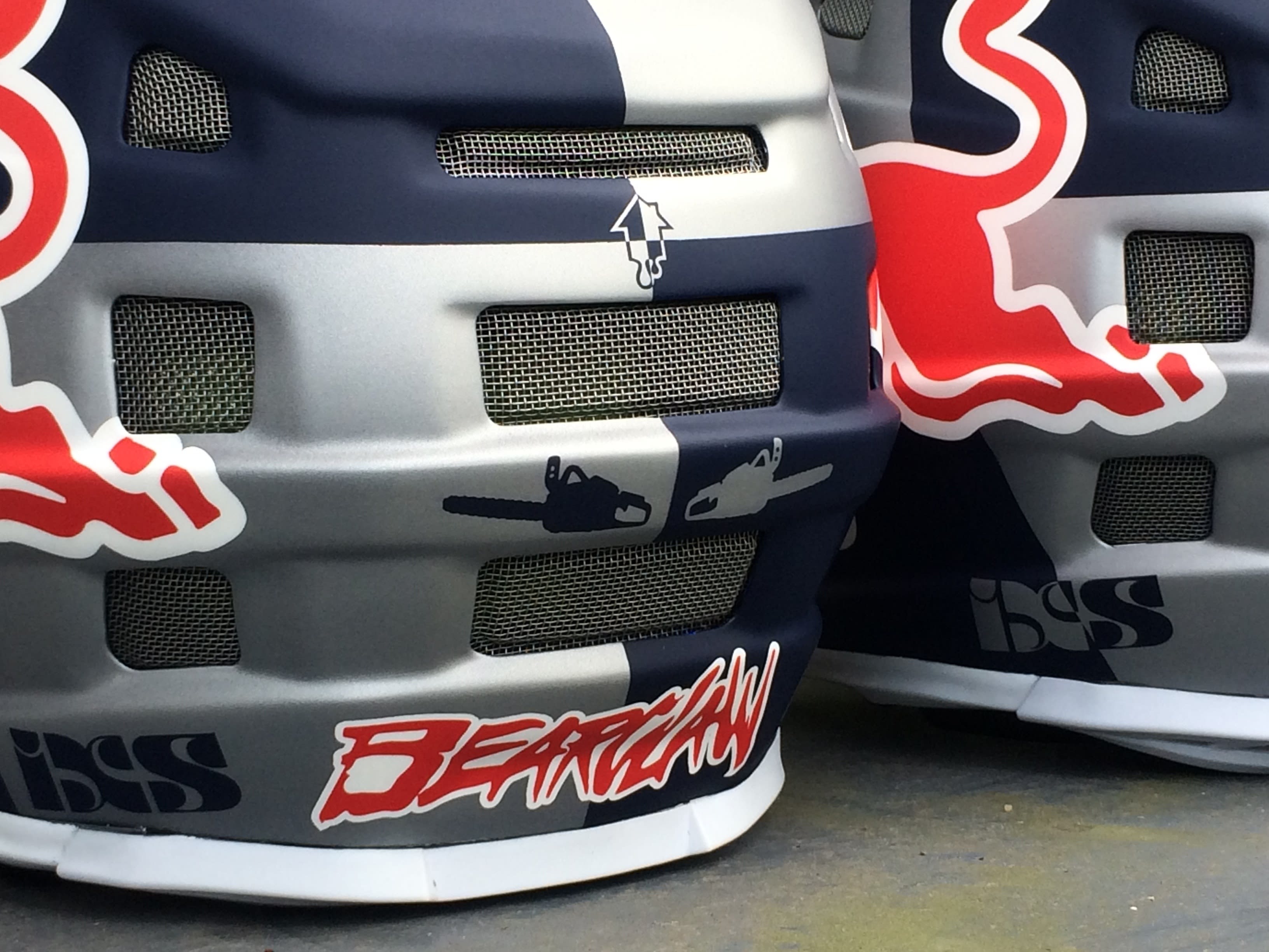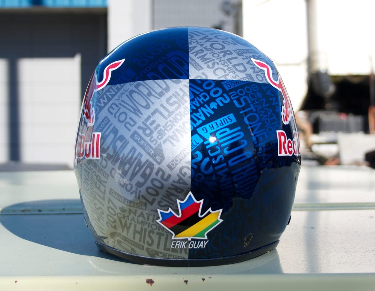 Five years later, he now paints helmets for nearly all the Canadian Red Bull athletes across sports (that require helmets) and a few other notables.