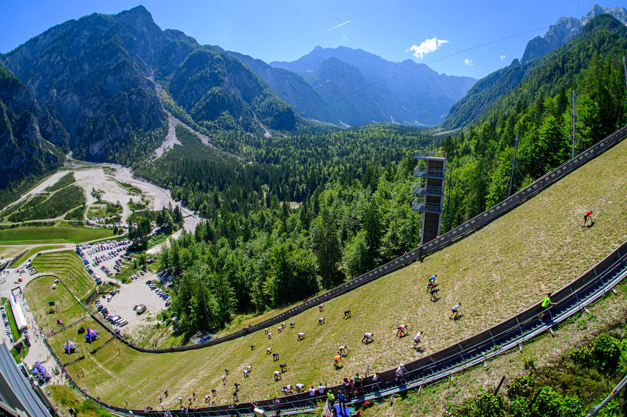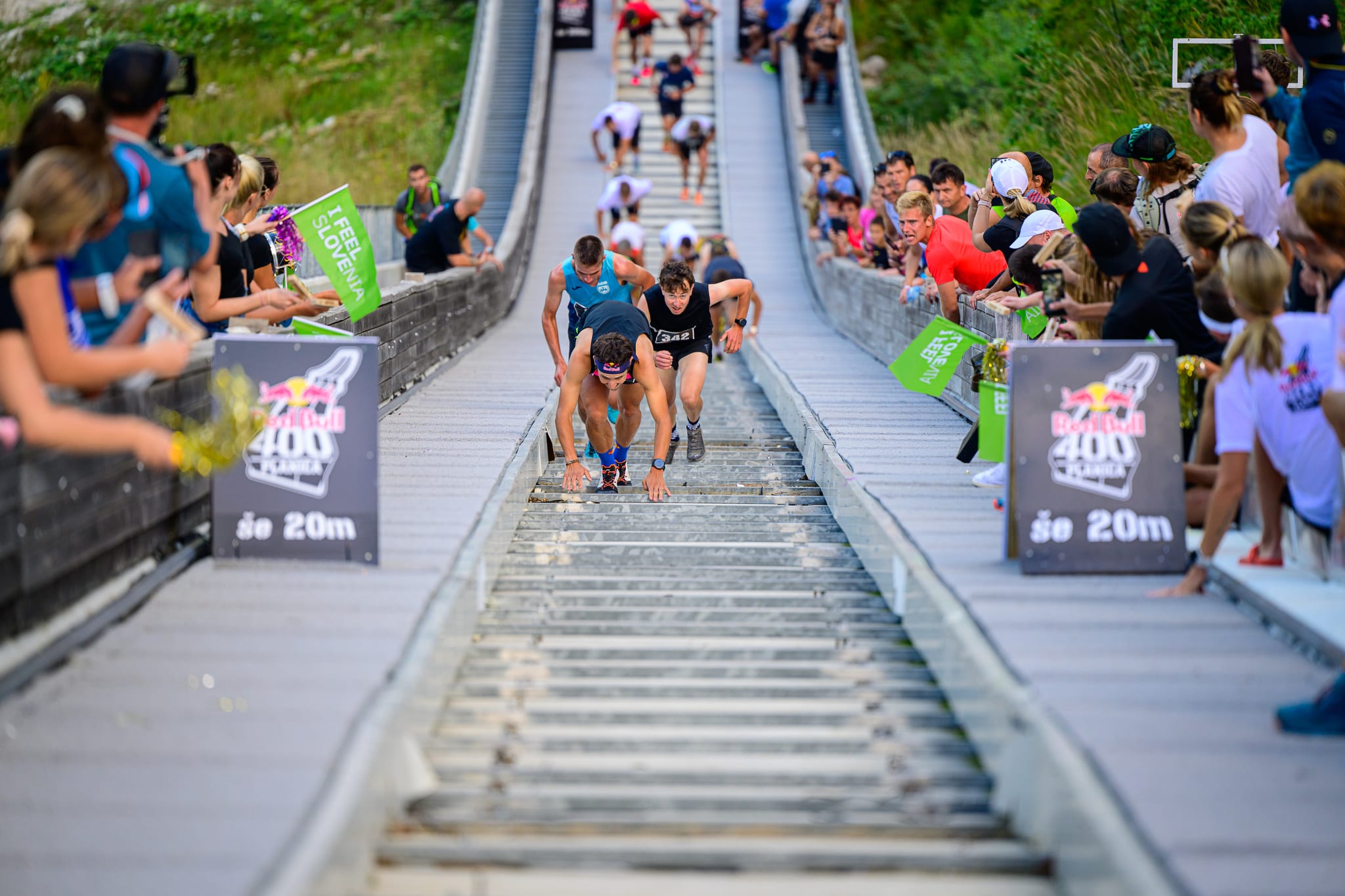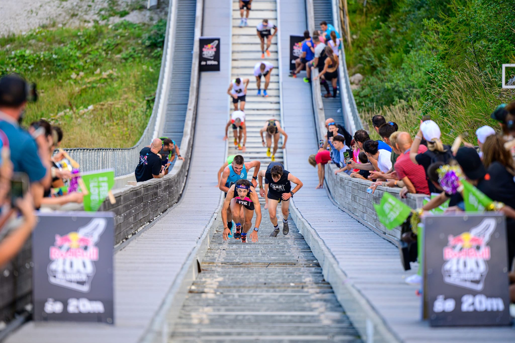 Za deseto izvedbo teka Red Bull 400 v Planici se je dolina pod Poncami oblekla v prelepo vreme. Obsijana s soncem je bila na trenutke za najtežji tek v breg kar malo pretopla. A po kvalifikacijah, ki so res potekale v najbolj vročem delu dneva, se je sonce nekoliko ohladilo in že ob finalnih tekih štafet se je lažje dihalo.