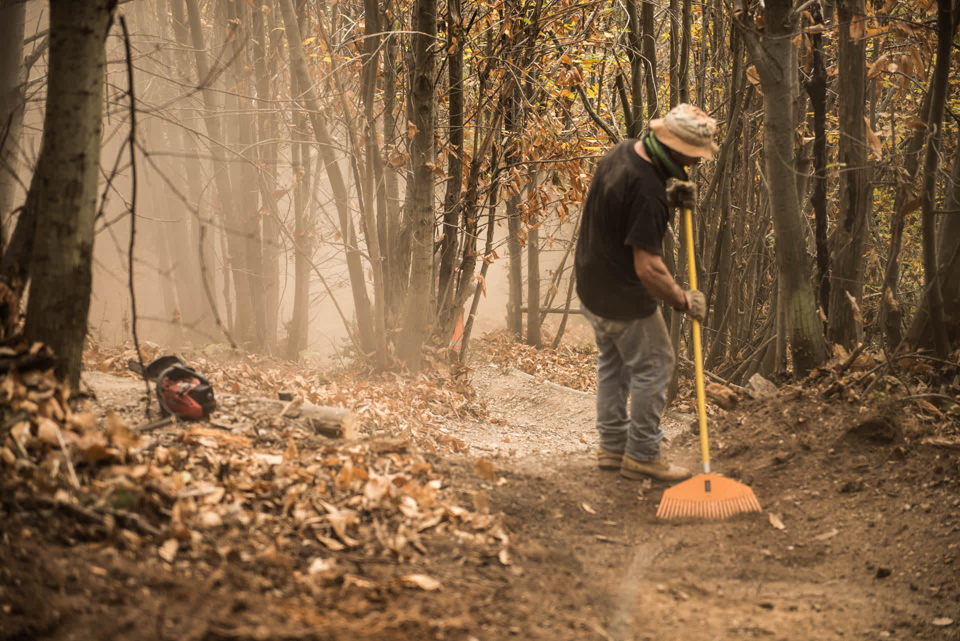 Izkaže se, da so v petek cel dan na hribu preživeli prav vsi, ki v Finale Ligure in okolici služijo s kolesarjenjem - vozniki kombijev, vodniki, graditelji in tudi številni prostovoljci… V enem samem dnevu so v celoti ali delno usposobili številne trejle, med njimi tudi najbolj popularne. Pa to niso bila zasilna popravila. Ko sva nato v soboto za začetek dirjala po popularnem Rollercoasterju, je bil trejl kot iz škatlice. Nekatere skakalnice so bile popolnoma na novo zgrajene, nekateri deli dodatno utrjeni, zasuti, vejevje odmaknjeno in vsa podrta drevesa požagana in odmaknjena. Dan prej so mi ravno za ta 6 in pol kilometra dolg spust povedali, da je grozno poškodovan, saj delno poteka po žlebu, ki je bil v času neurja prava reka. Naslednji dan je bil trejl v boljšem stanju kot 14 dni prej...