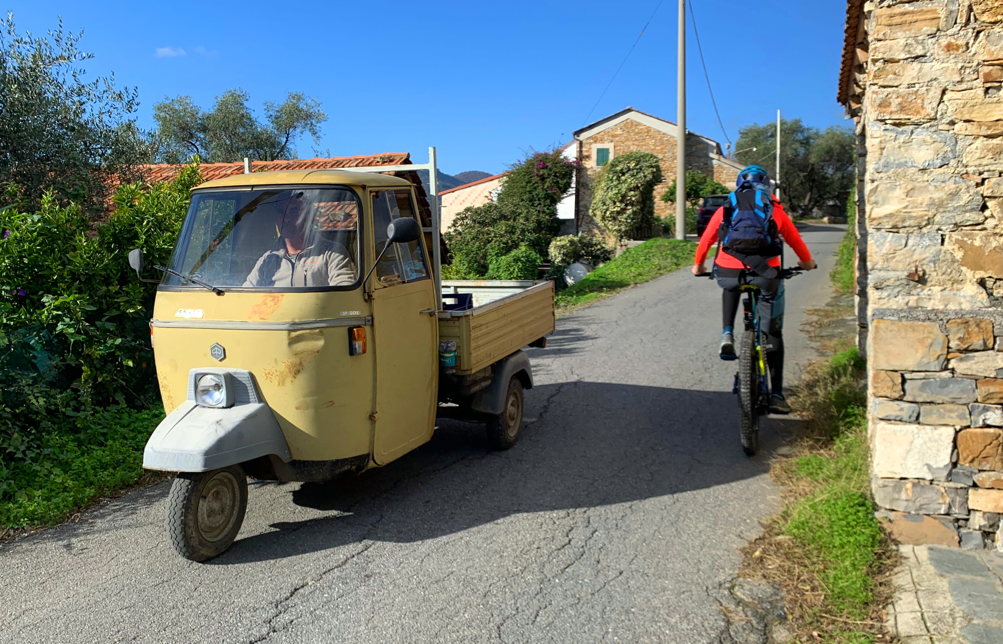 Lani jeseni so imeli v Liguriji veliko smolo z vremenom. Kar dvakrat se je na njih zlila voda, ki bi jo bilo dovolj za celo Evropo. Že prvič je bilo škode na trejlih veliko, drugič je padalo tako zelo, da je zemeljski plaz odnesel še avtocestni viadukt nad bližnjo Savono. Čez nekaj dni sva bila z Dašo tam v upanju, da bodo trejli vsaj približno vozni. A čakanje odgovora na vprašanje o rezervaciji "single uplifta" za naslednji dan, se je vleklo celo popoldne. Na koncu sem dobil odgovor: “Jutri žal noben kombi ne vozi, ne naš, ne drugi. Vsi smo ustavljeni, trejli so popolnoma uničeni in potrebujejo konkretne popravke. Fizično jih sicer ne moremo zapreti, hribi niso naša last, ampak uradno do nadaljnjega noben ni odprt, nekateri so zelo nevarni. Na trejlih bodo jutri tudi že graditelji, zato res prosimo, da se ne vozi po njih.”