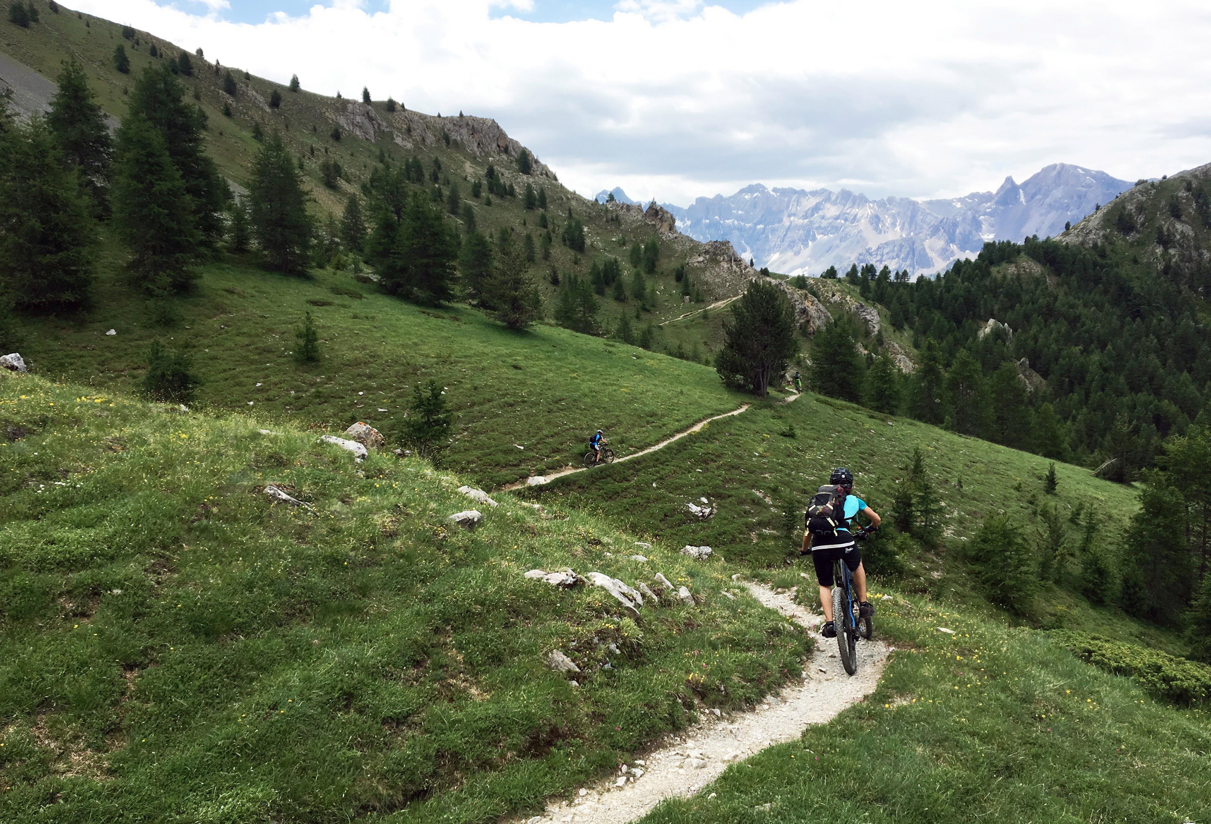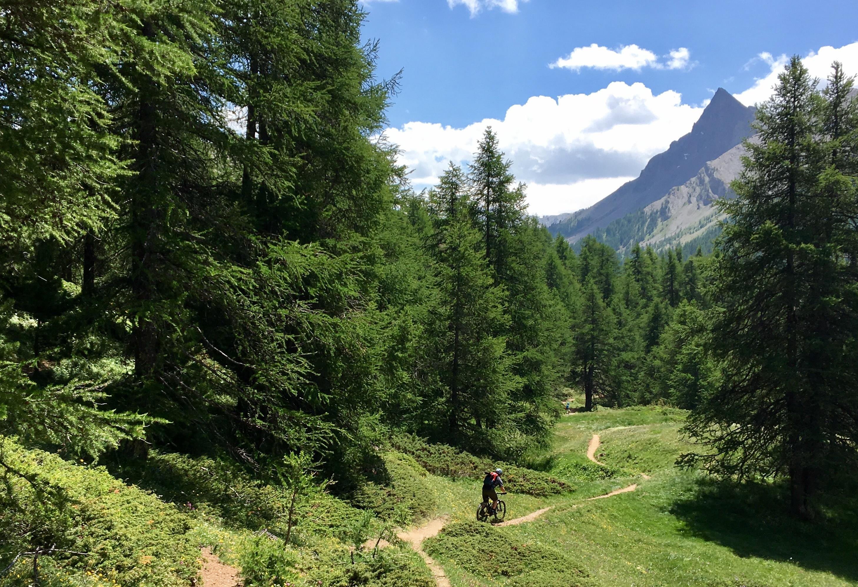 Kolesarsko gledano je reč podobna. MTB park imajo, ima tri traile in eno napravo, ki pa se zažene sredi julija in ustavi sredi avgusta. Le zaradi tega do tja seveda nihče ne bi prišel, razen morda lokalnih jezdecev, ki pa imajo veliko boljše opcije te vrste v ne tako zelo oddaljenem Varsu, pa okoli Briancona. Glavni magnet za gorske kolesarje so neskončni kilometri naravnih enoslednic, ki se raztezajo po okoliških gorah. Vse tja do višine 3000 metrov. Še toliko boljše je to, da so tereni travnati skoraj do vrhov, zato ne manjka lepih in dolgih tekočih linij, z vmesnimi tehničnimi odseki. Nižje doli trave preidejo v redke macesnove gozdove, ki spet ponudijo idealne terene.