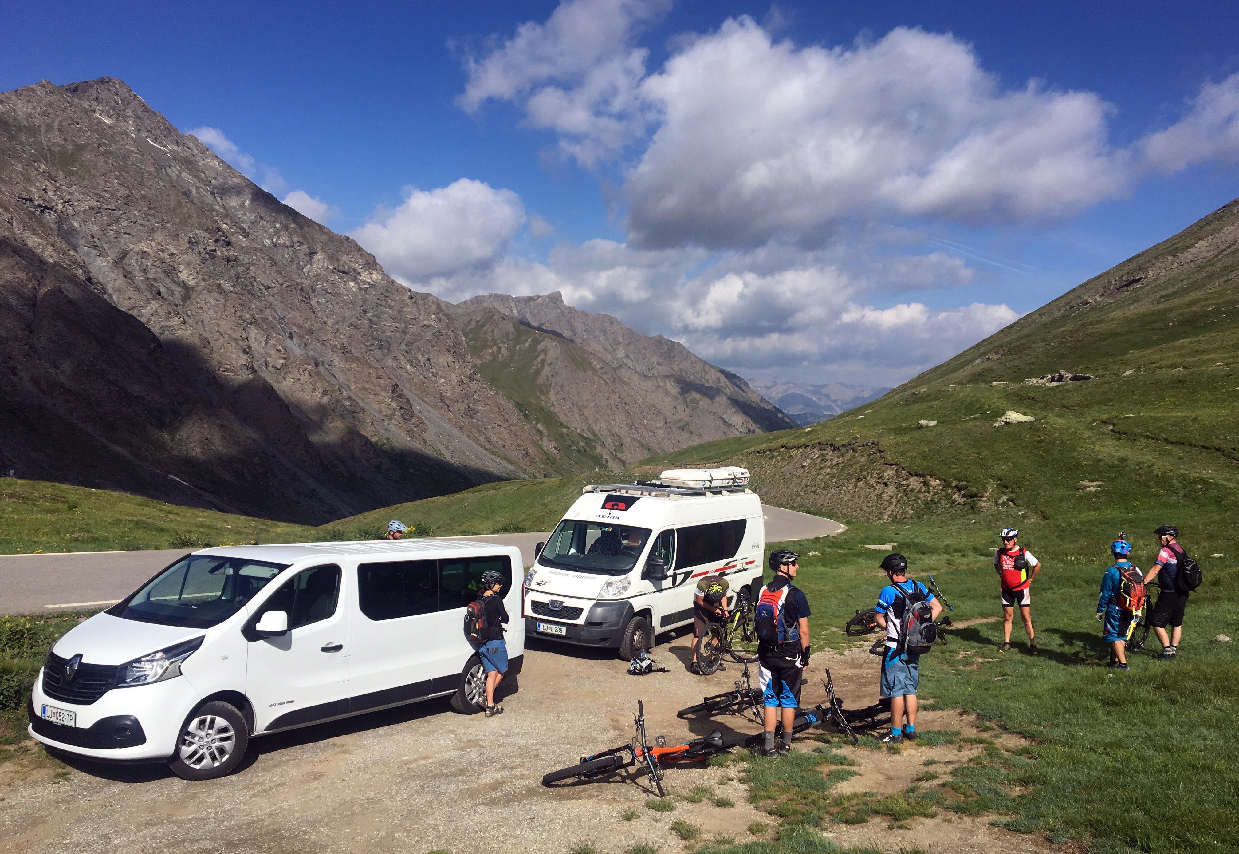 Našo bazo je prestavljal mali gorski kamp v vasici Pierre Grosse, na višini 1900 metrov, ki je tudi idealno izhodišče za nekaj lepih gorsko-kolesarskih tur. Od travnatih Gardiol, preko tiste na sedlo Longet, do strmega vzpona na prelaz Fromage, s katerega smo se lahko spustili direktno v kanjon na zahodu Queyrasov. Bolj oddaljene ture so zahtevale več kolobocij z avtomobili, a dobro poznavanje področja od prej, je pomagalo k lažji logistiki.