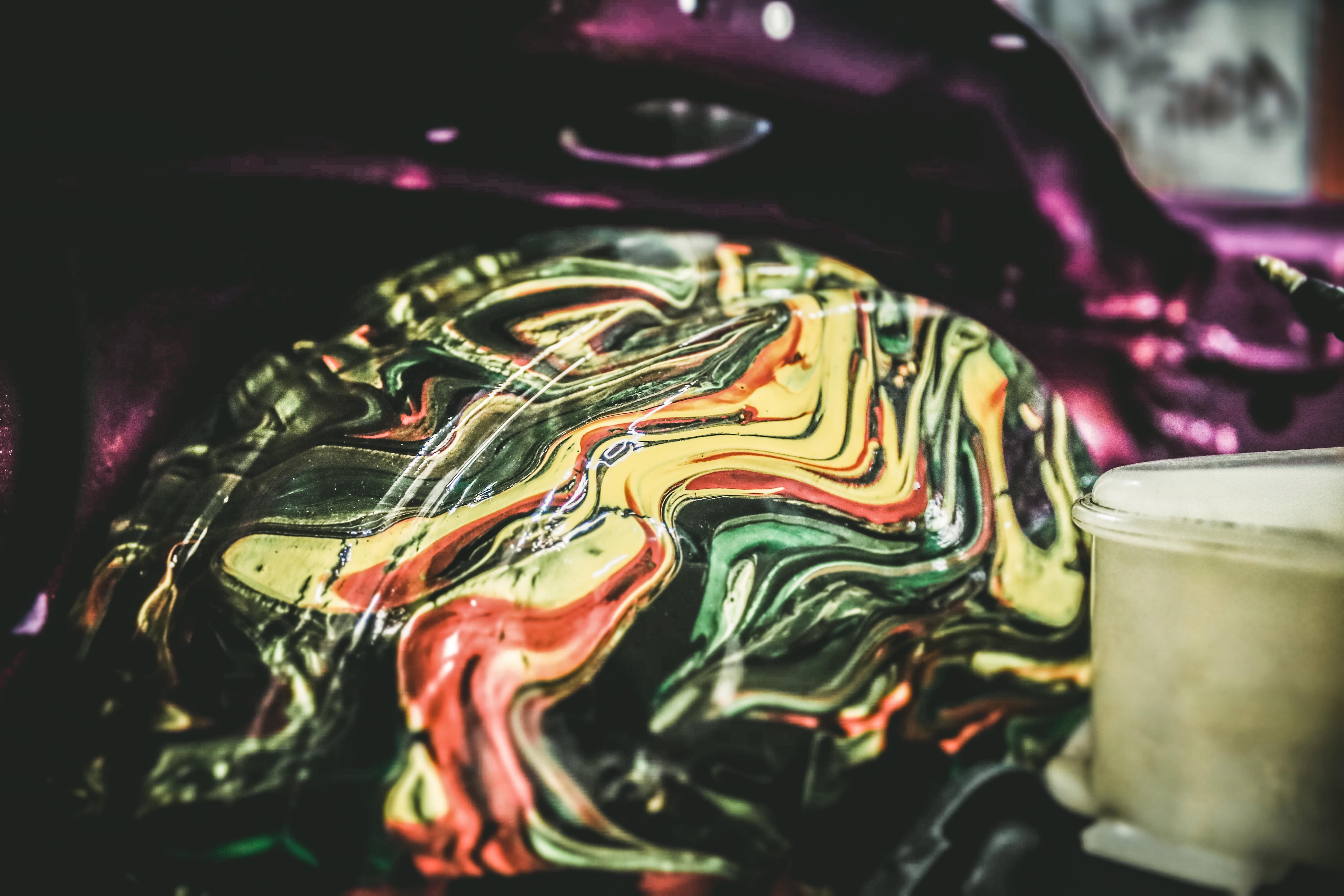 Všetky nápady boli pre mňa osobnou výzvou, ale myšlienka robiť techniku liateho akrylu na posilovač bŕzd bolo to pravé. Doteraz som maľovala len na plátno, takže som sa na tom celkom vyblbla a myslím si, že spokojnosť je na oboch stranách.