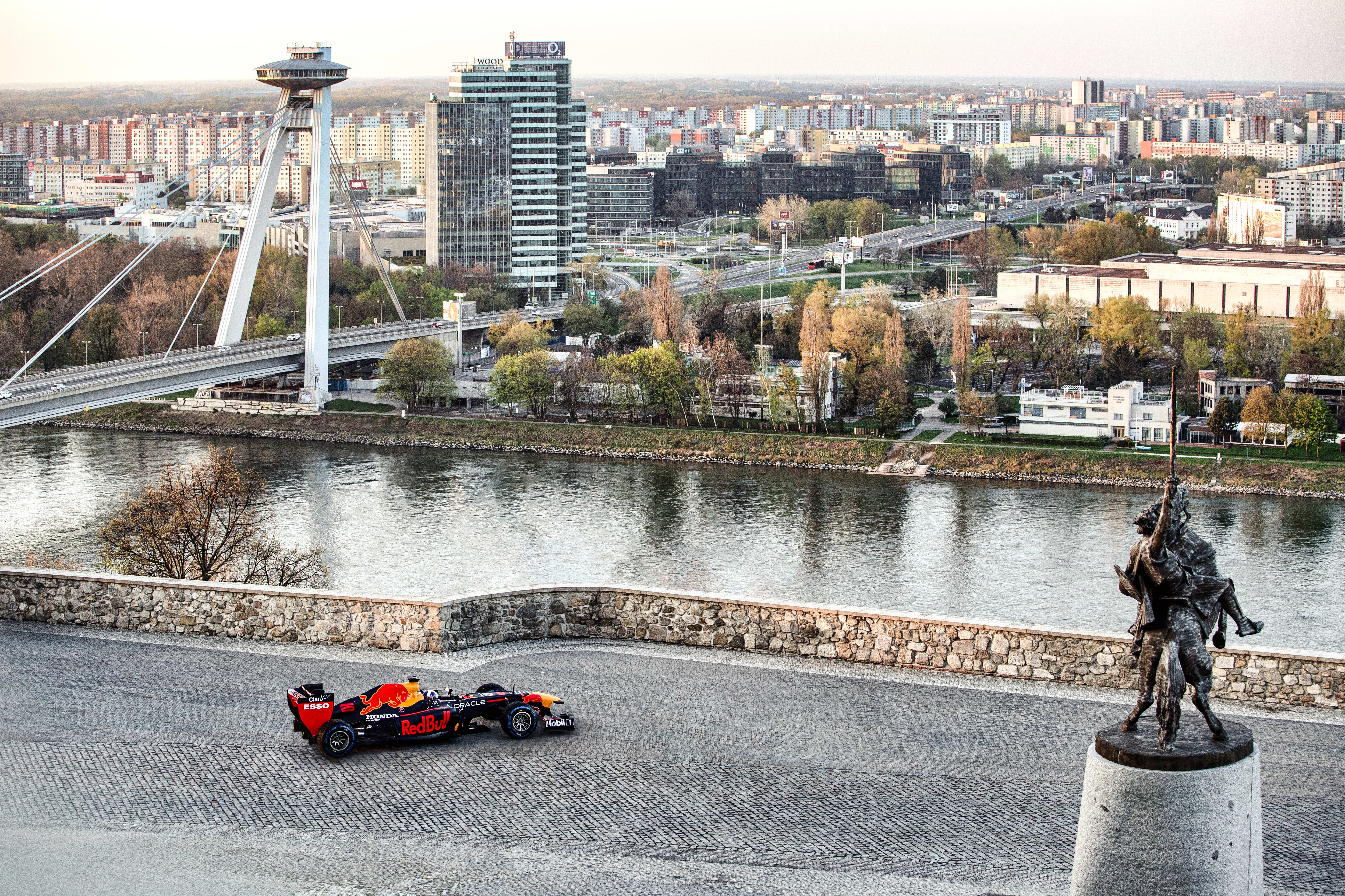 Dnes už Medzinárodné letisko Poprad – Tatry bolo v podstate kľúčovým miestom celého road tripu formuly naprieč Českom a Slovenskom. Ak si teda odmyslíme pražský Karlov most, kde sa povolenie na prejazd 750-koňového osem valca vybavuje trochu zložitejšie, bez dostatočne dlhej dráhy, ktorá umožnila akrobatickému pilotovi, Martinovi Šonkovi, preletieť sa dole hlavou iba pár metrov nad monopostom pri rýchlosti 200 km/h so scenériou Vysokých Tatier v pozadí, by video skrátka nemalo také grády, ako má.