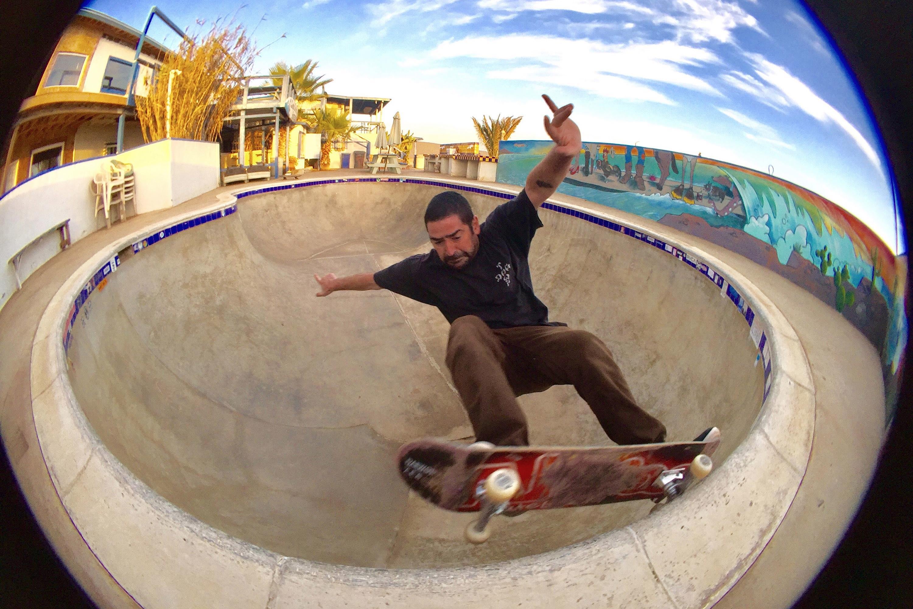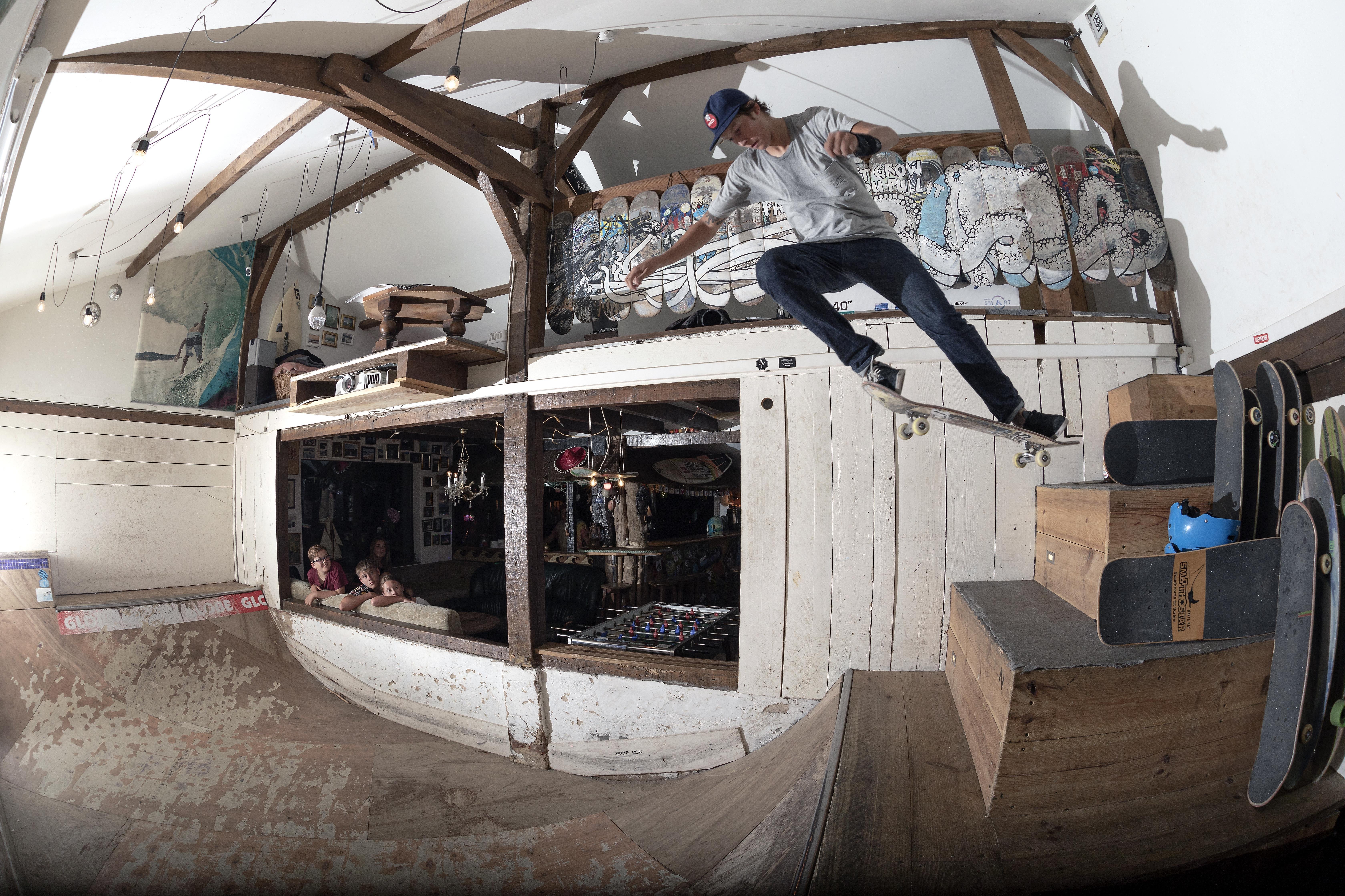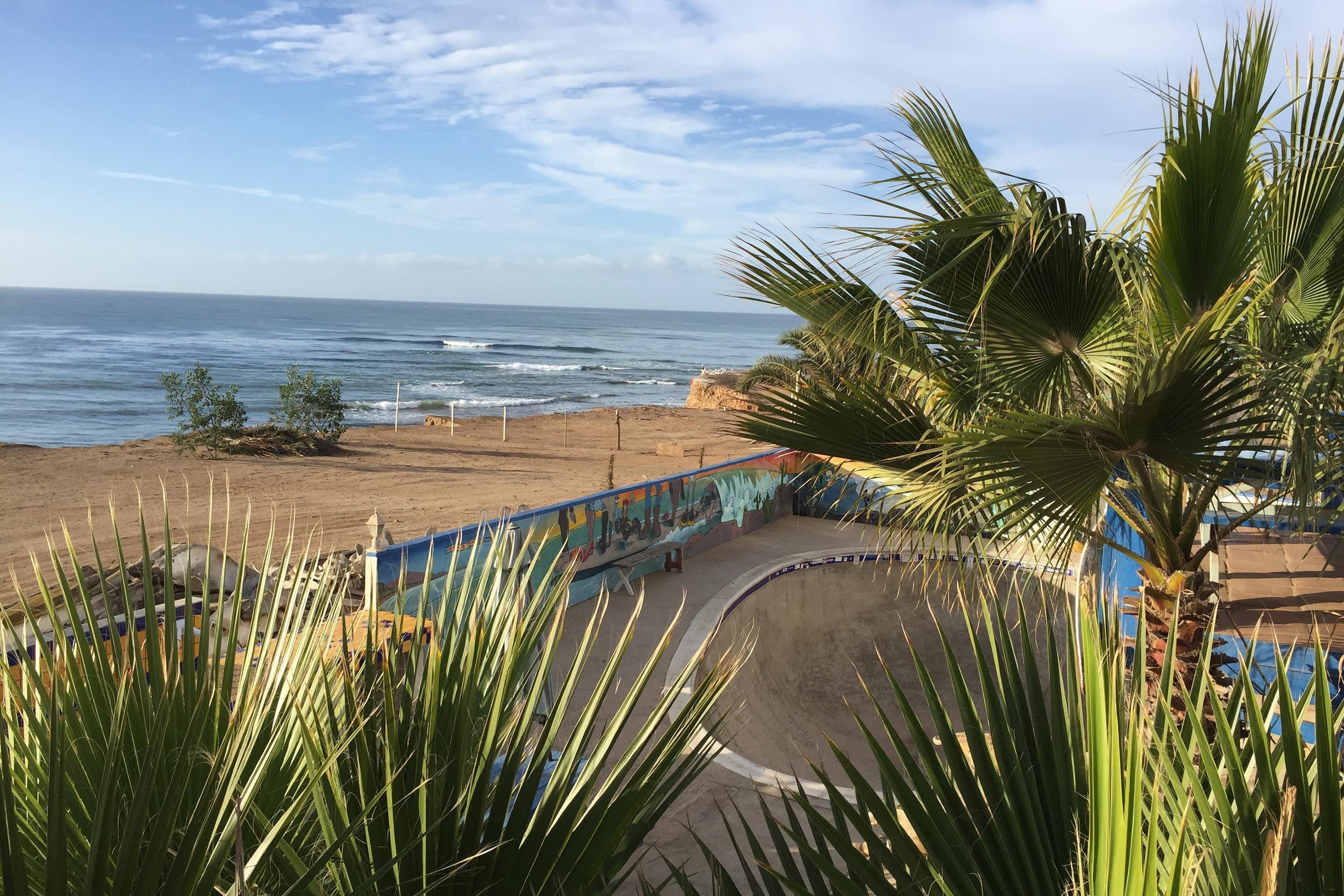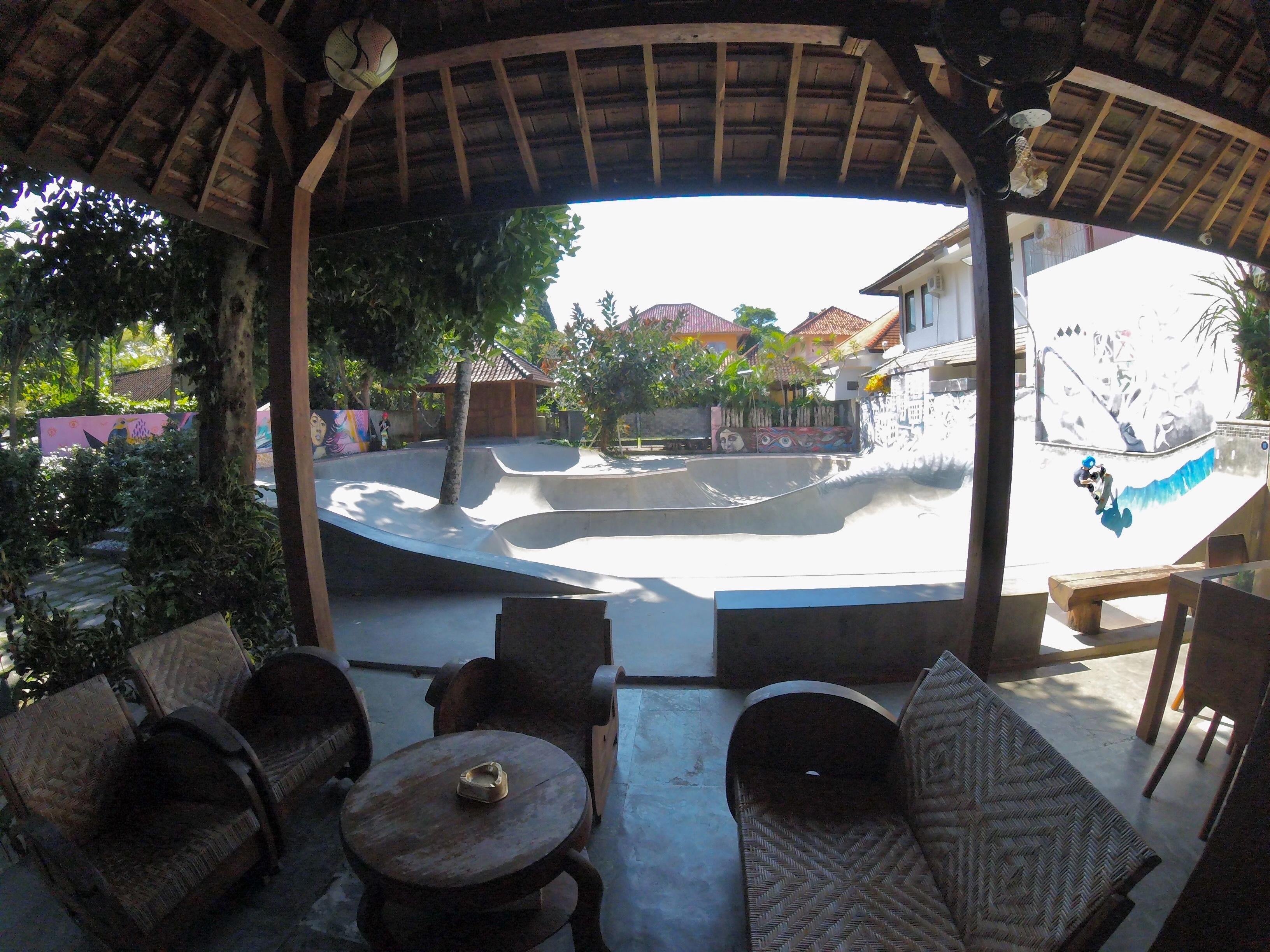 Spend the day chilling at the massive, empty nearby beach and then come back to the base camp, dive in the pool to get rid of all that salt, sip a cold one, warm up on the mini ramp and then shred the pool.