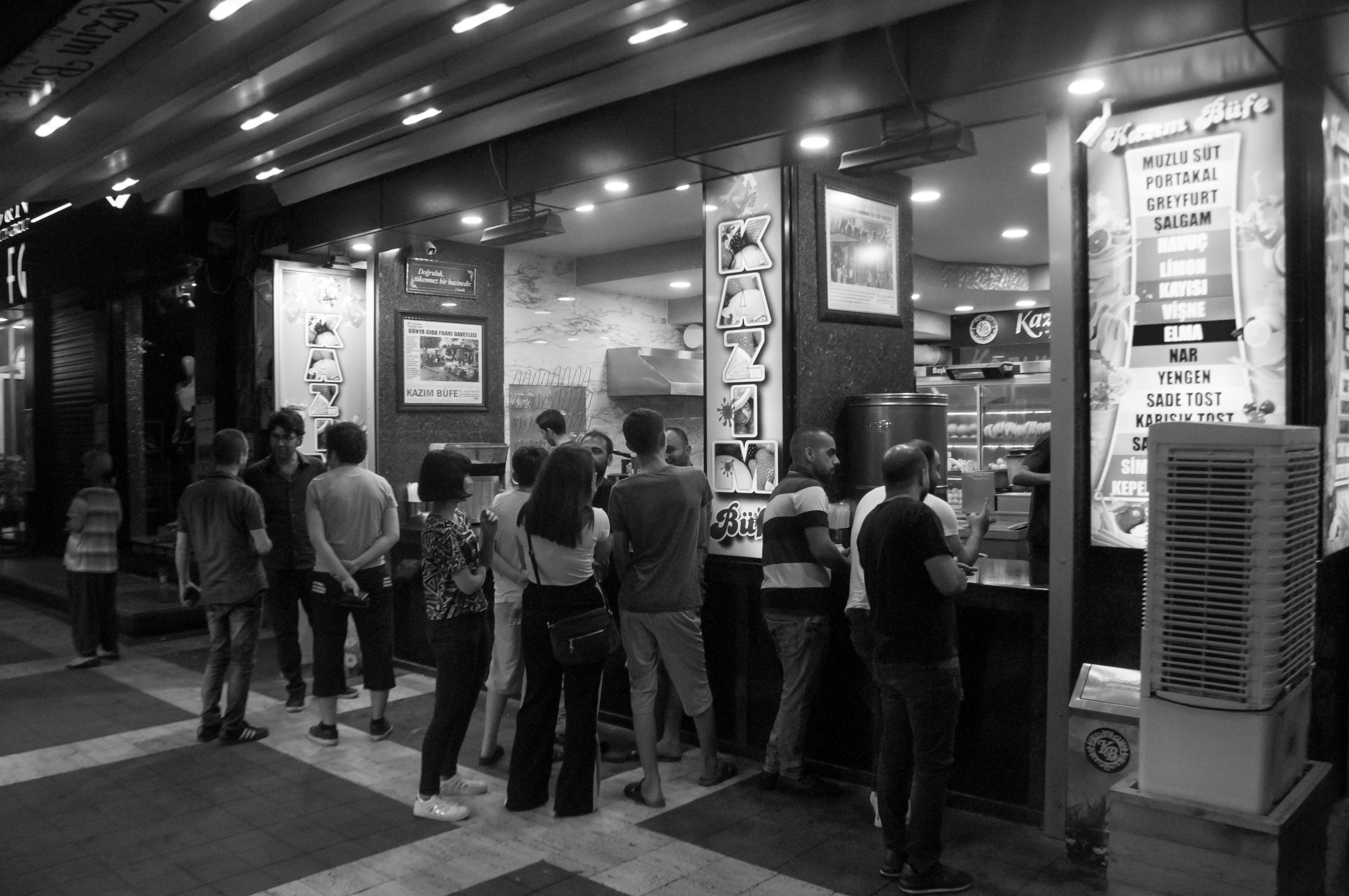 Gece Adana’da insanlar, sadece müzik ve eğlence için değil, yemek yemek için de sokaktalar. Adana’nın gece de gündüz de en kalabalık olan yerlerinden biri Kazım Büfe. Kebabın en hasını bulabildiğiniz koca şehirde Kazım Büfe’nin alametifarikası nedir derseniz, yanıtı çok ilginç: Kaşarlı tost ve muzlu süt!