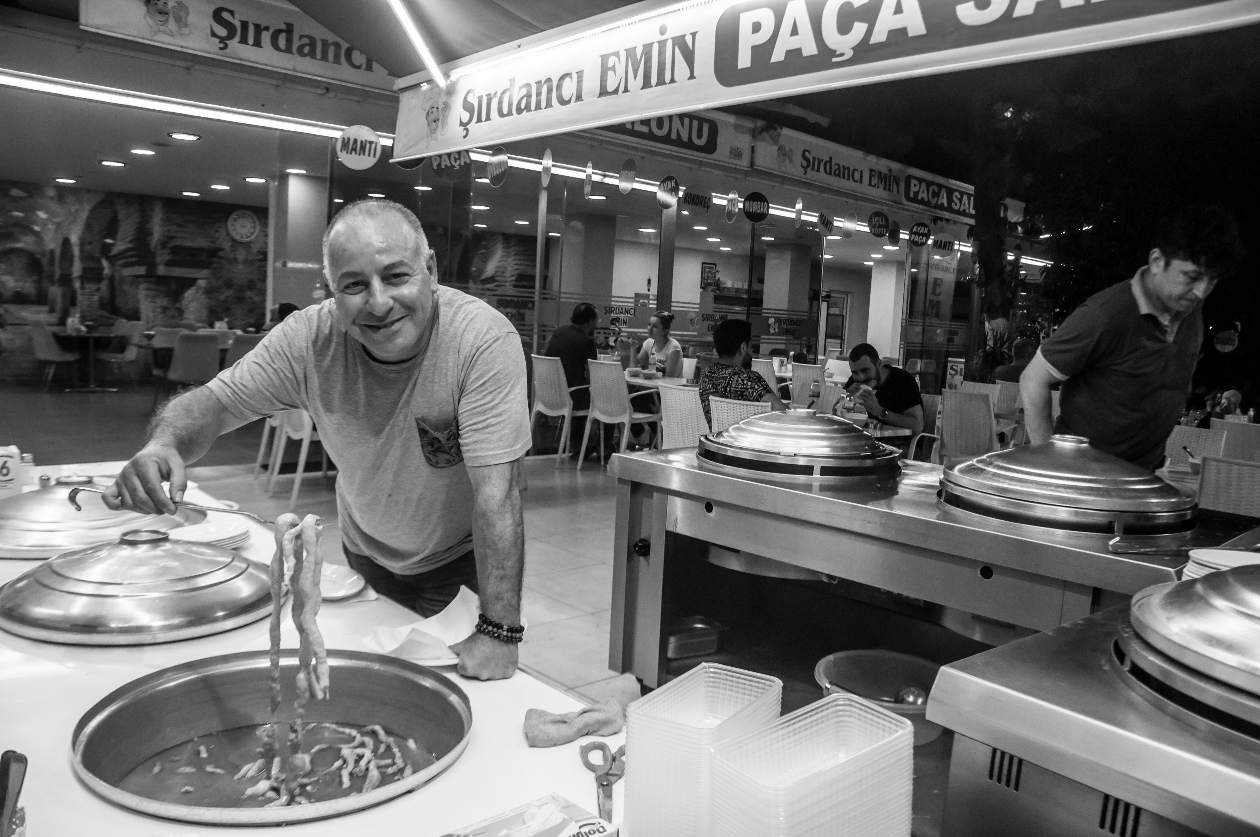 Selim’e göre Adanalıyı gece dışarı çıkaran güce ise “şırdan etkisi” deniyor. Sabah saatleri yaklaşınca bir Adana klasiği olarak kuzu midesine pirinç doldurularak yapılan şırdan yemeye/şırdan görmeye gidiyoruz. Şırdandan çok Şırdancı Emin abi dikkatimi çekiyor. Emin abinin daha önce elektrikçi dükkanı varmış. Geceleri ek gelir olsun diye bu dükkanını şırdancıya çeviriyormuş. Bir süre gündüz elektrikçi, gece şırdancı olarak hayatına devam etmiş. Şırdancılıktan gelen ekonomi yeterli olunca dükkanı büyütmüş, elektrikçiyi kapamış. Son dönemde YouTuber’ların da ziyaret etmesiyle çok daha fazla tanınmaya başladığını anlatan Emin Kertiş, “Her gün şırdan yiyor musun?” diye sorunca “Vallahi her gün yiyorum” diyerek cevap veriyor. “Bugün yemeyeceğim diyorum, tutuyorum kendimi. Sonra tencerenin kapağını açınca ‘hop’ atıyorum ağzıma mutlaka bir tane!” diyor. Yanında oturan Adana kebap restoranı olan arkadaşı ise lafa giriyor: “Vallahi benim artık midem kaldırmıyor. Ocak başında durmaktan canım kebap yemek istemiyor. Bugün gittim, KFC’de tavuk yedim, yemin ederim.”